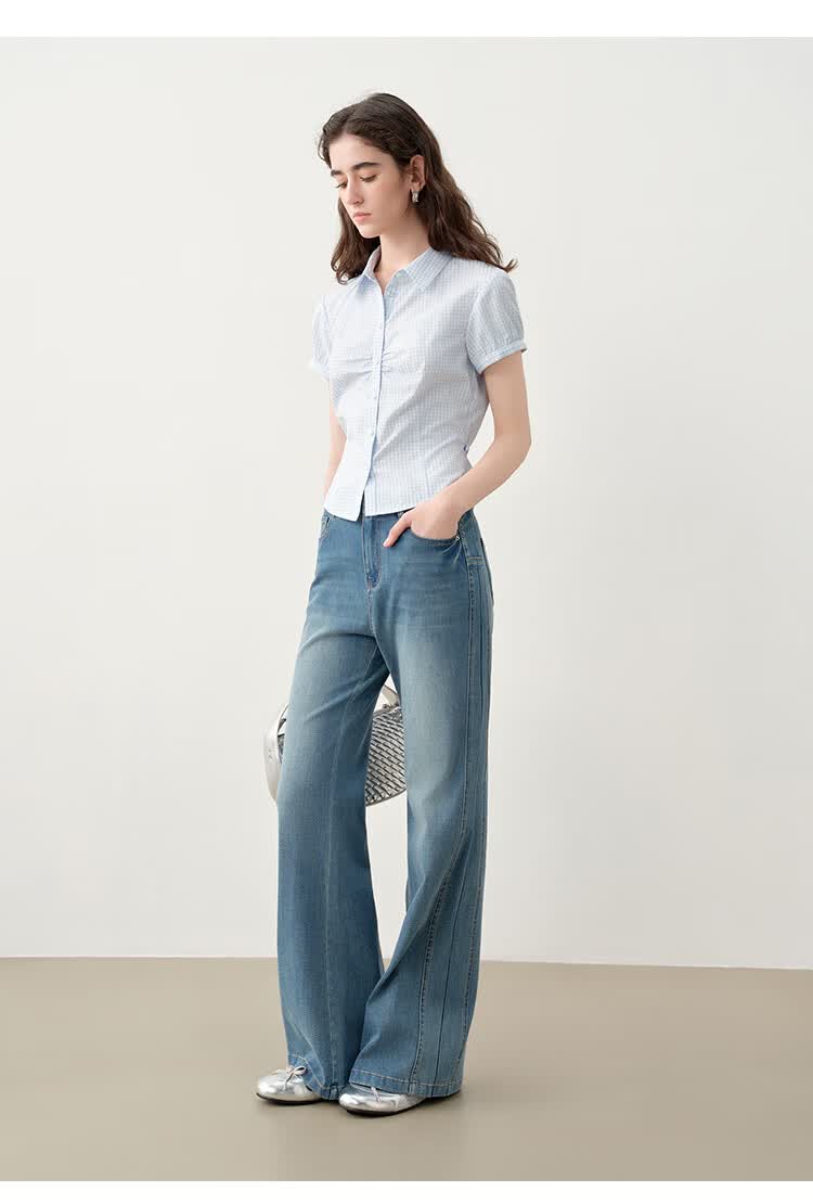 森马(Semir)牛仔裤女夏半松紧腰纯棉宽松阔腿裤腰带显瘦高街长裤103325124014
