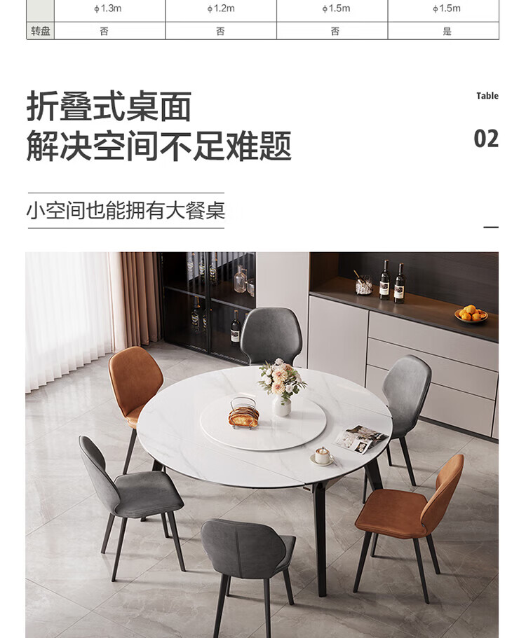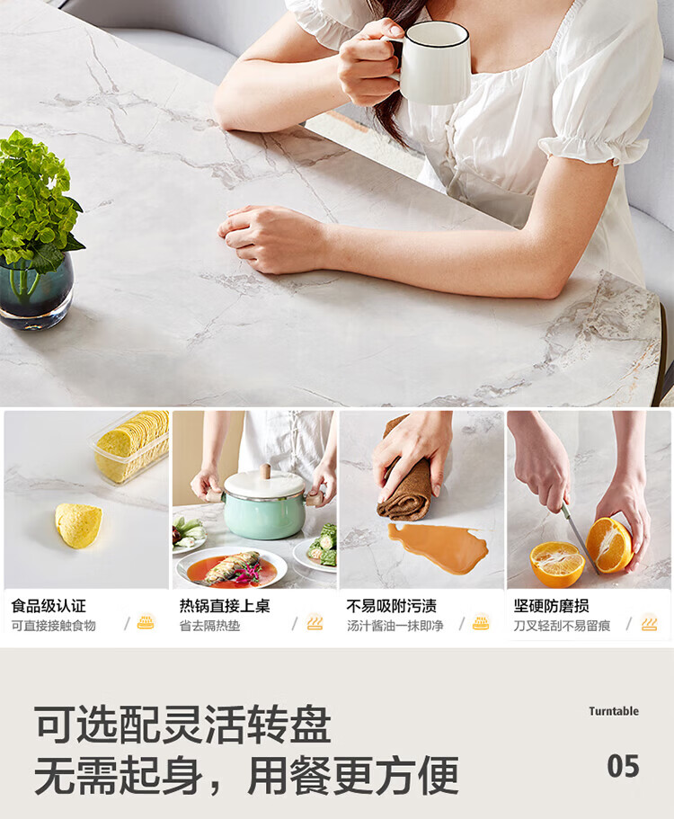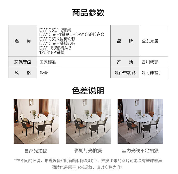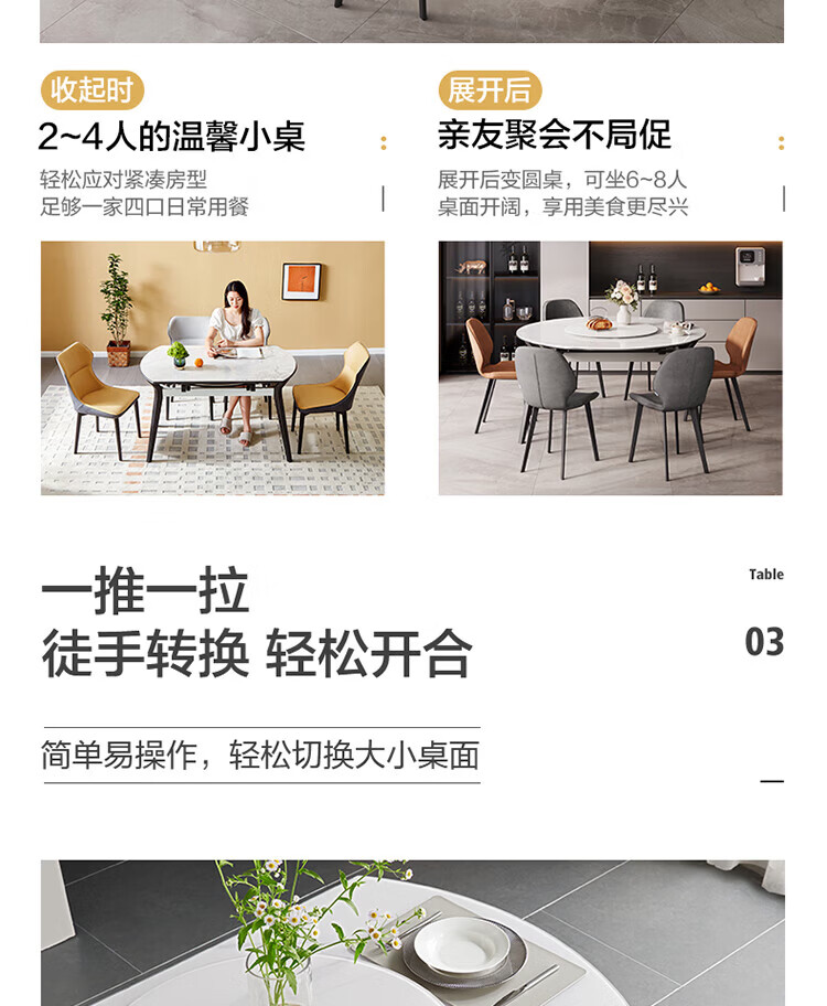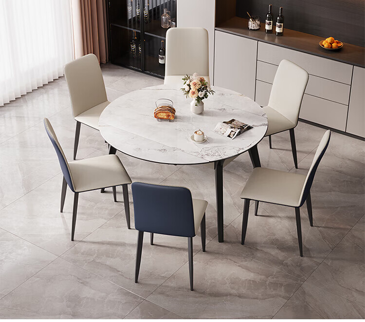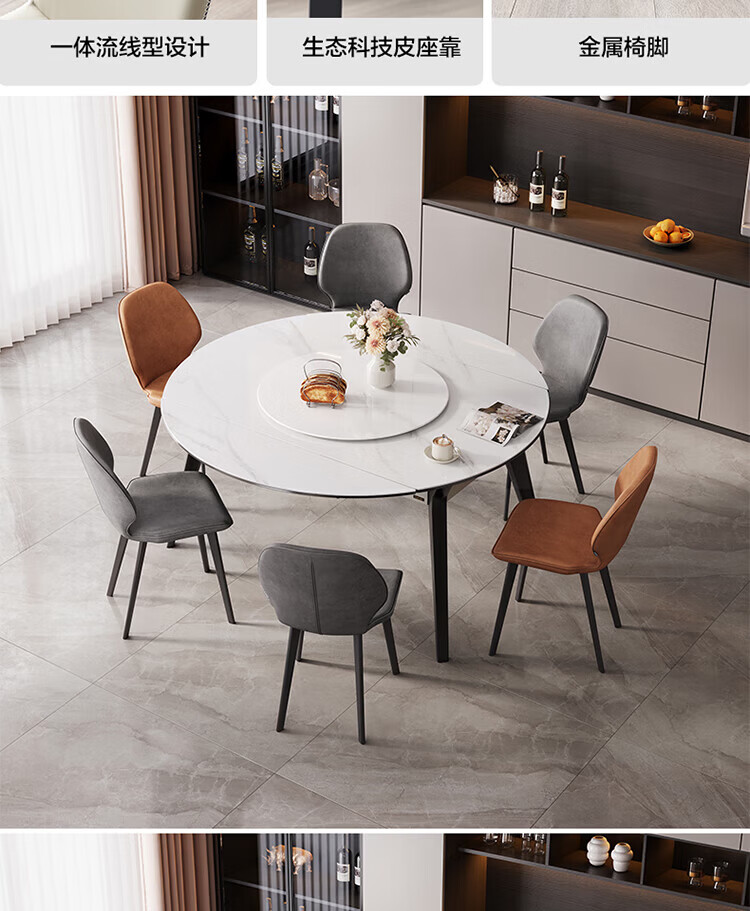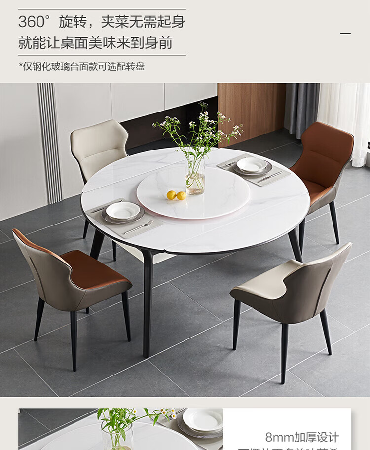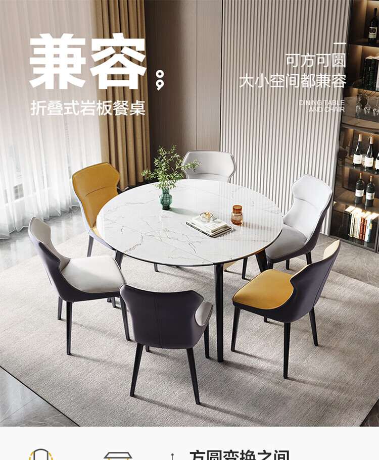 全友家居可伸缩钢化玻璃转盘吃饭桌客厅家用岩板高脚餐桌椅子组合套装 岩板|1.2m餐桌
