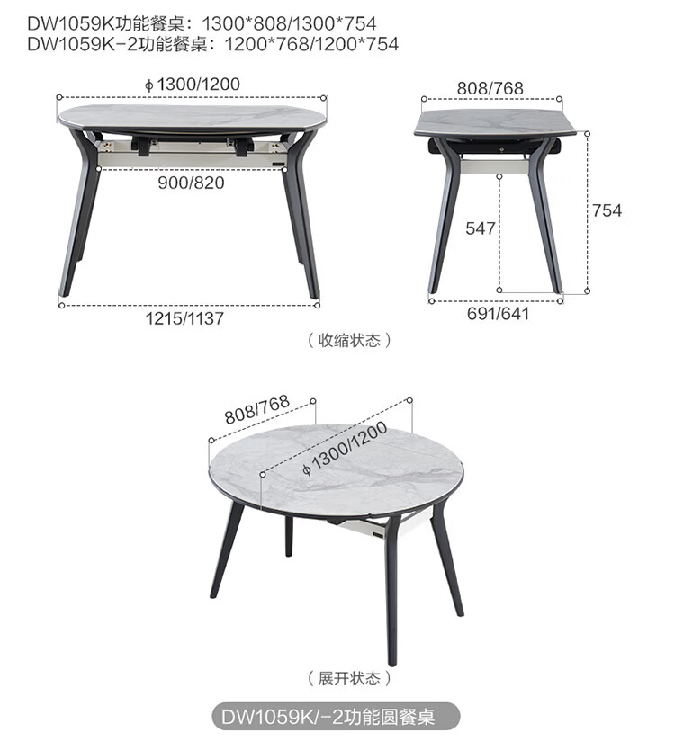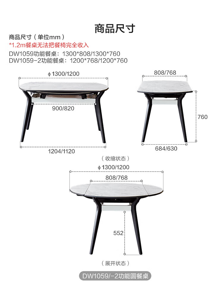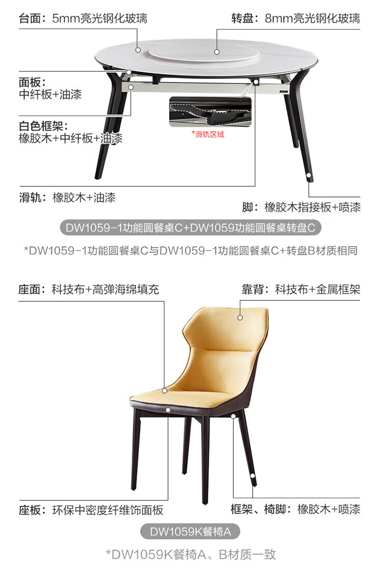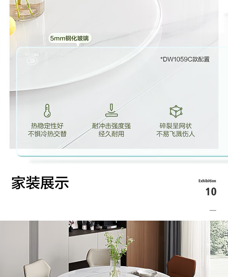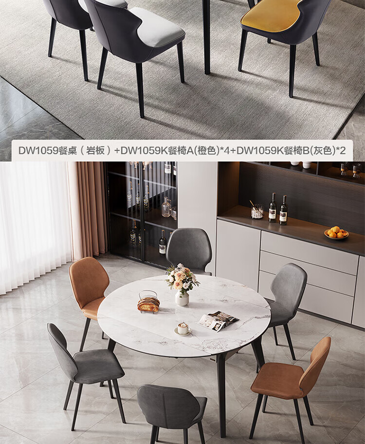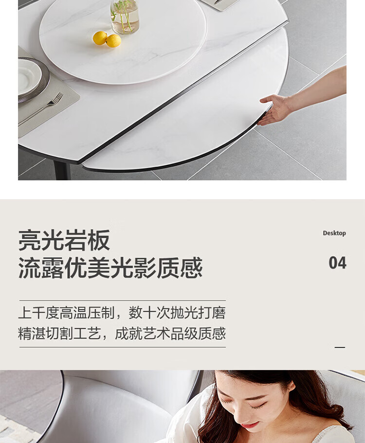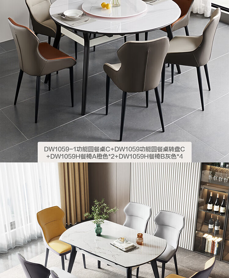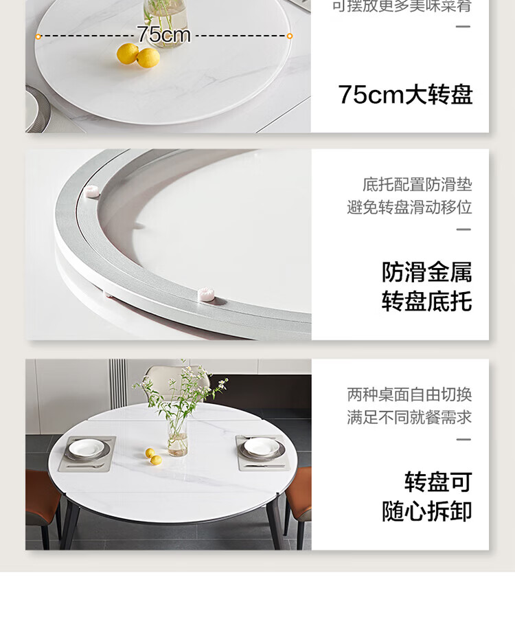 全友家居可伸缩钢化玻璃转盘吃饭桌客厅家用岩板高脚餐桌椅子组合套装 岩板|1.2m餐桌