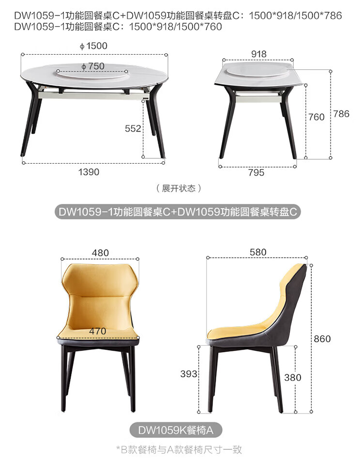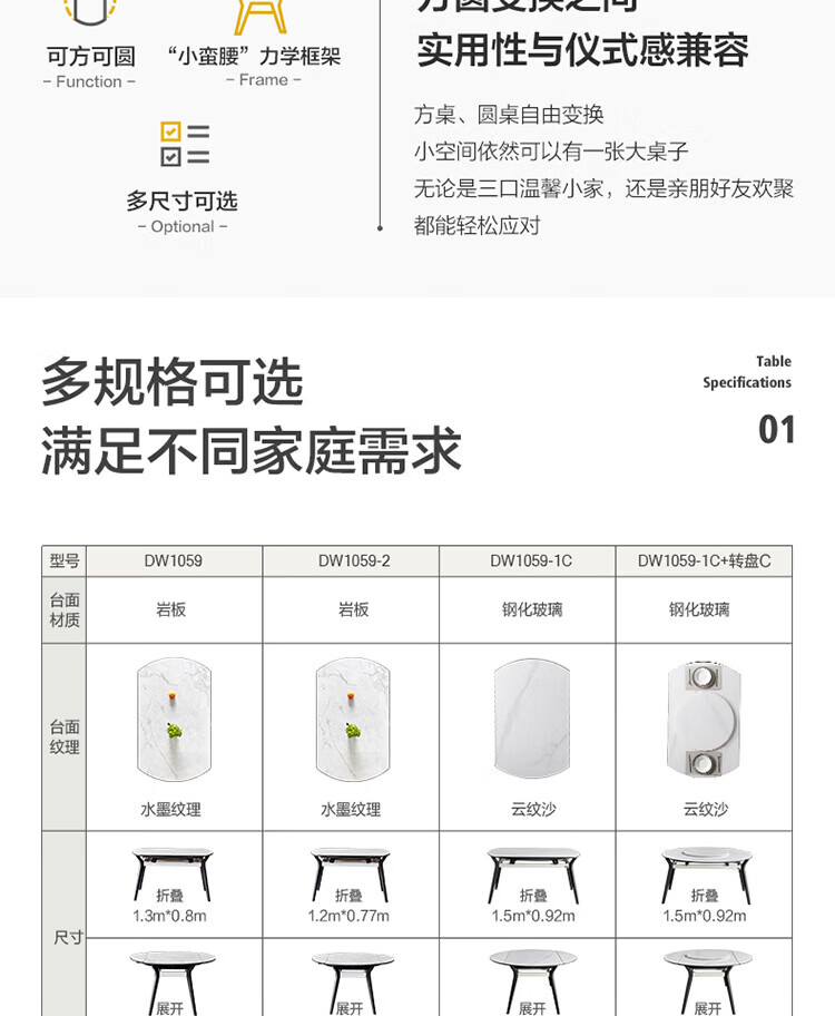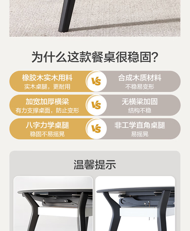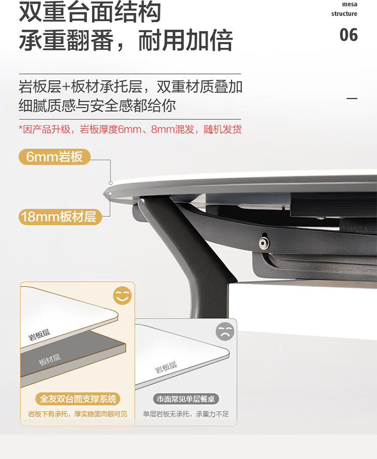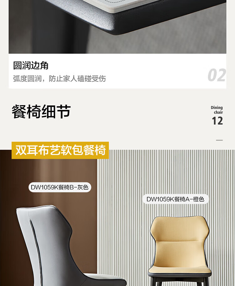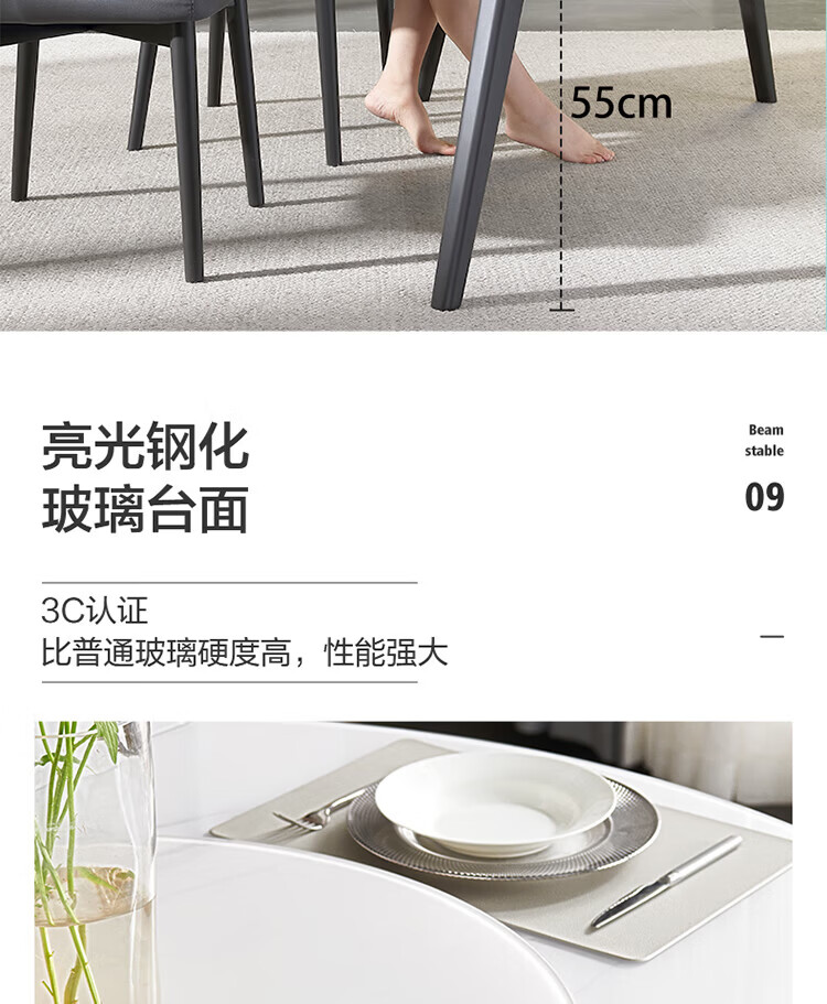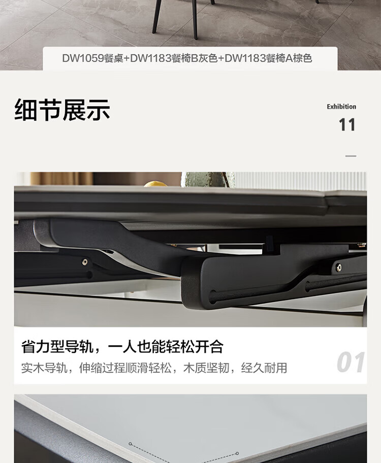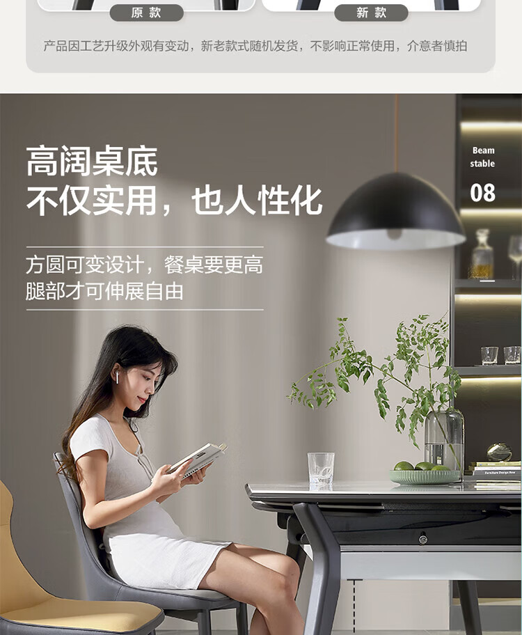 全友家居可伸缩钢化玻璃转盘吃饭桌客厅家用岩板高脚餐桌椅子组合套装 岩板|1.2m餐桌