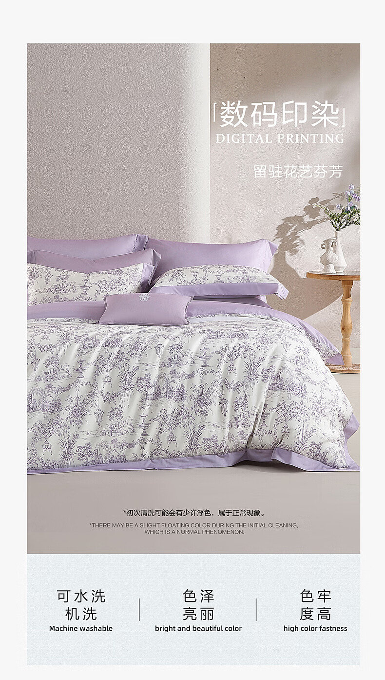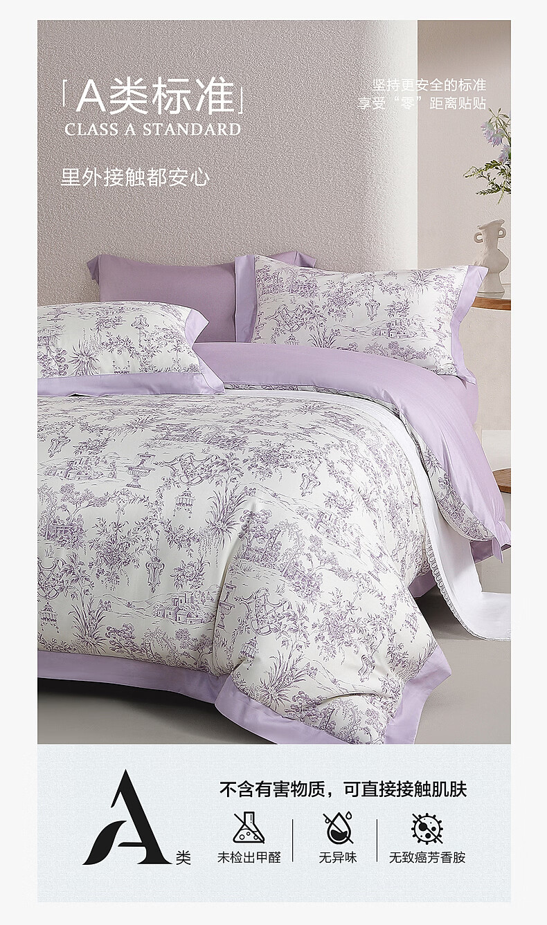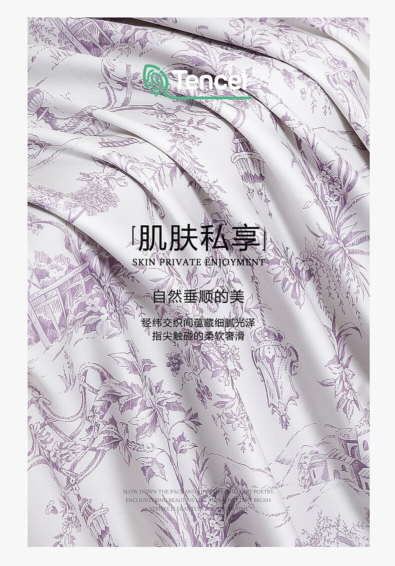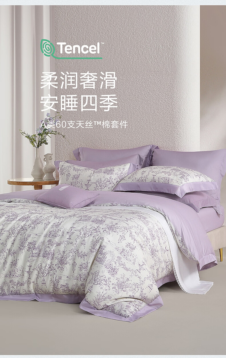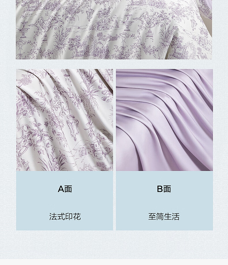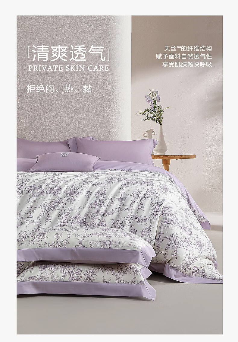 水星家纺四件套床上A类天丝™棉凉感莱赛尔被套枕套床单26年新款套件 南法·雾岸叙语床单式 1.2m 床单款 (被套150*210cm)