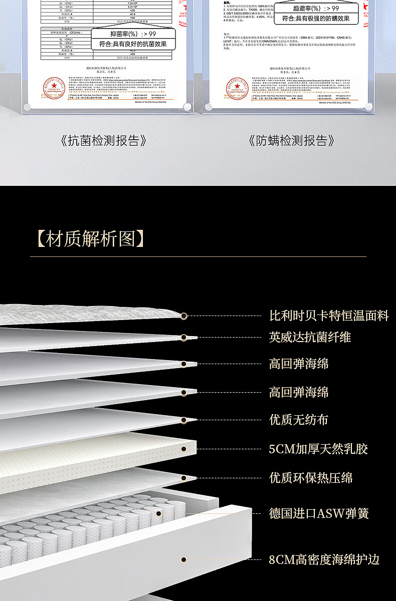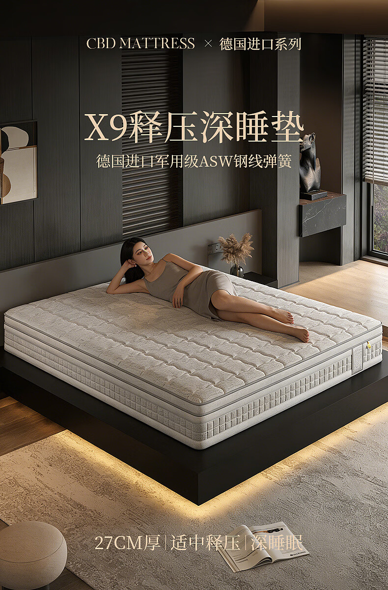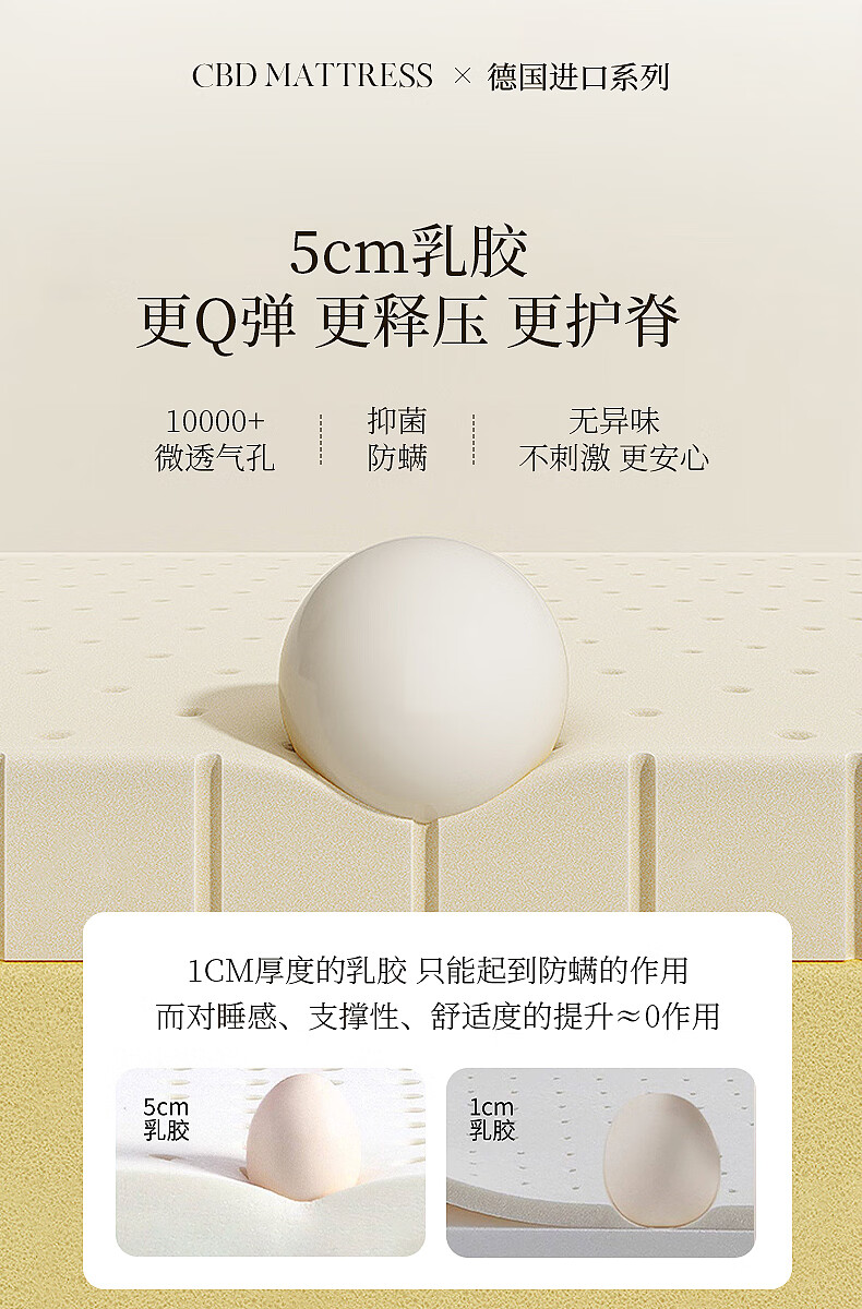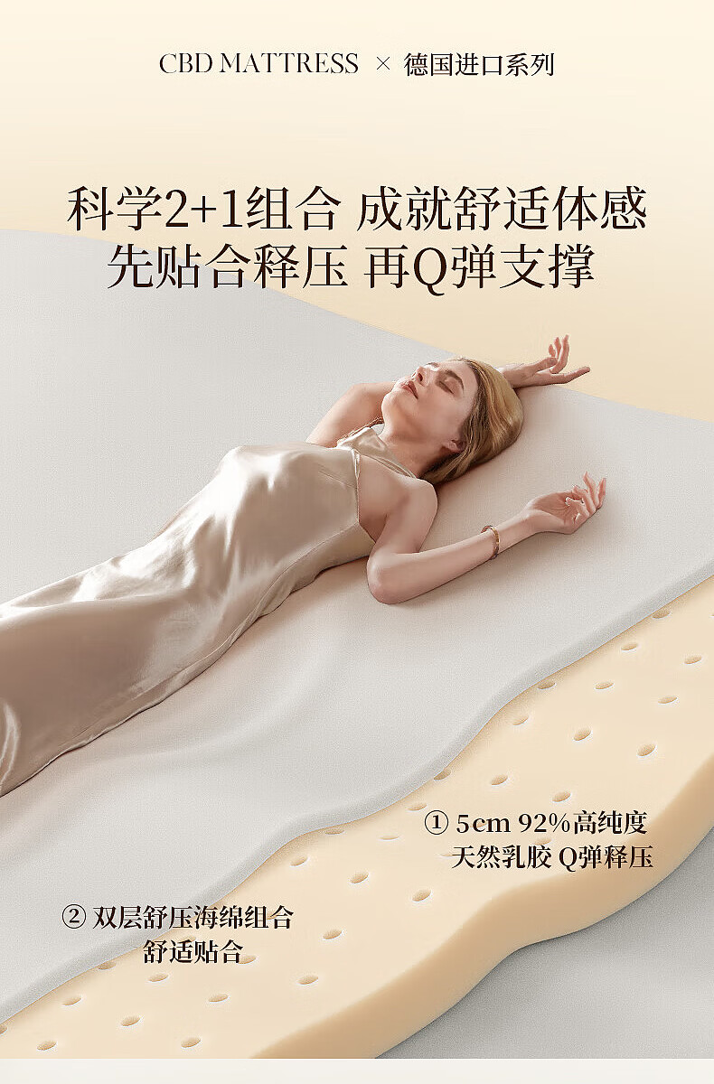 CBD家居德国ASW进口三区弹簧5cm乳胶床垫释压深睡1.8*2米 X9床垫 大哈欠床垫 1800*2000