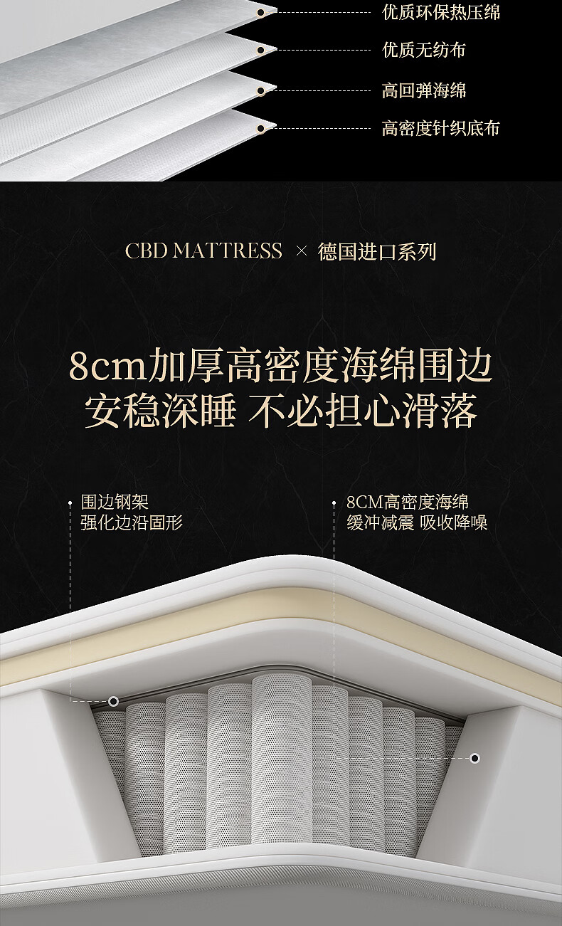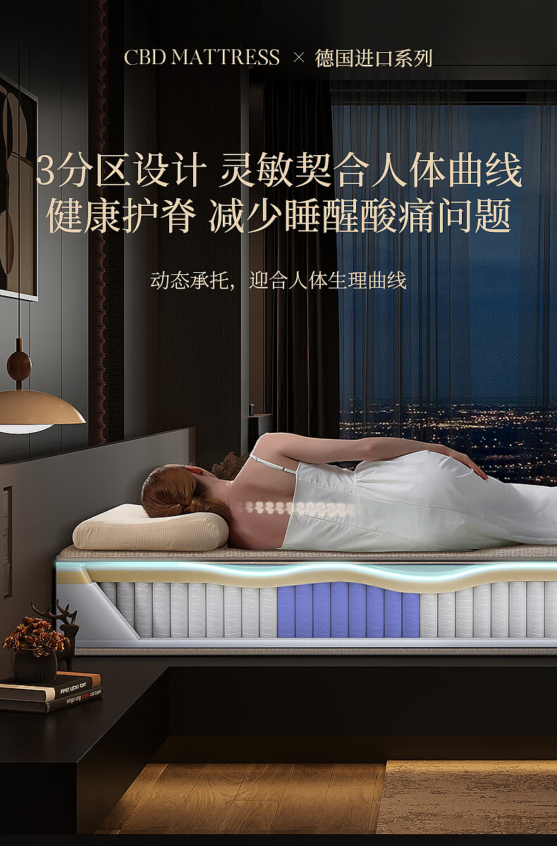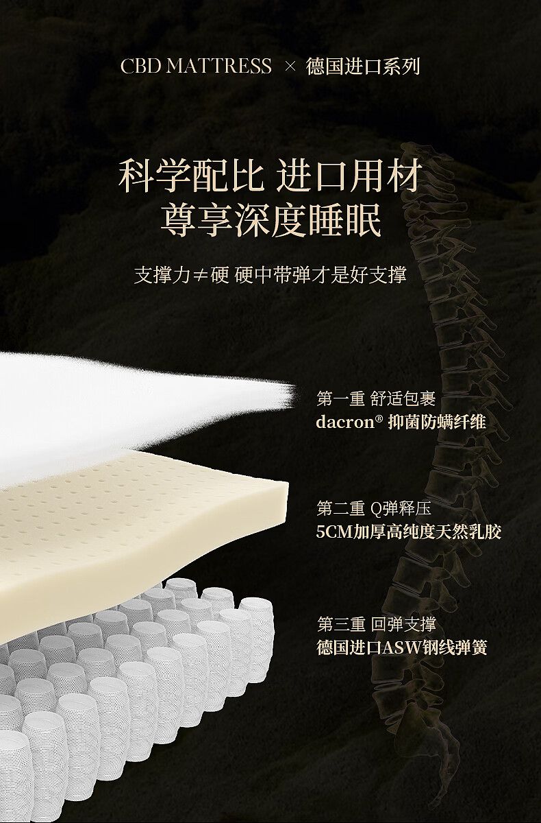 CBD家居德国ASW进口三区弹簧5cm乳胶床垫释压深睡1.8*2米 X9床垫 大哈欠床垫 1800*2000