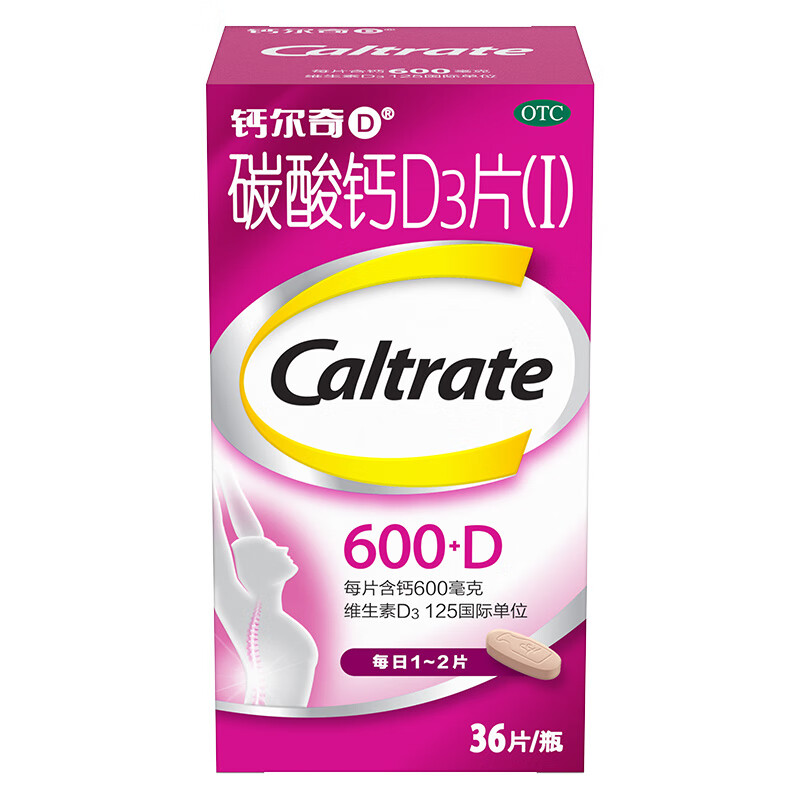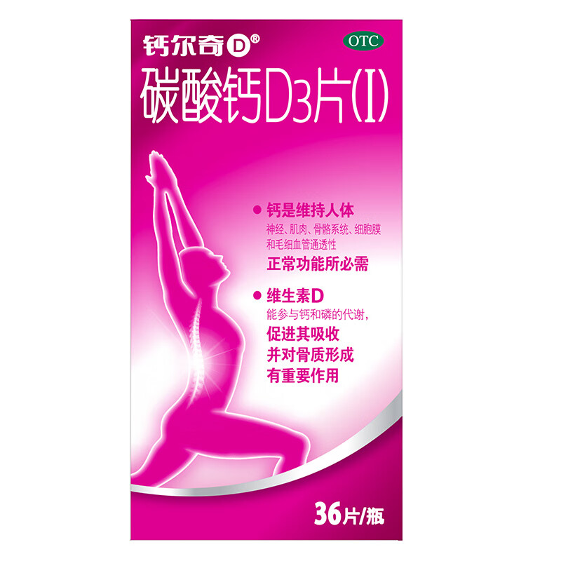 钙尔奇成人碳酸钙D3片36片OTC钙片含维生素d3哺乳孕妇男女补钙老年钙手足抽筋预防骨质疏松