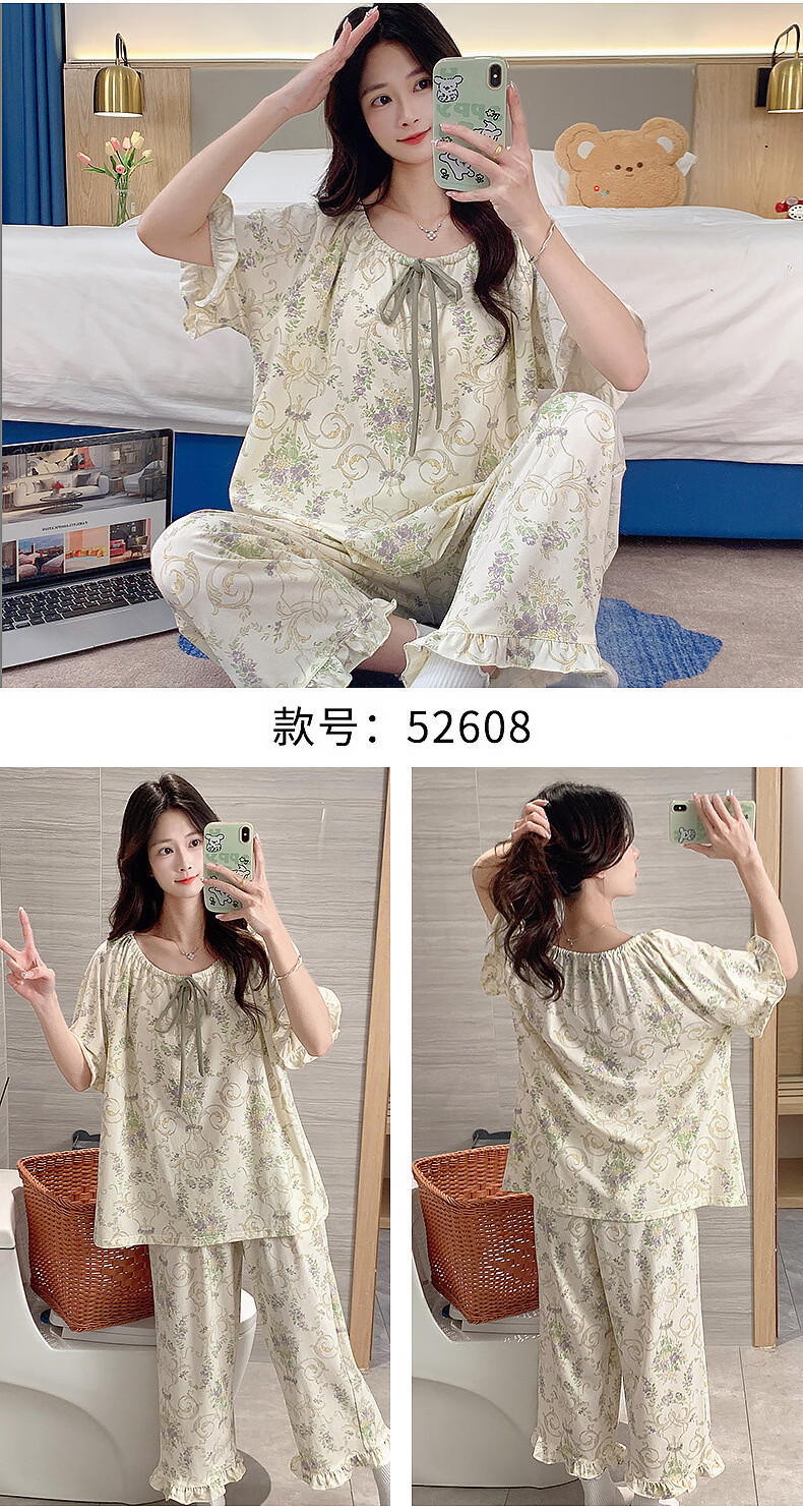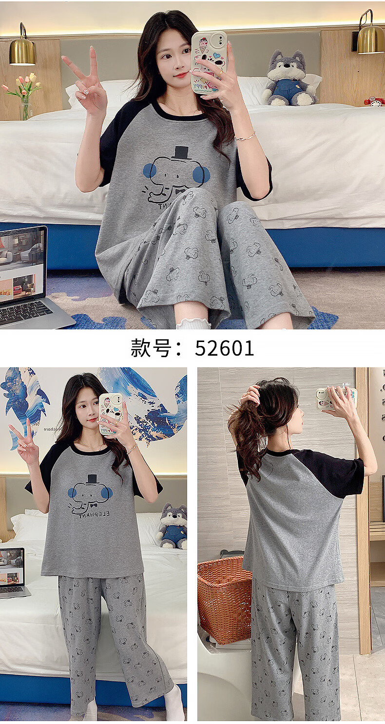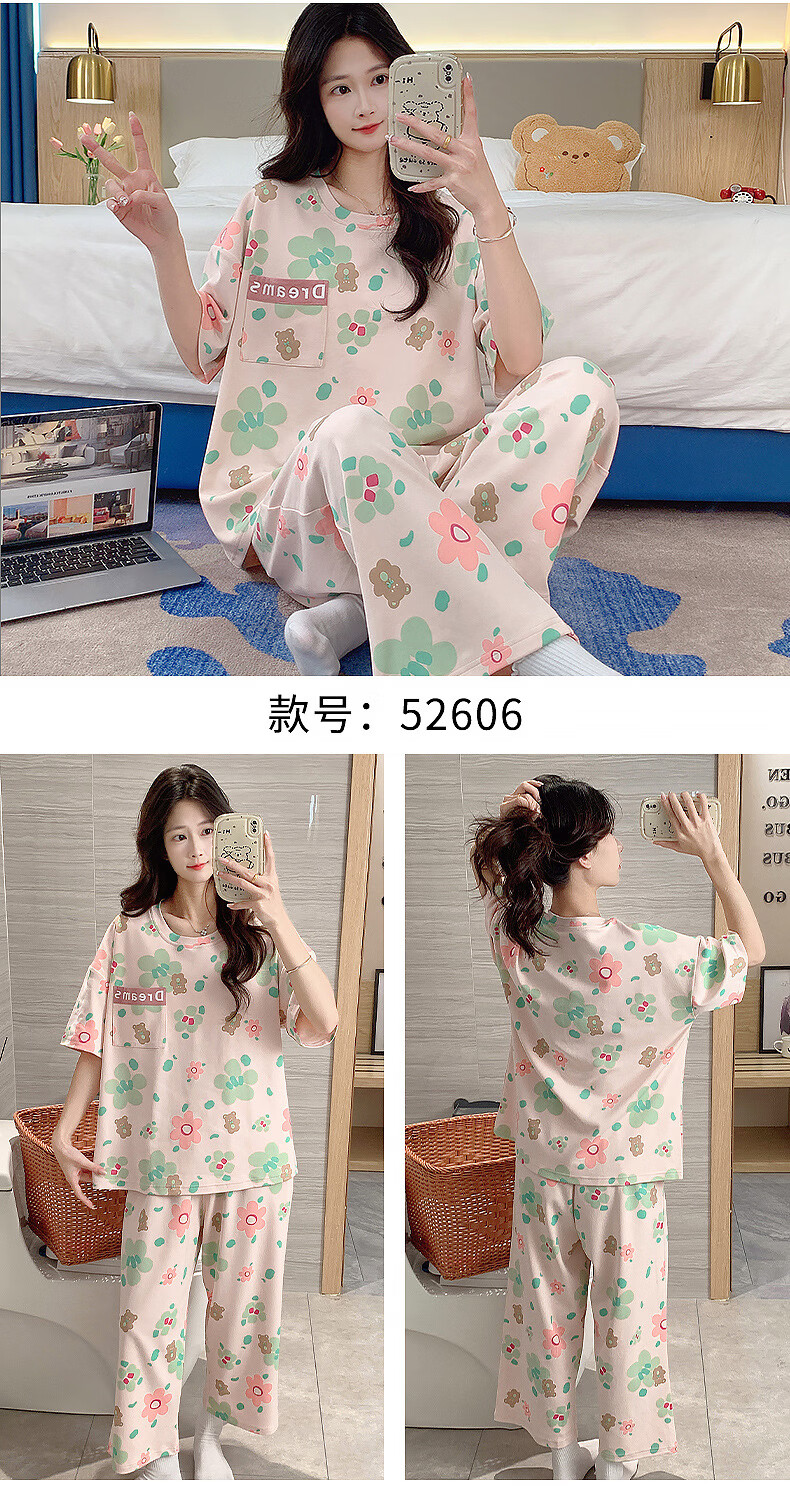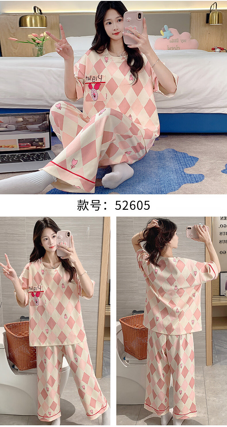 DAPHNE达芙妮【N】带胸垫一体睡衣女夏季短袖九分裤家居服大码卡通居家套装 CRS-52608带胸垫 L