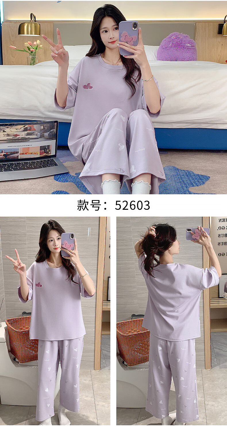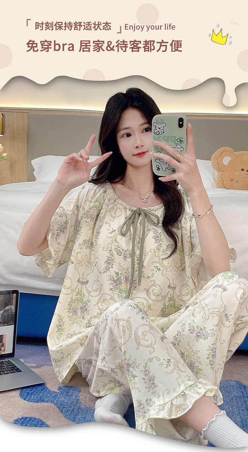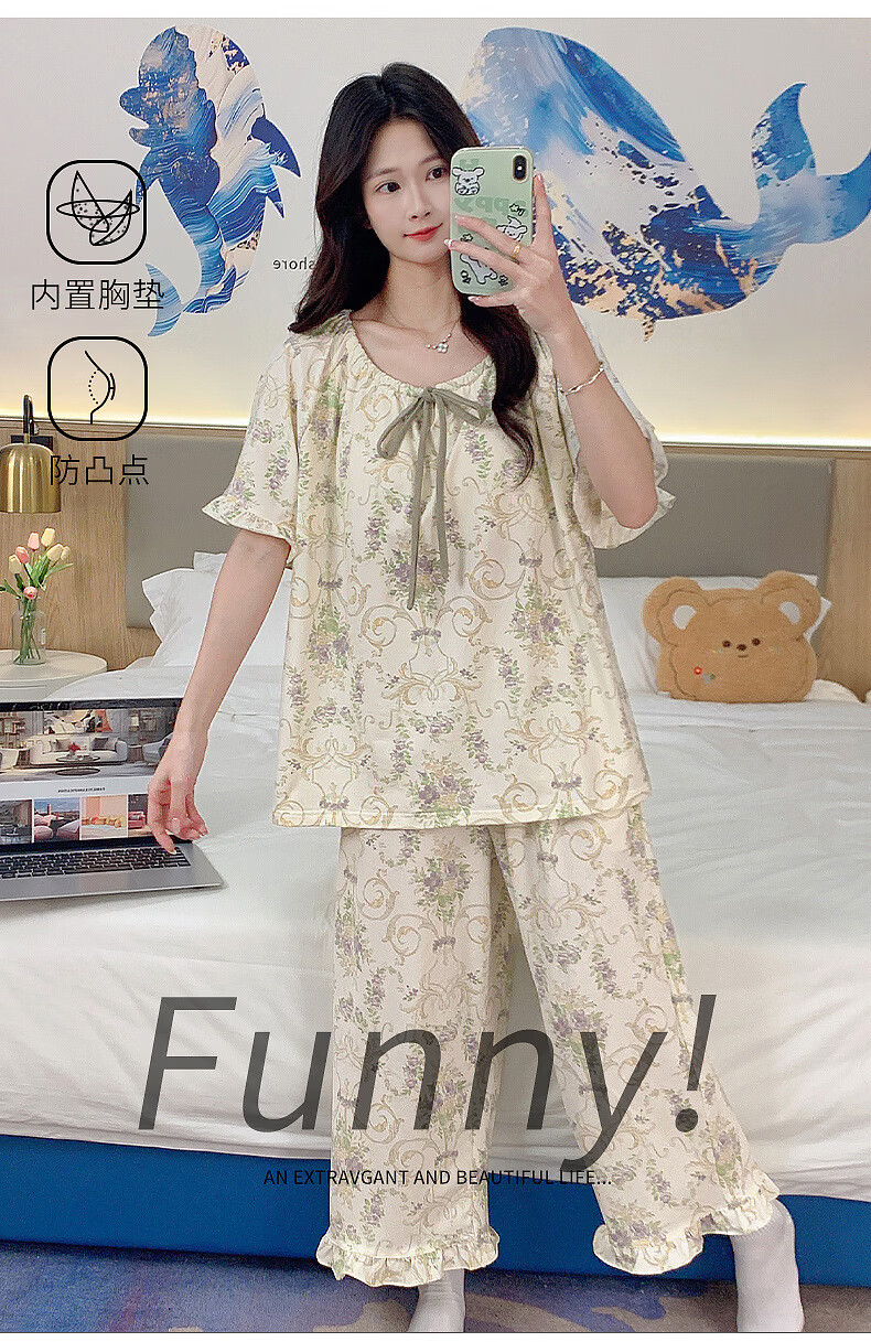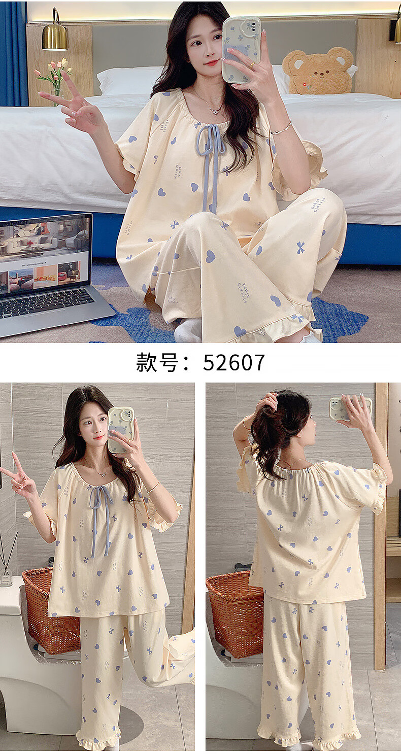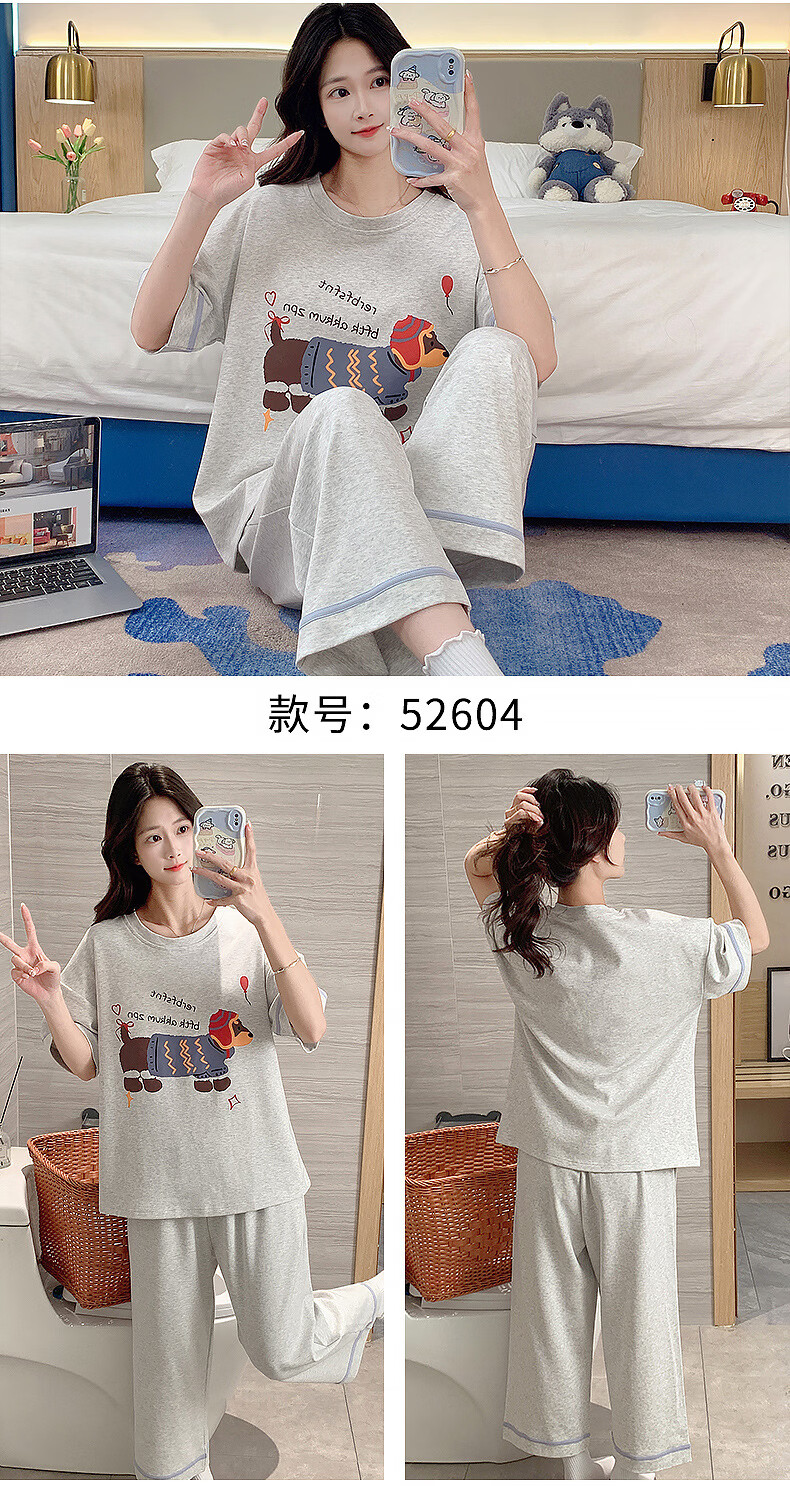 DAPHNE达芙妮【N】带胸垫一体睡衣女夏季短袖九分裤家居服大码卡通居家套装 CRS-52608带胸垫 L