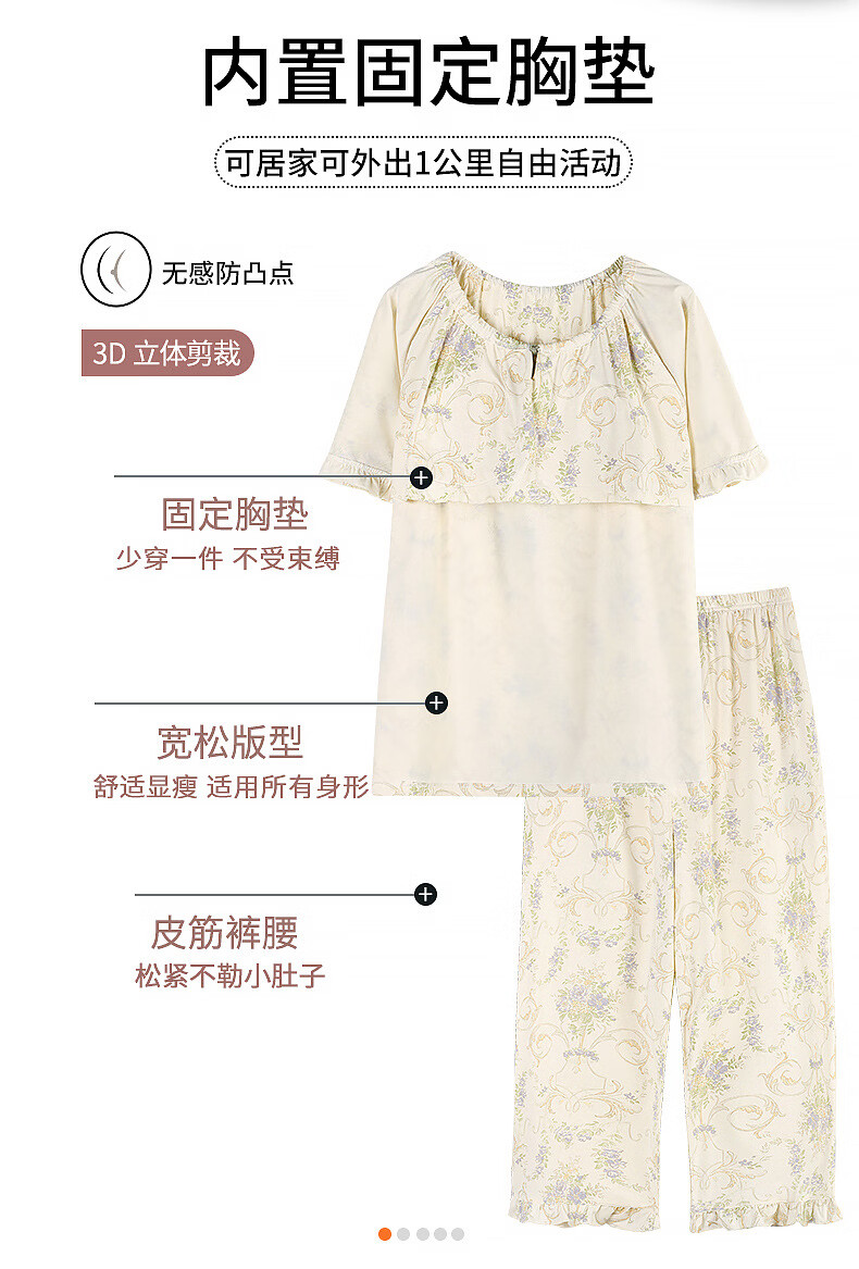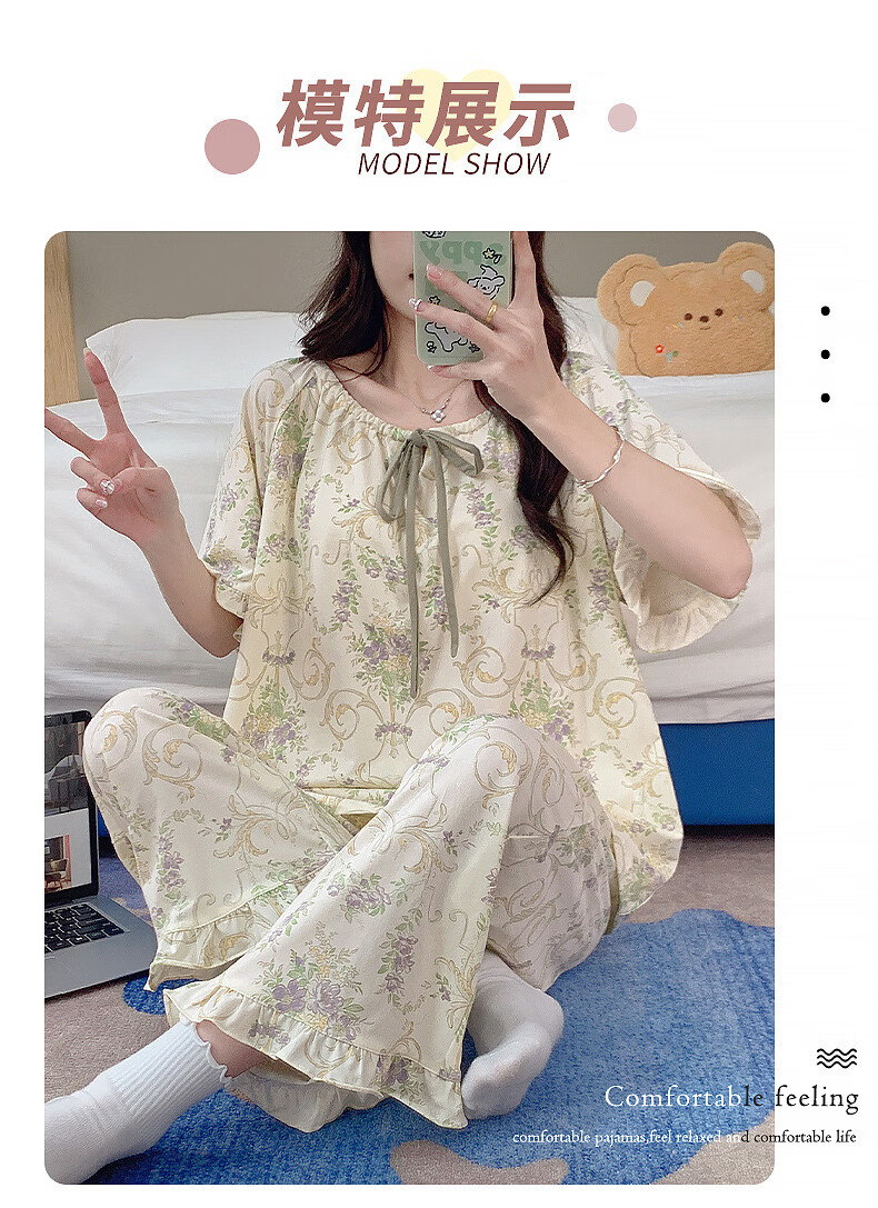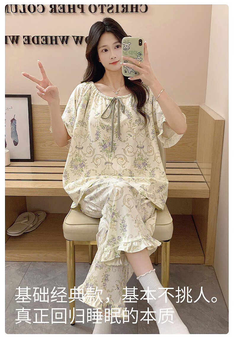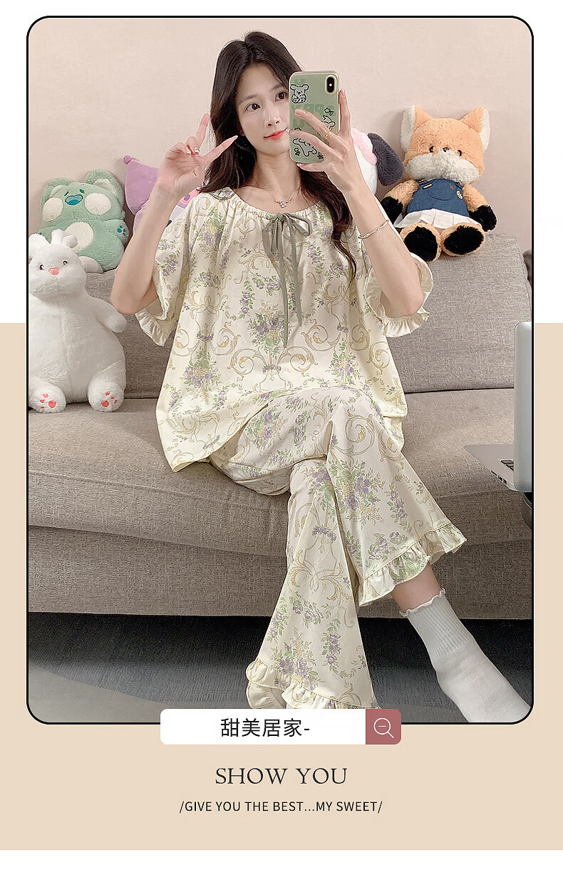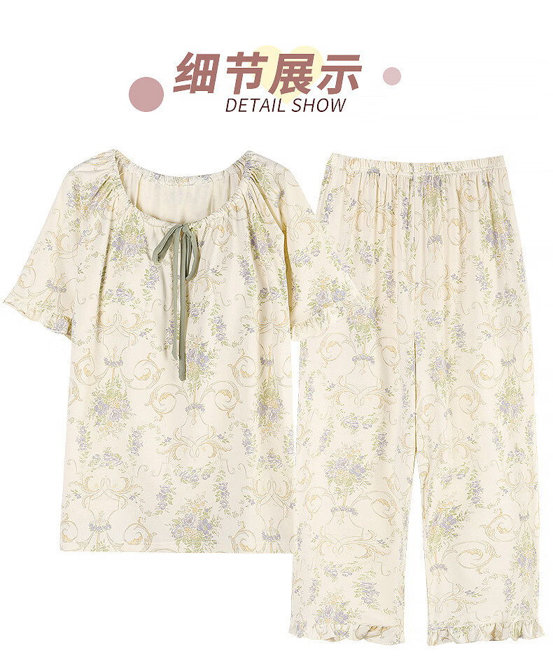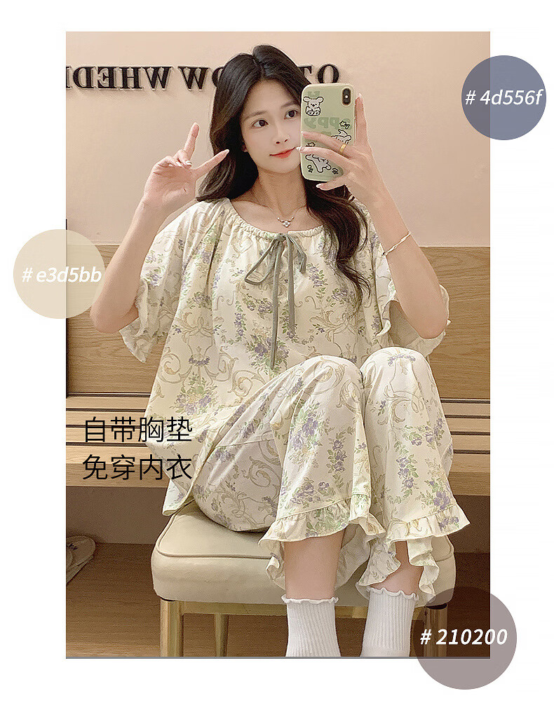DAPHNE达芙妮【N】带胸垫一体睡衣女夏季短袖九分裤家居服大码卡通居家套装 CRS-52608带胸垫 L
