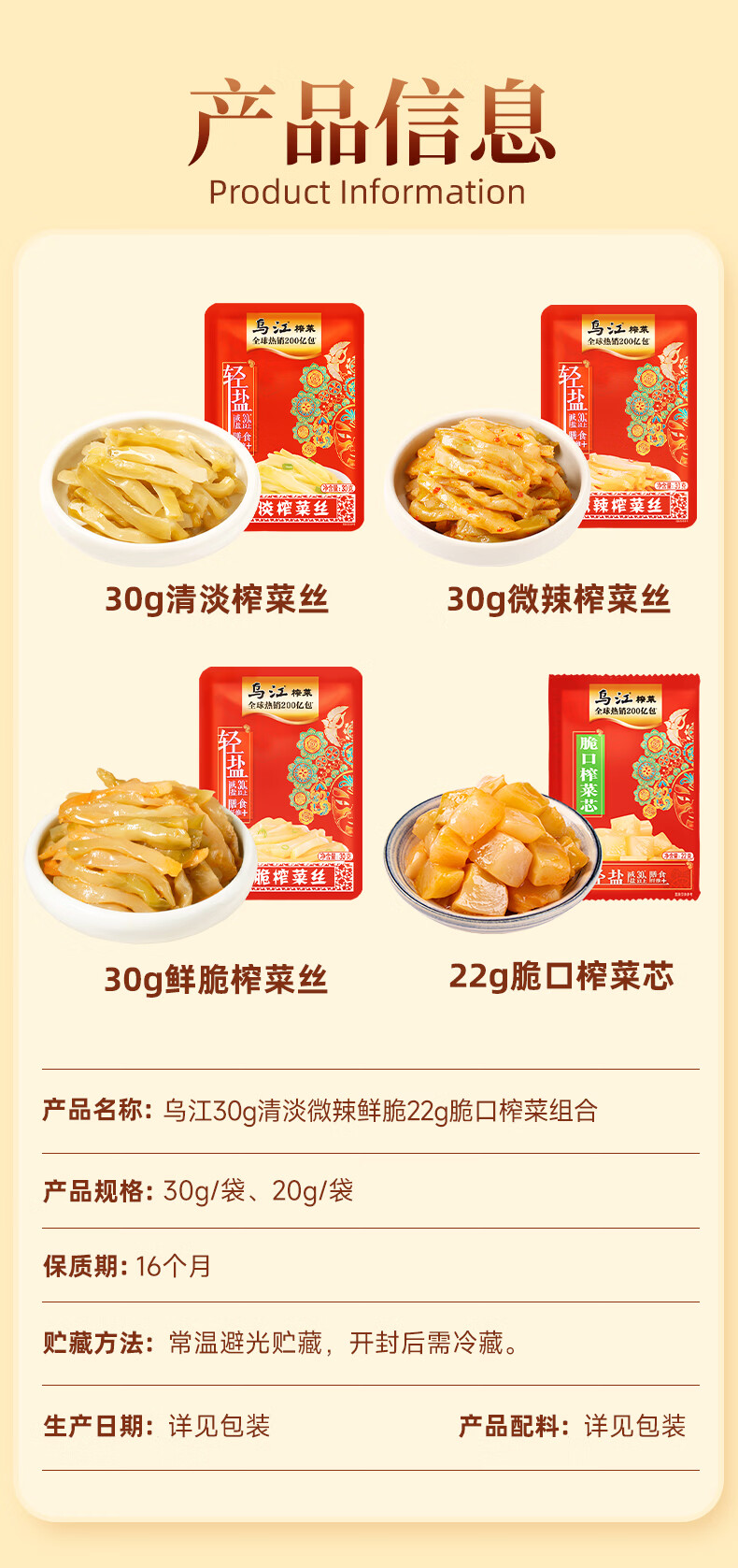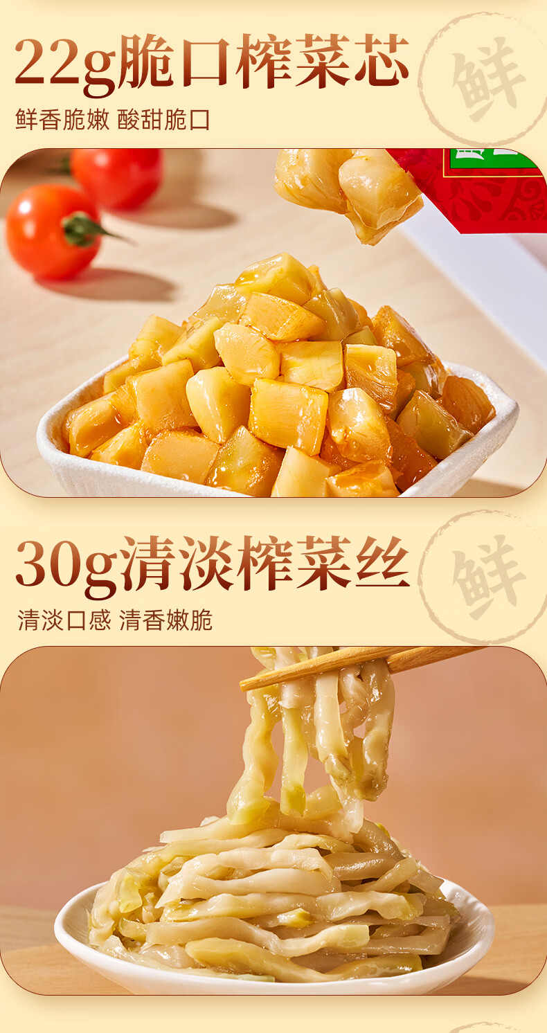 乌江20袋组合 22g脆口榨菜芯30g榨菜 爽口开味下饭学生榨菜拌面 脆口榨菜芯22g*15+鲜脆30g*5