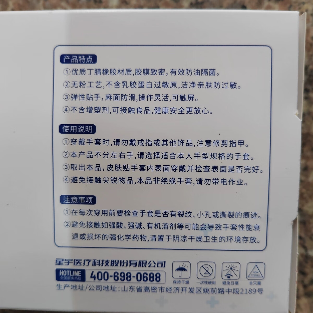 星宇一次性丁腈手套蓝色食品级手套耐磨可触屏手套多用途检查手套 L码(100只盒装)