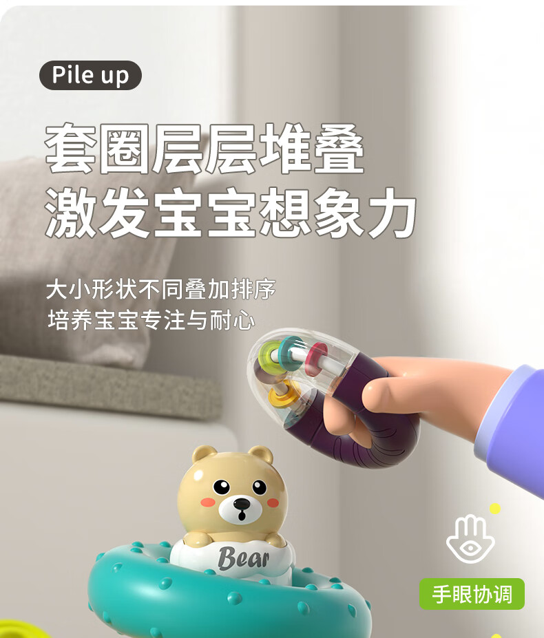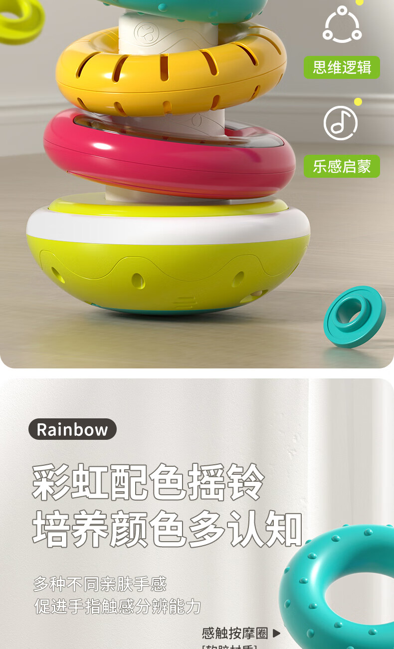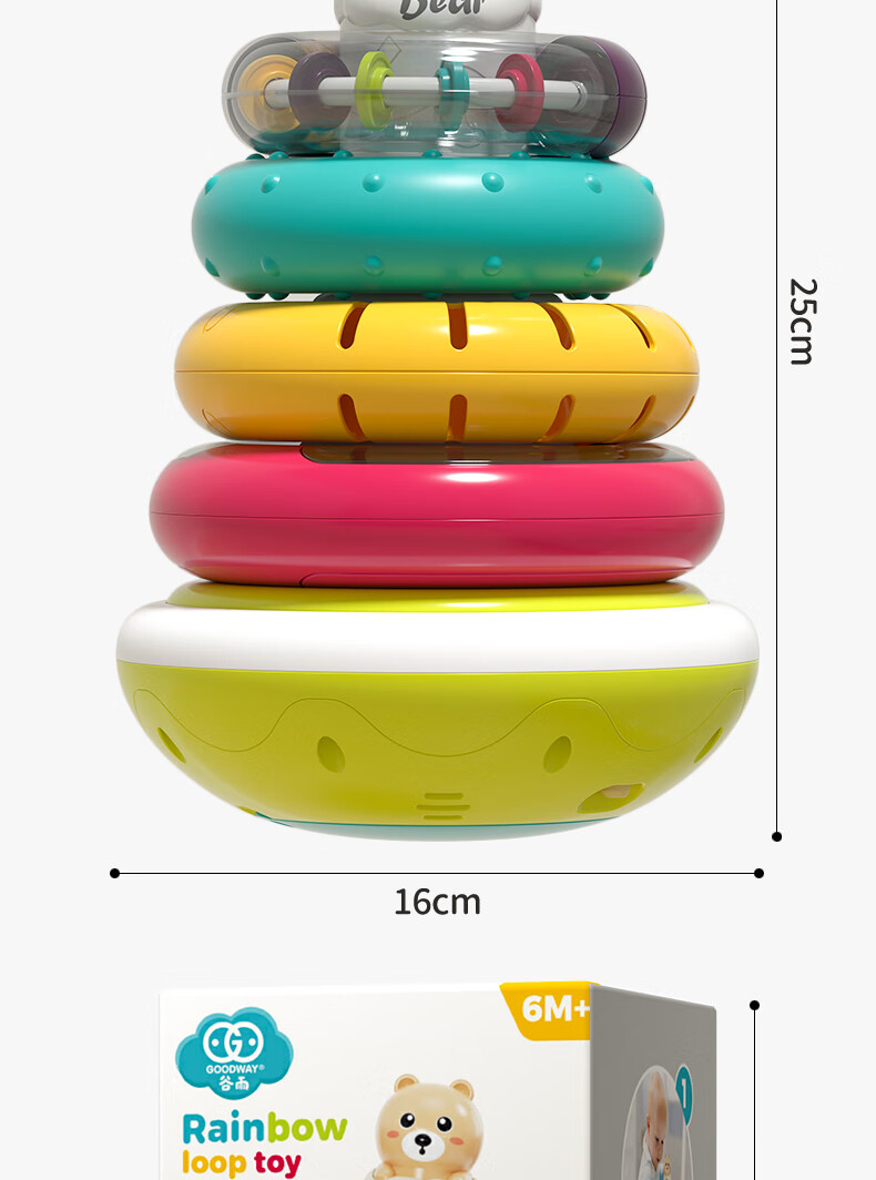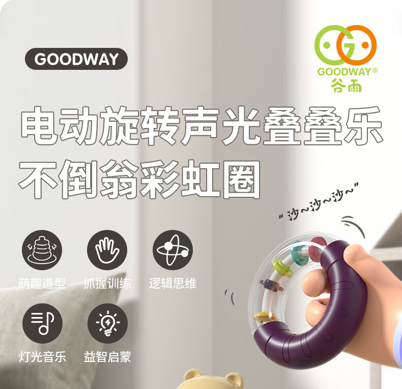 谷雨(GOODWAY)叠叠圈1-3岁婴幼儿玩具儿童益智套圈转转乐不倒翁6个月摇铃叠叠乐