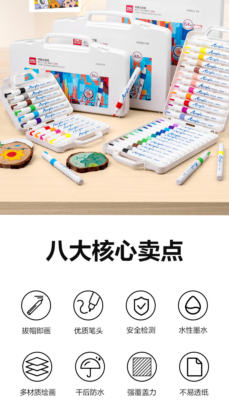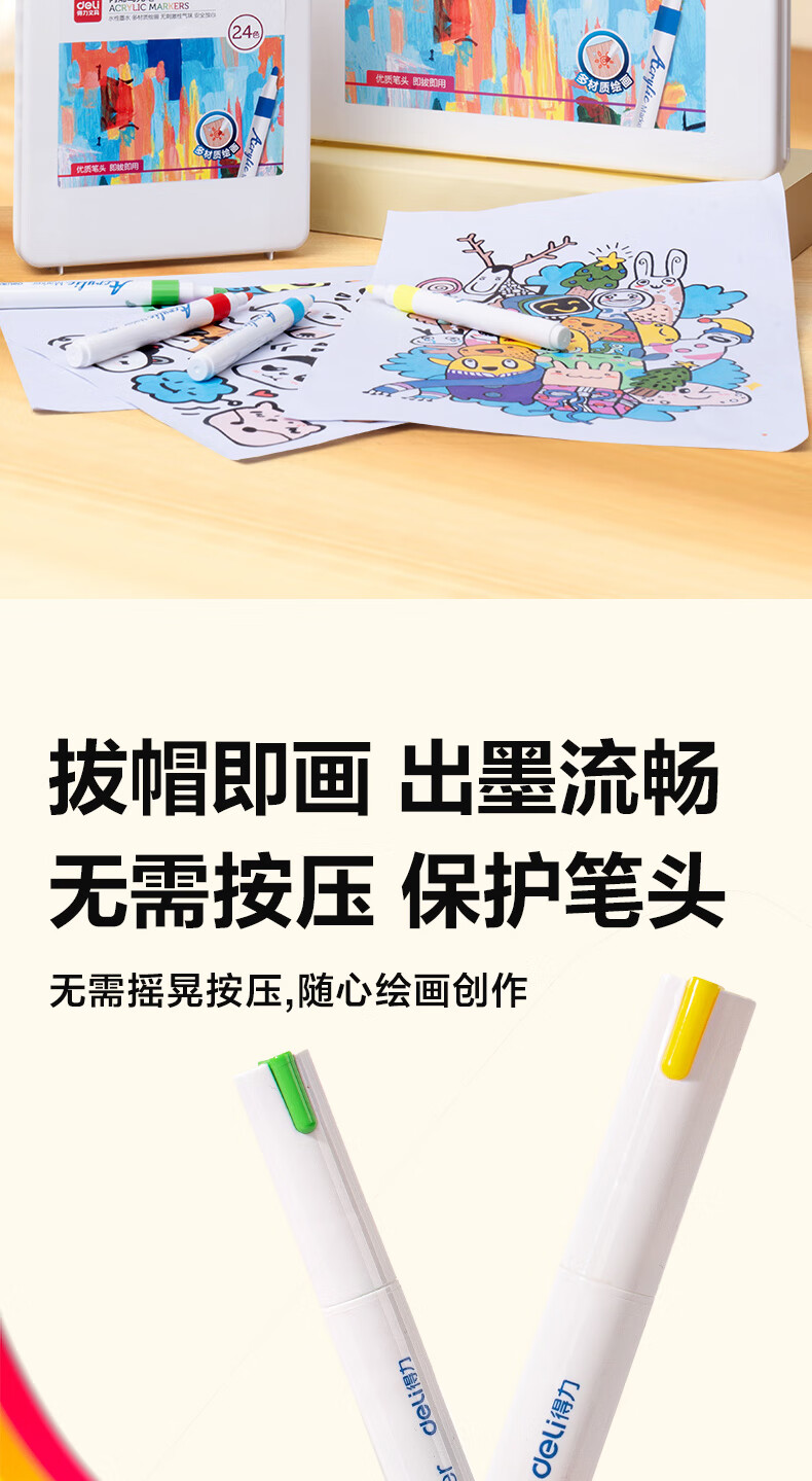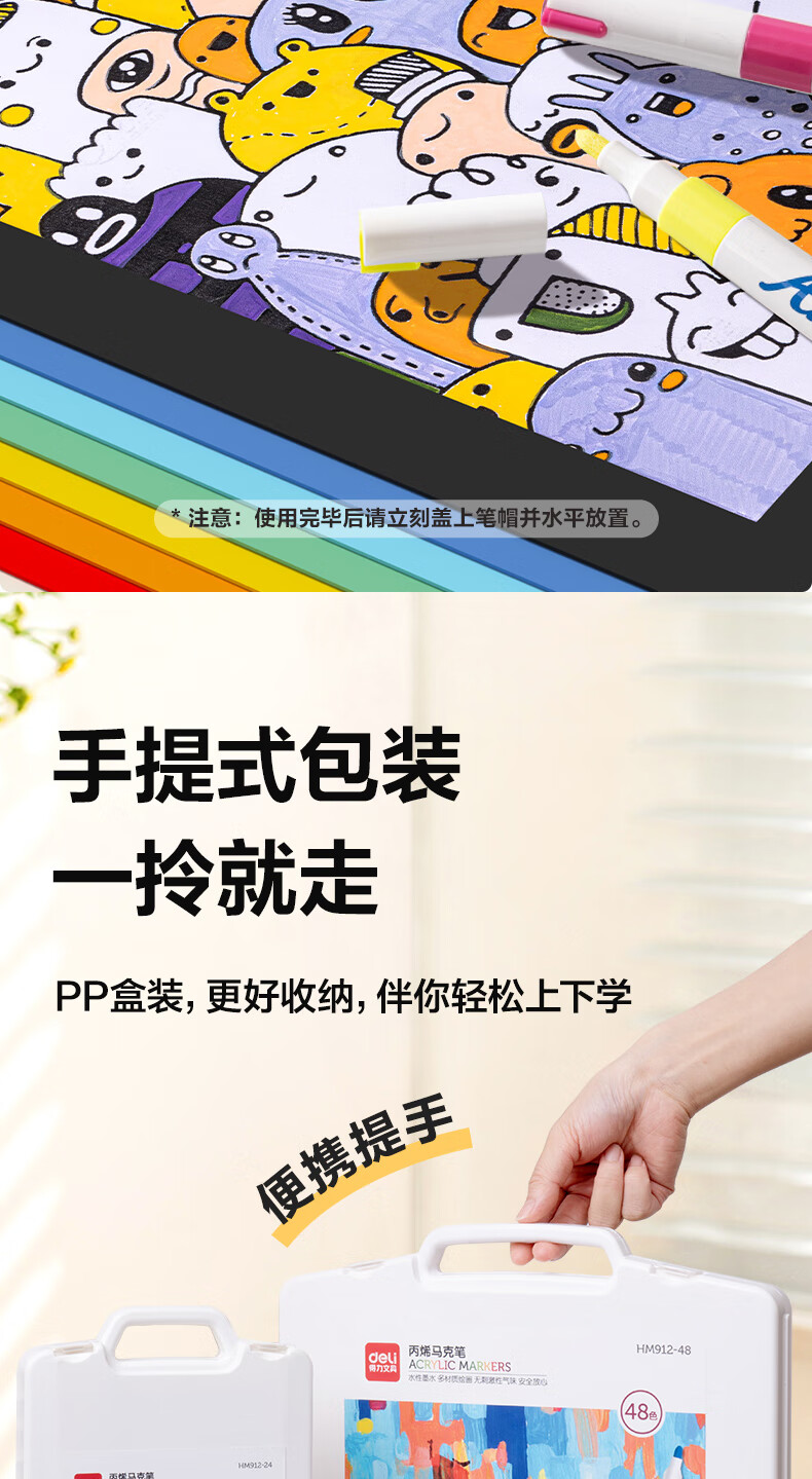 得力(deli)48色儿童学生水性丙烯马克笔PP盒装水彩笔生日礼物防水手绘咕卡荧光记号笔元旦涂鸦美育