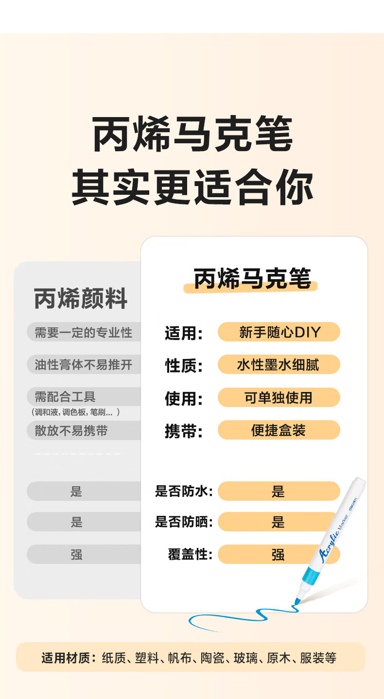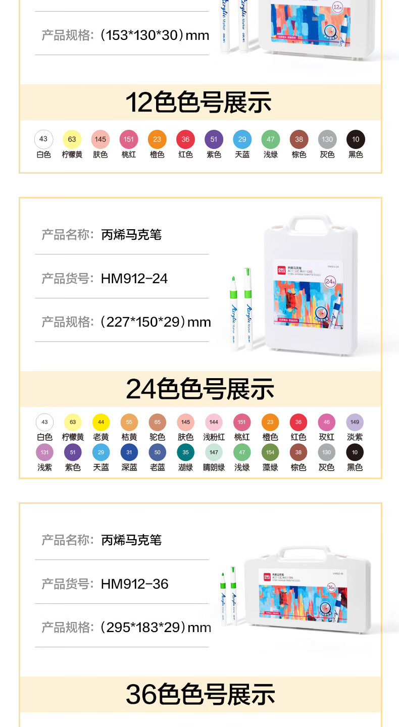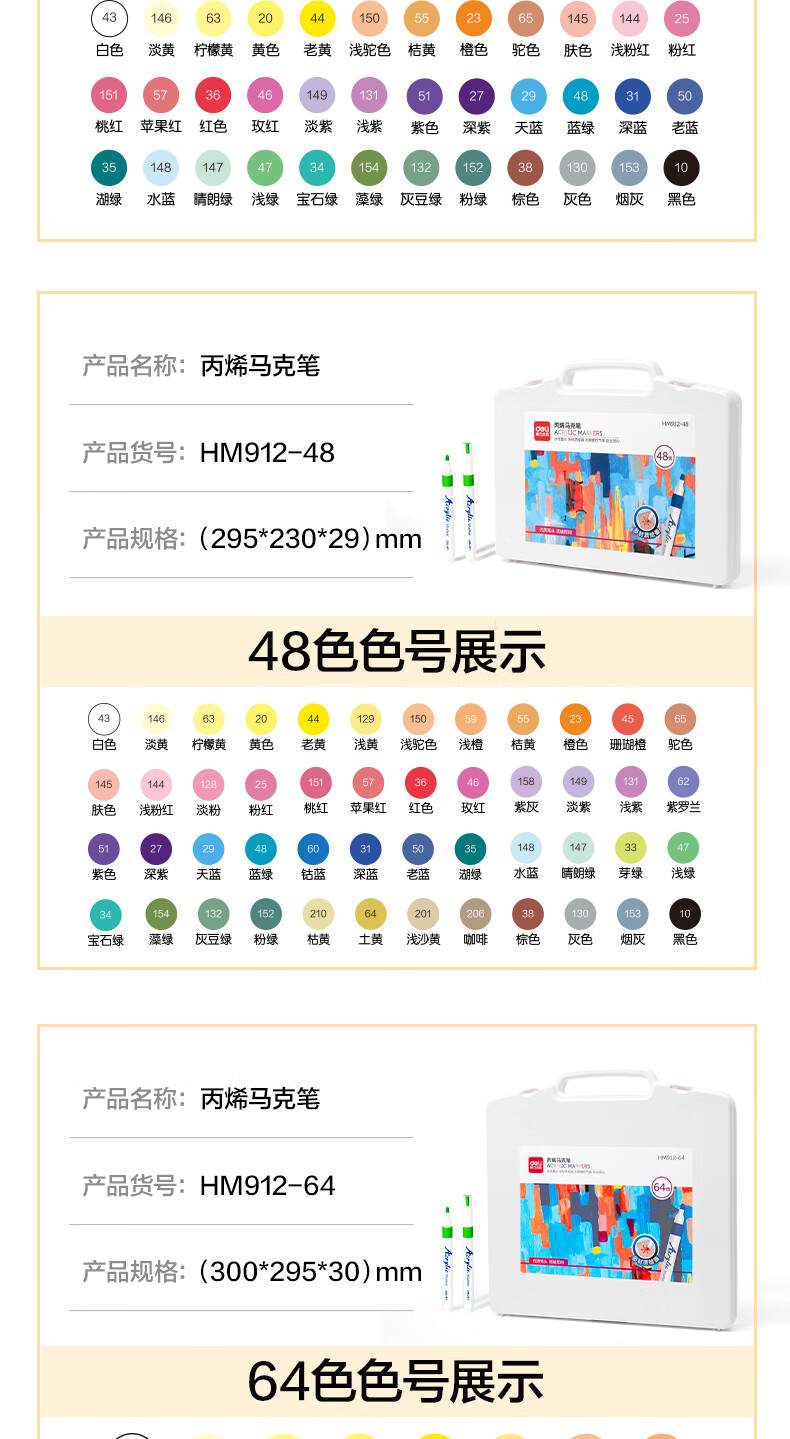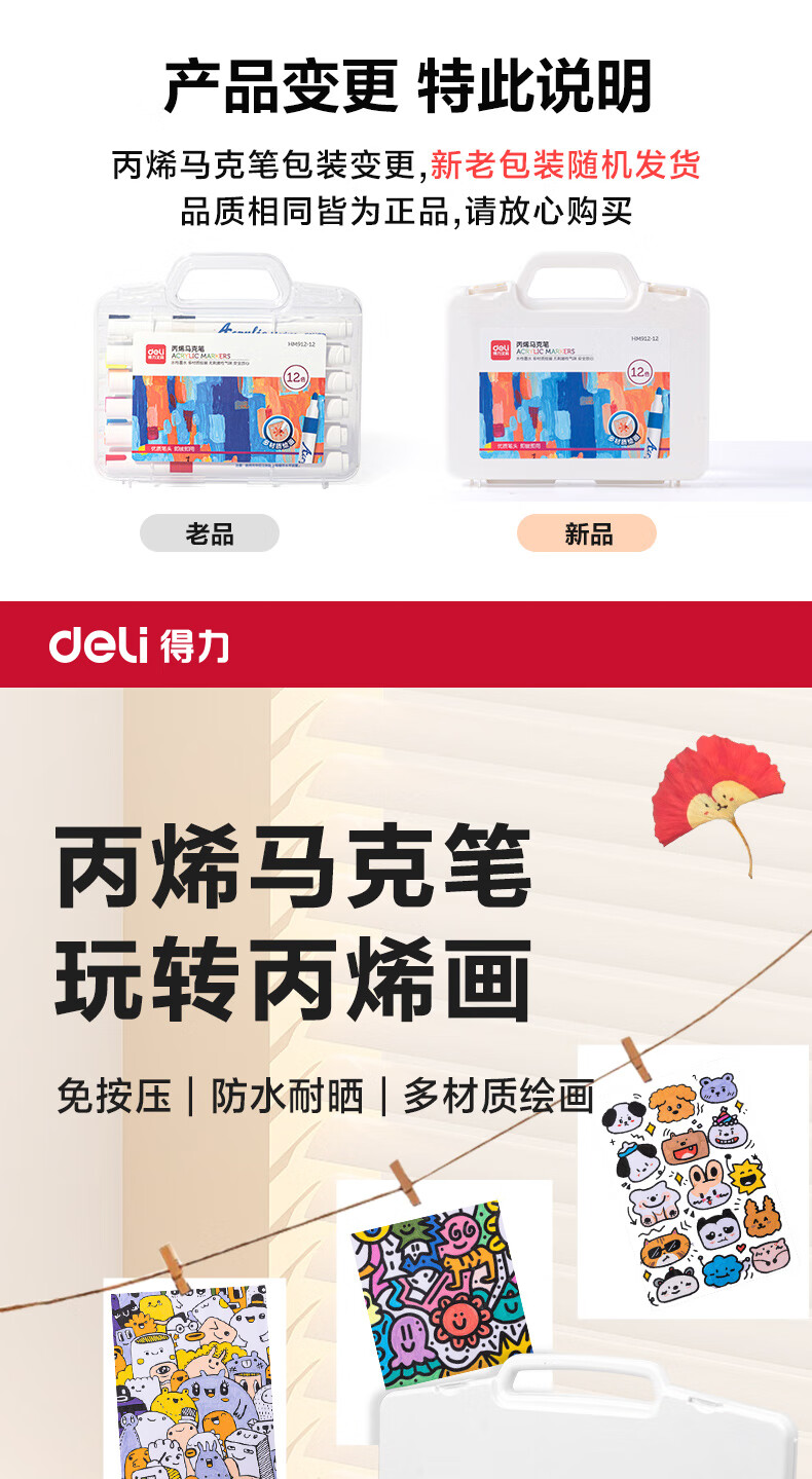 得力(deli)48色儿童学生水性丙烯马克笔PP盒装水彩笔生日礼物防水手绘咕卡荧光记号笔元旦涂鸦美育