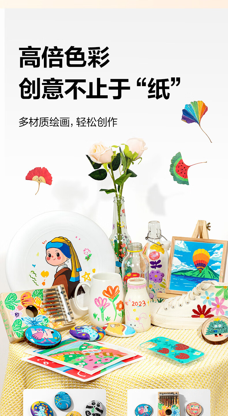 得力12色100ml丙烯画颜料1200ml套装小罐装绘画涂鸦艺考室内外绘画速写美育工具