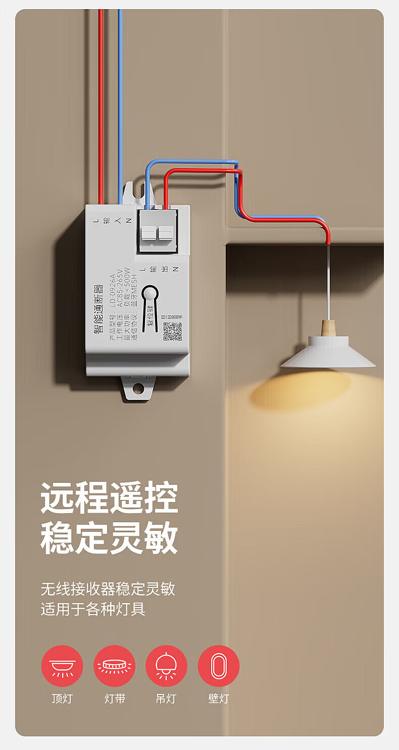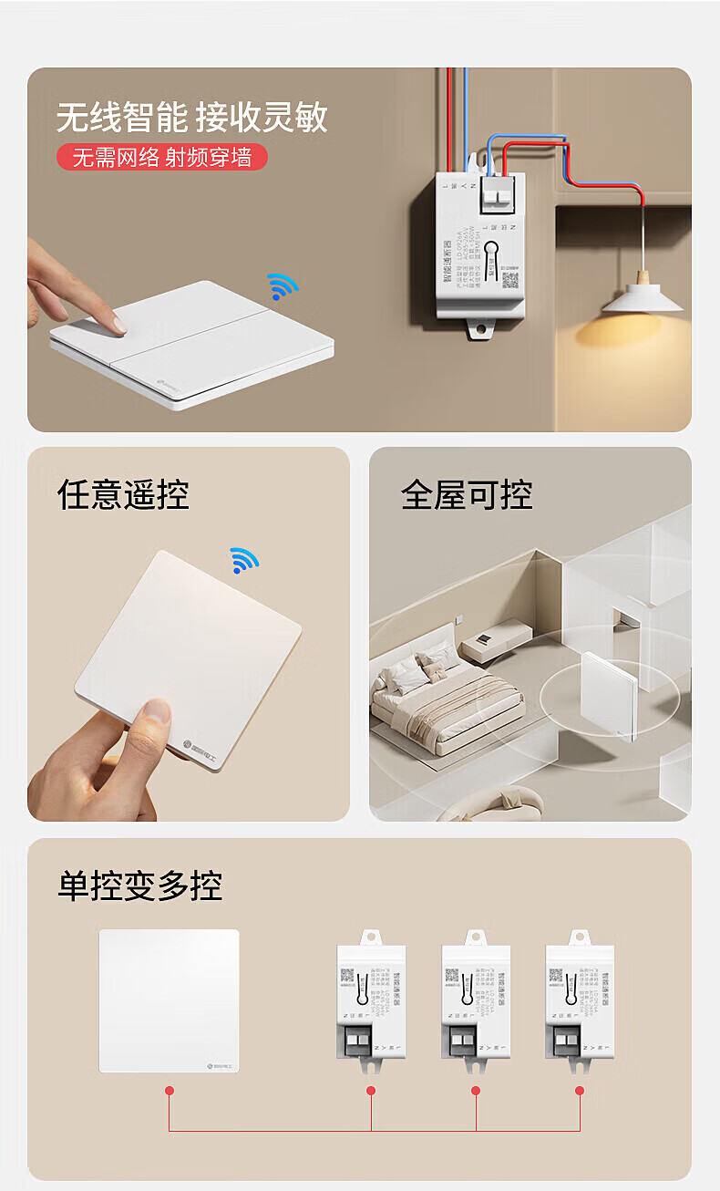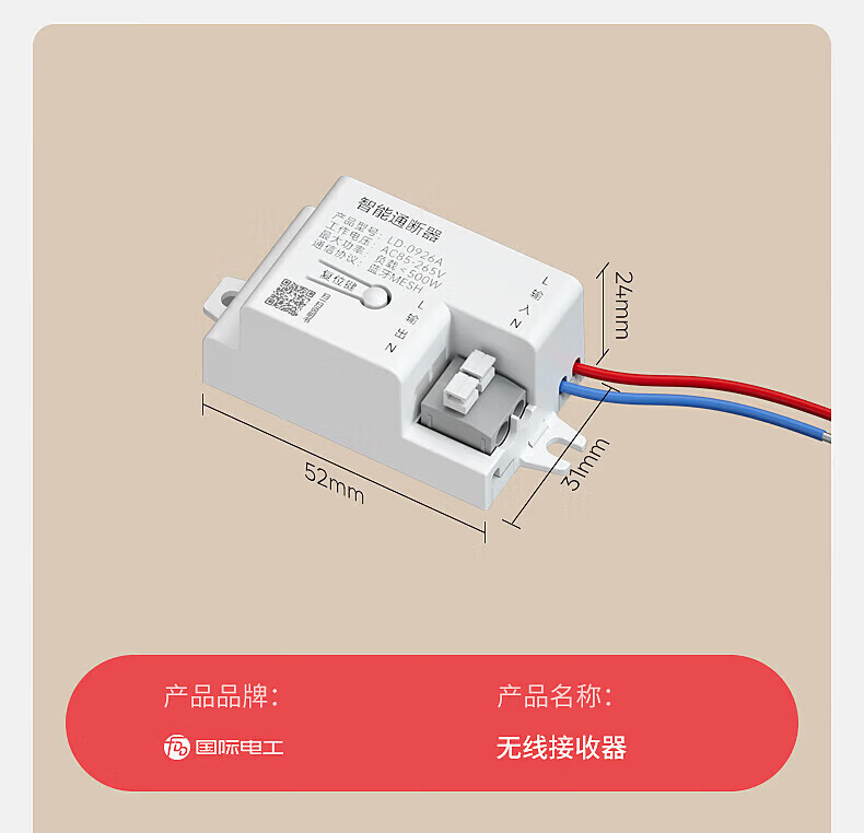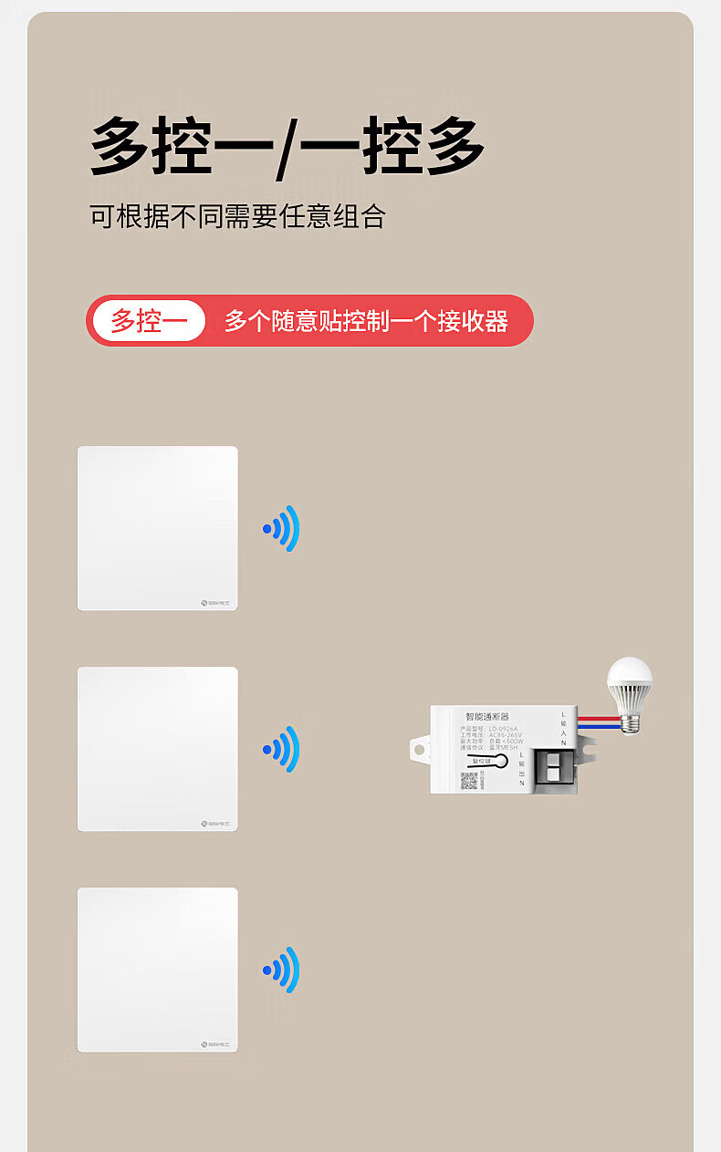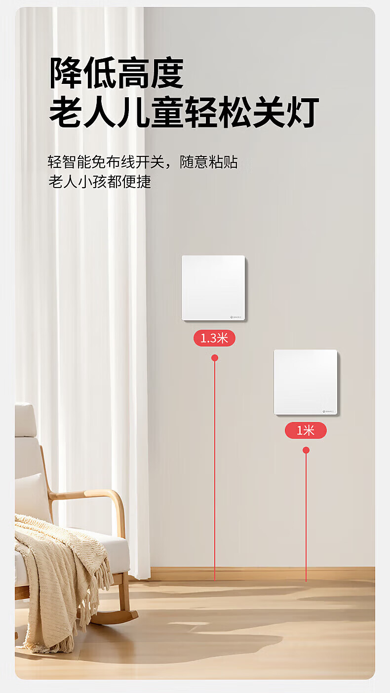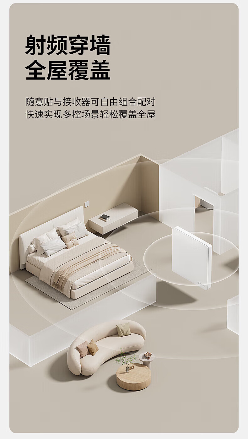 国际电工(FDD)已接入米家APP无线遥控随意贴开关智能接收器支持小爱同学控制 金色一开(1个智能接收器+1个随意贴)