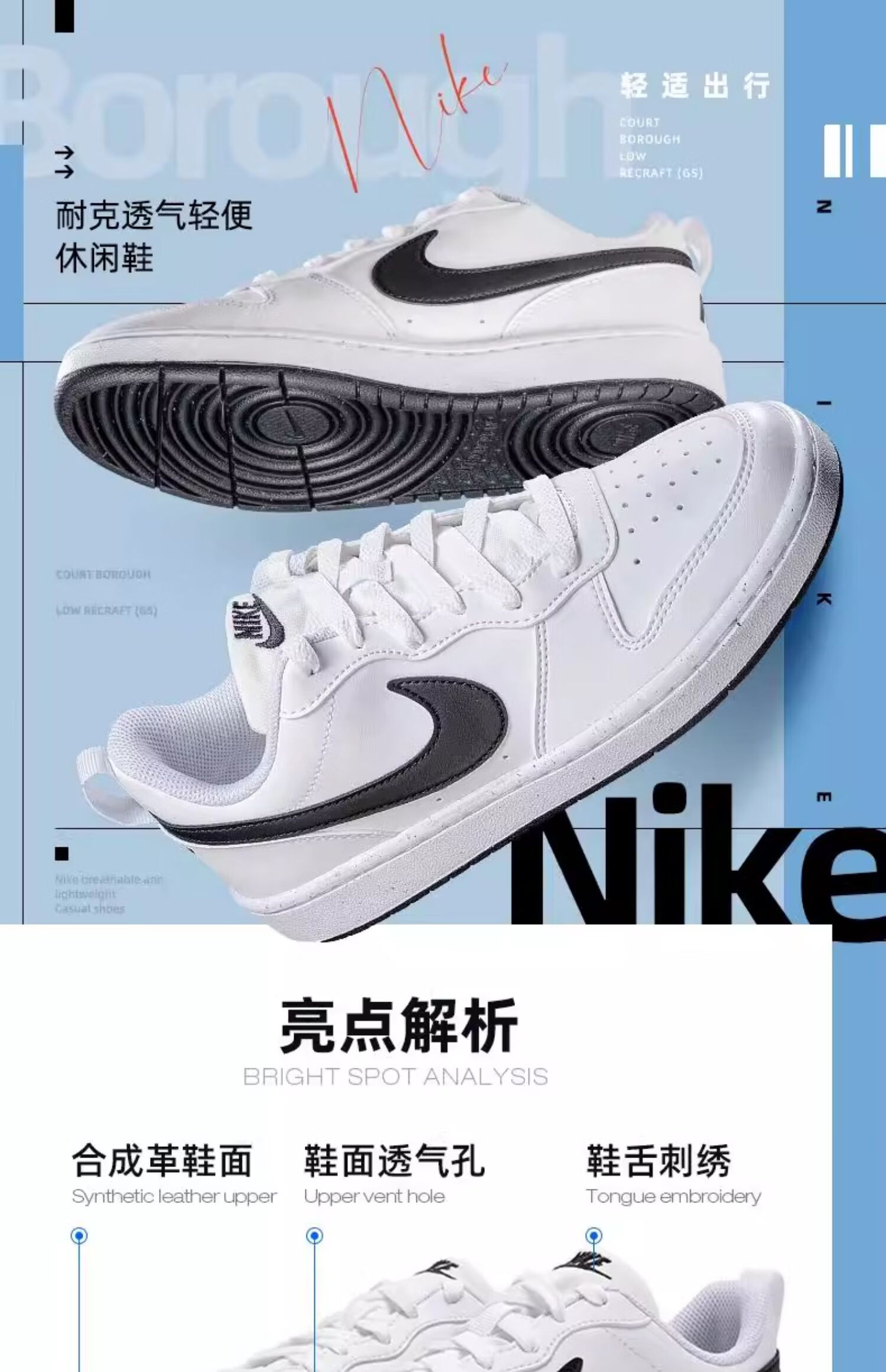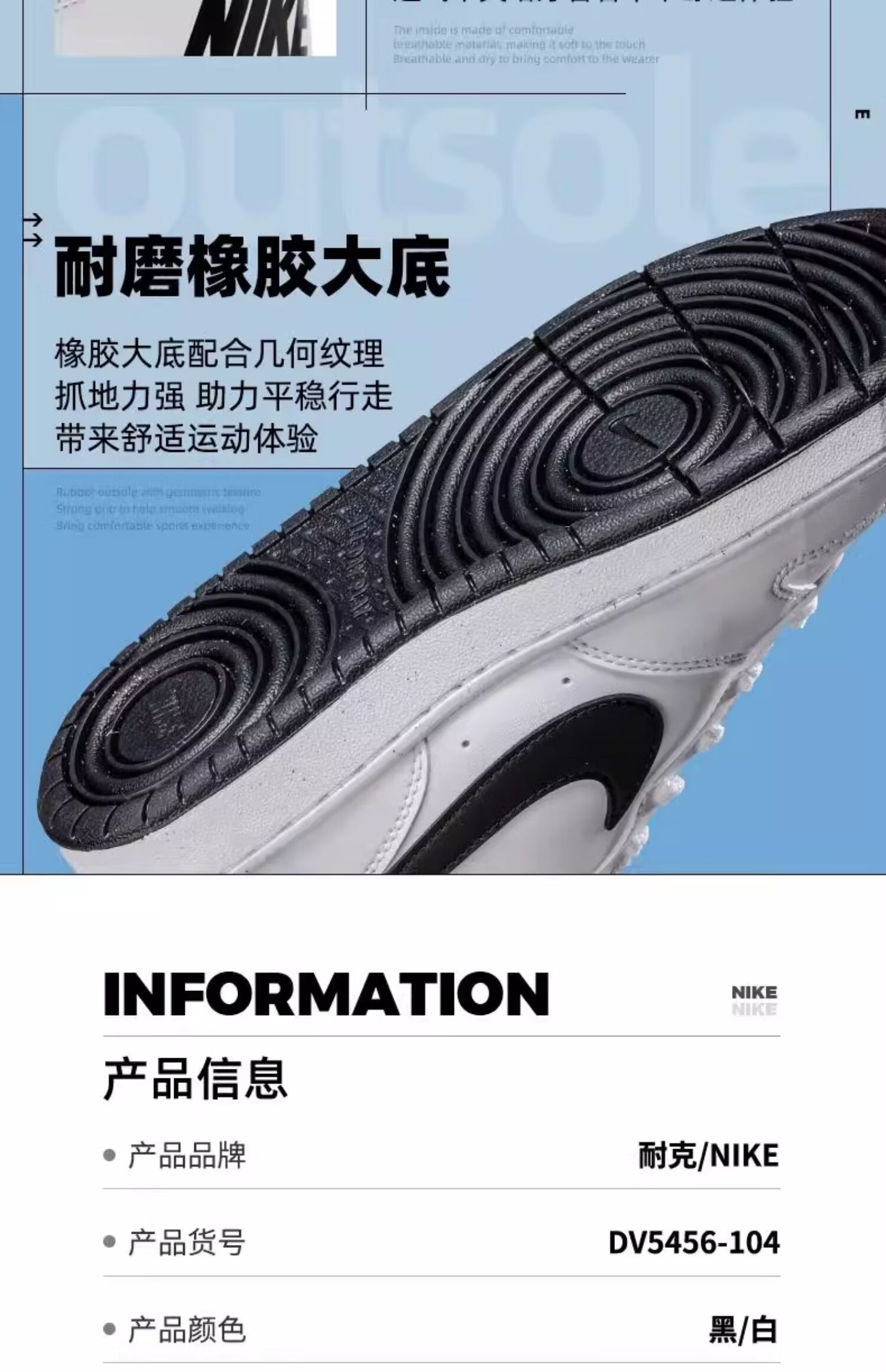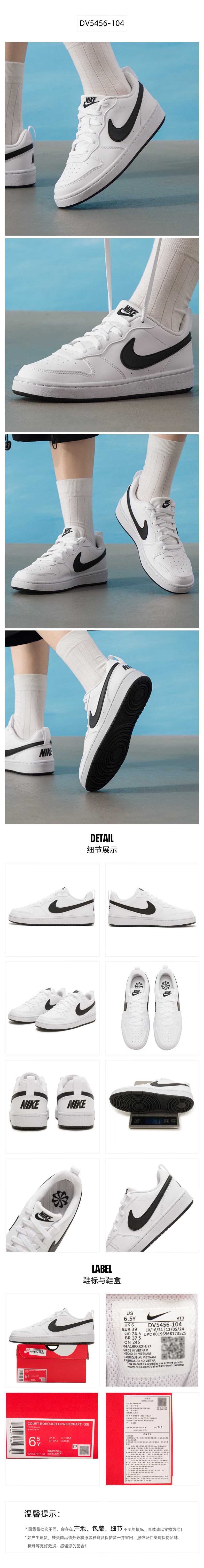 耐克(NIKE)官方女鞋 Nike2025冬季新款小白鞋运动休闲鞋轻便百搭潮流板鞋 DV5456-104 白黑-经典 37.5