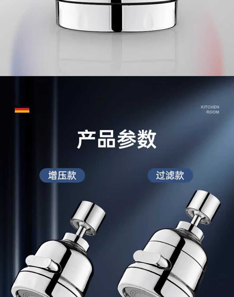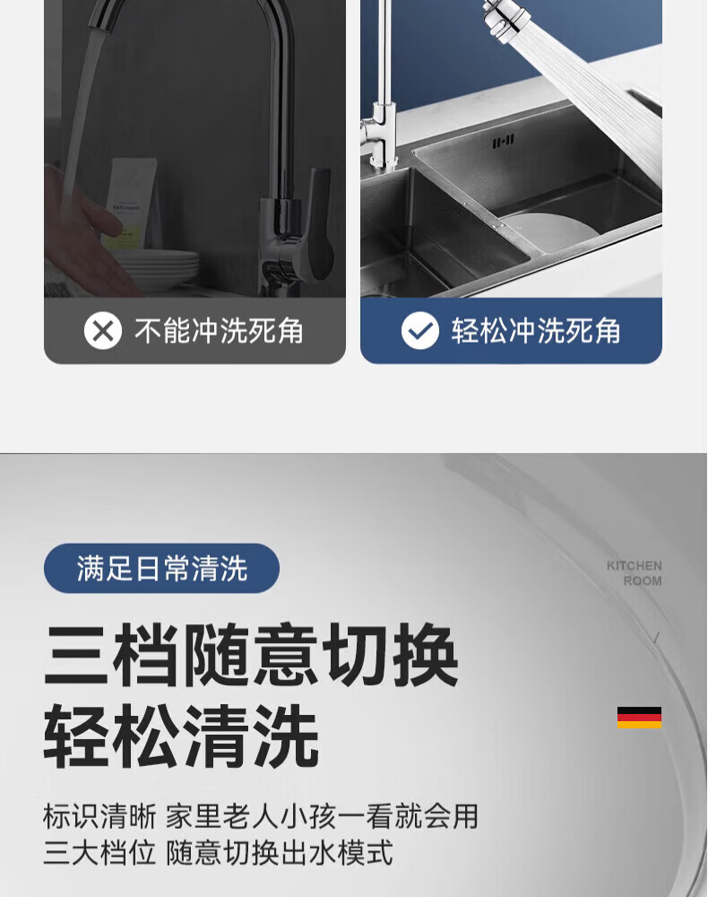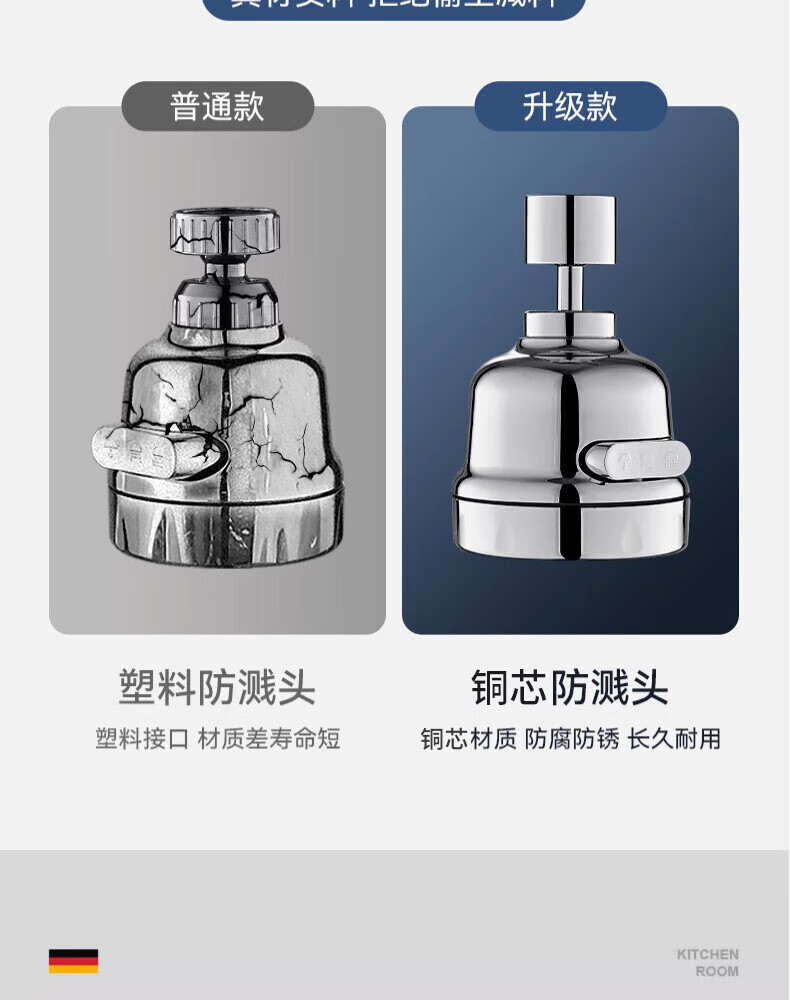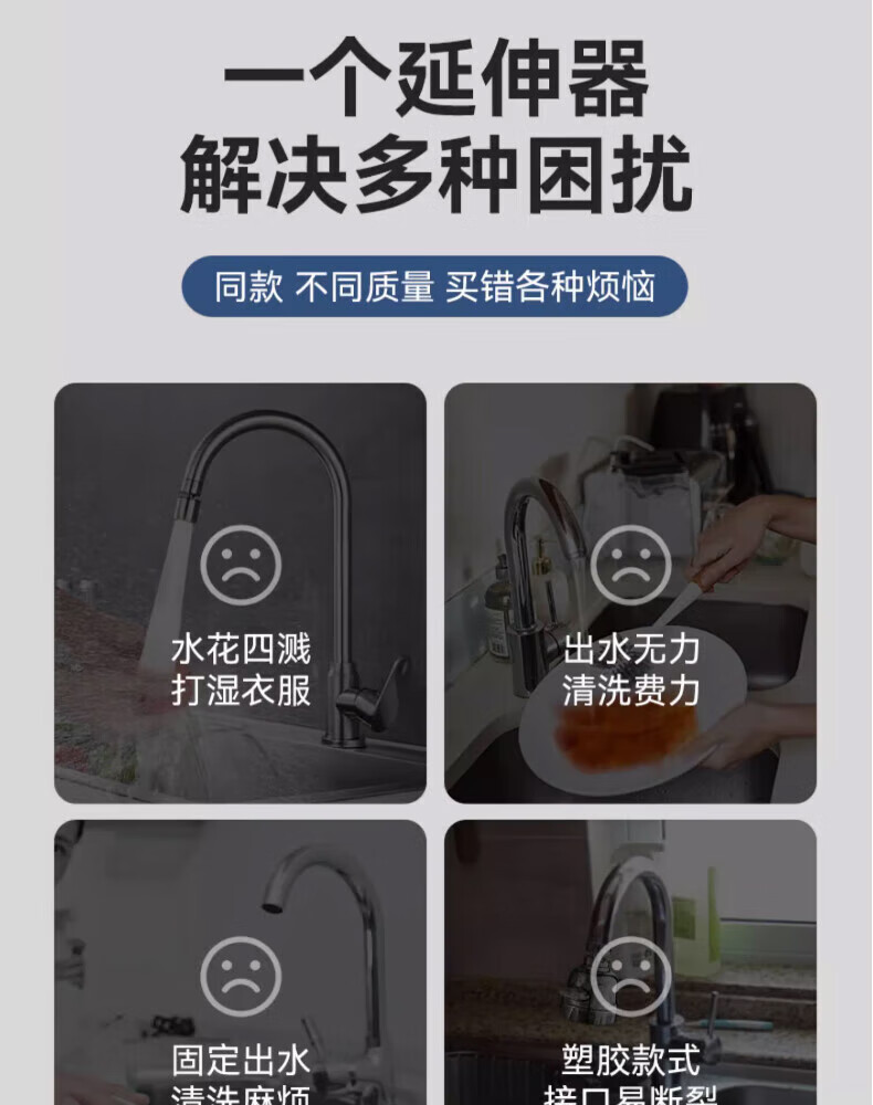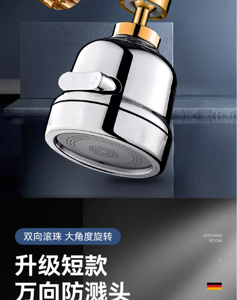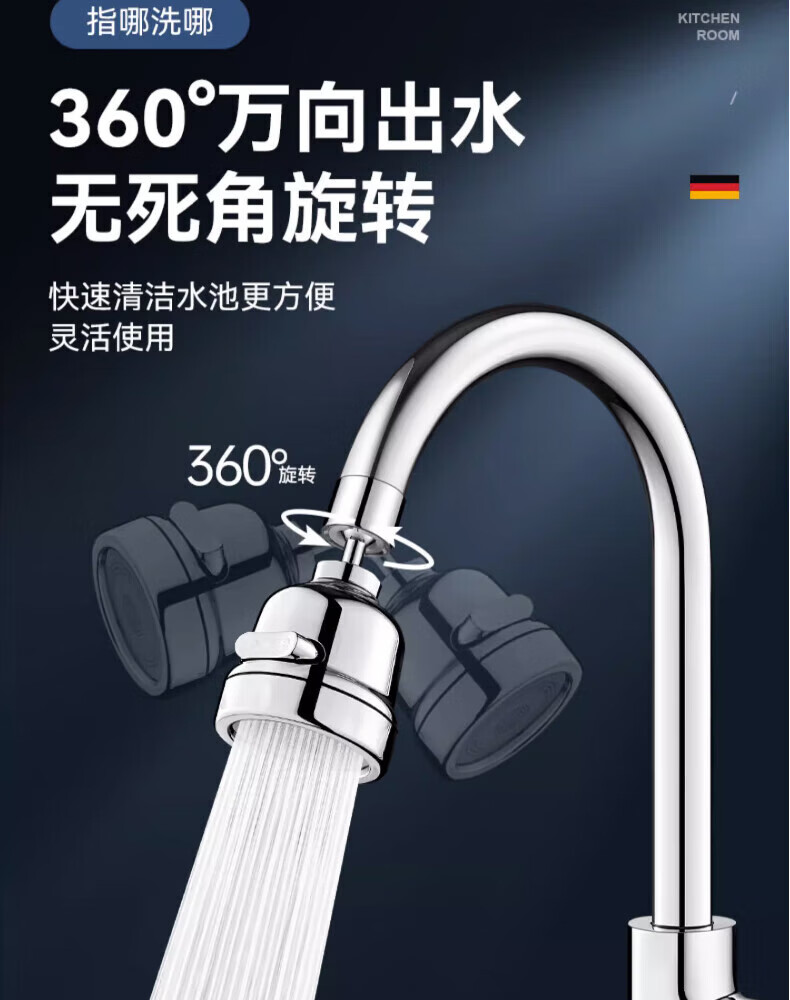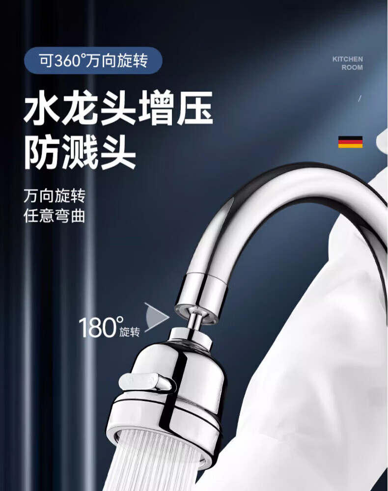 京严德国品质水龙头延伸器防溅水神器厨房洗手万向旋转龙头起泡器 防溅款【强力过滤】8CM旋转头 洗手盆三档增压防溅头