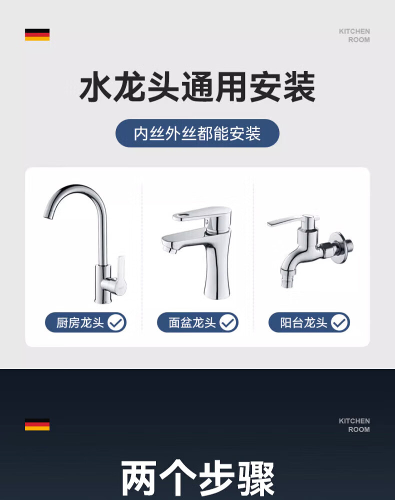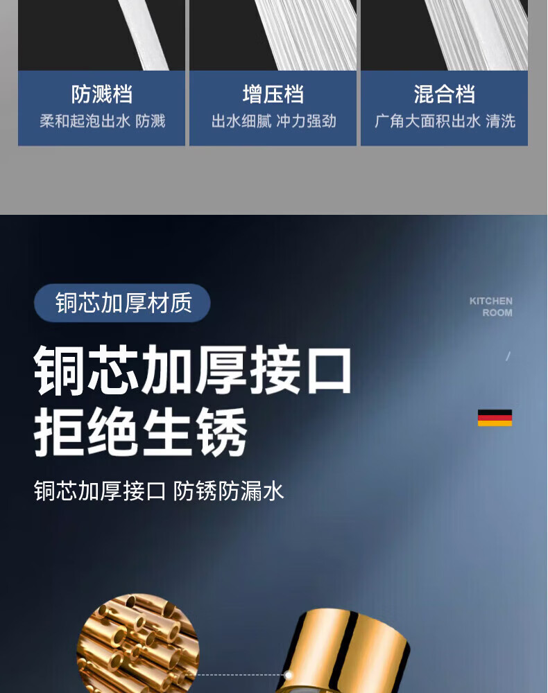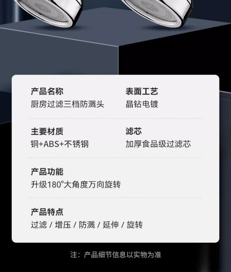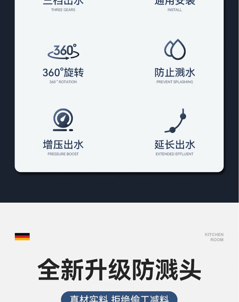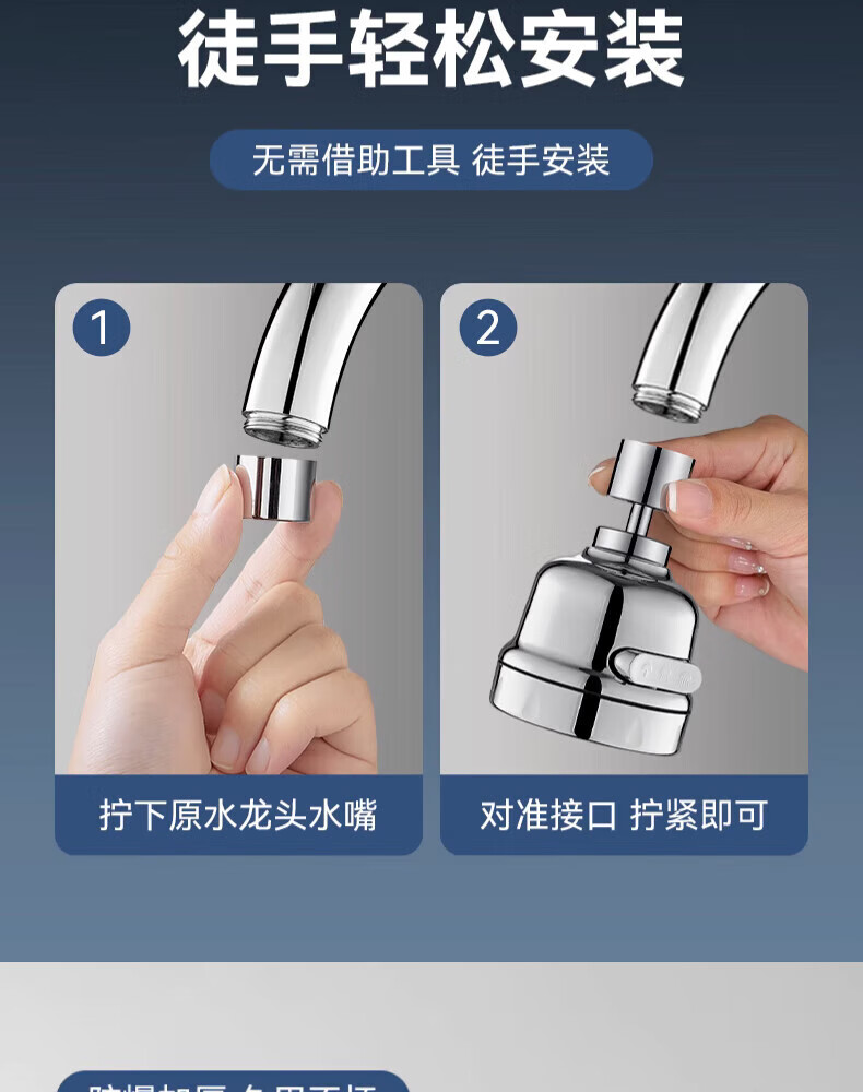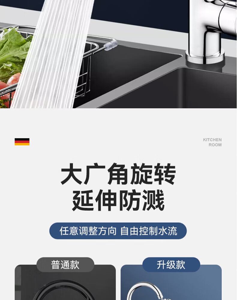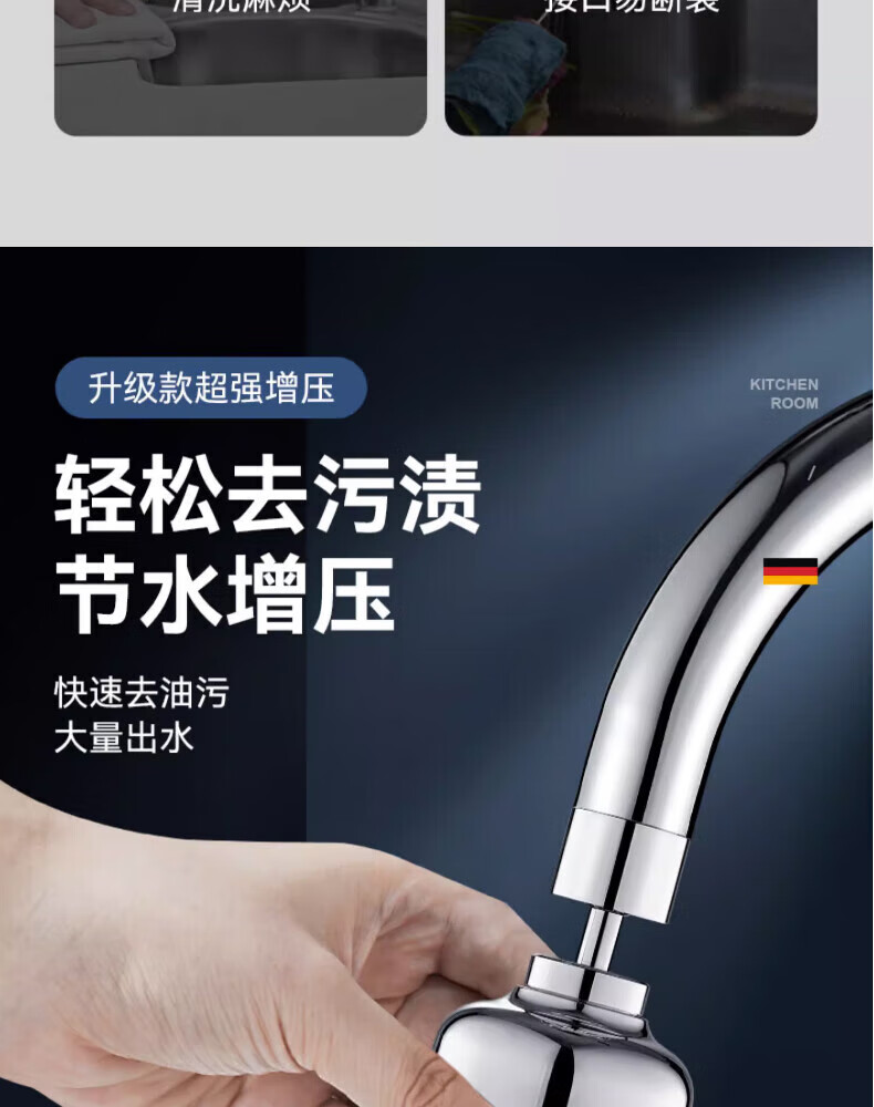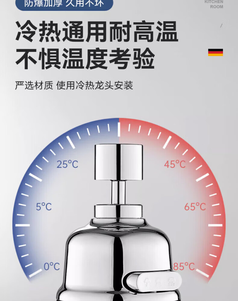 京严德国品质水龙头延伸器防溅水神器厨房洗手万向旋转龙头起泡器 防溅款【强力过滤】8CM旋转头 洗手盆三档增压防溅头