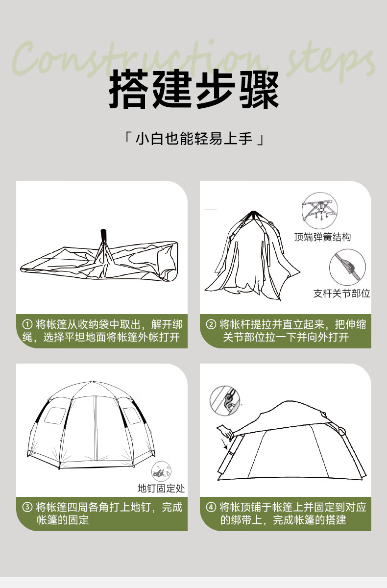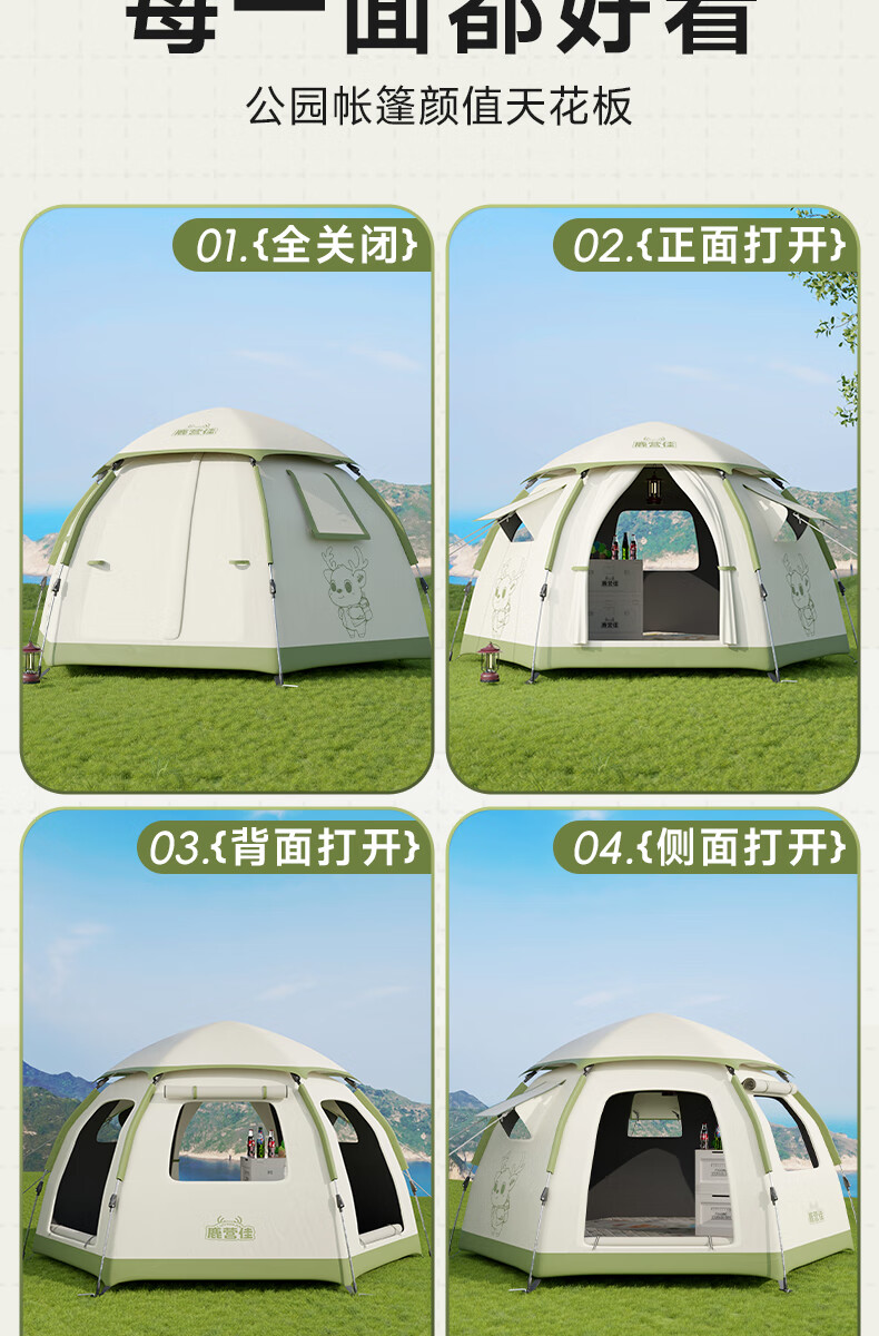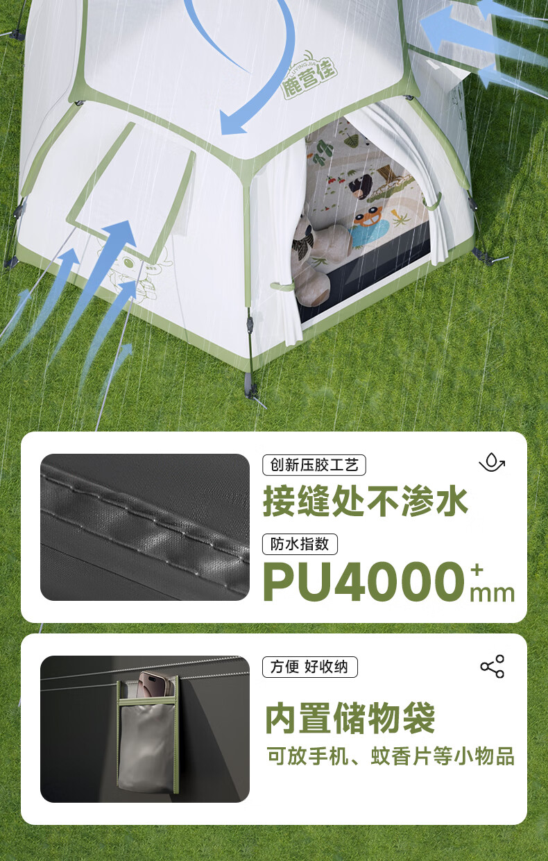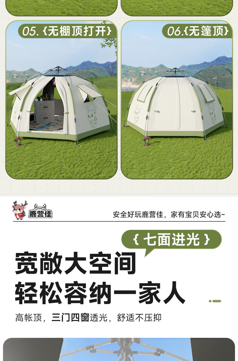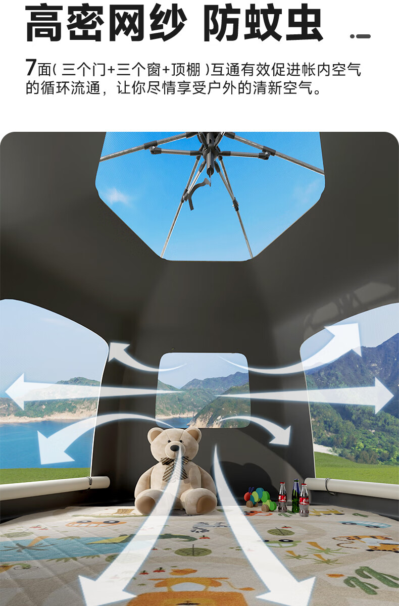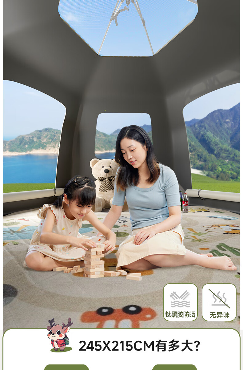 京东京造六角速开帐篷4.68㎡黑胶防晒户外露营公园帐篷加大空间4-5人