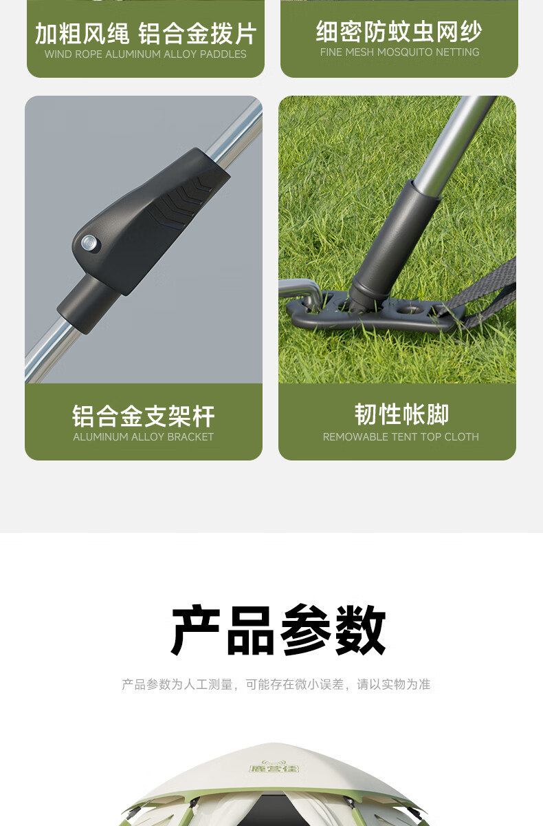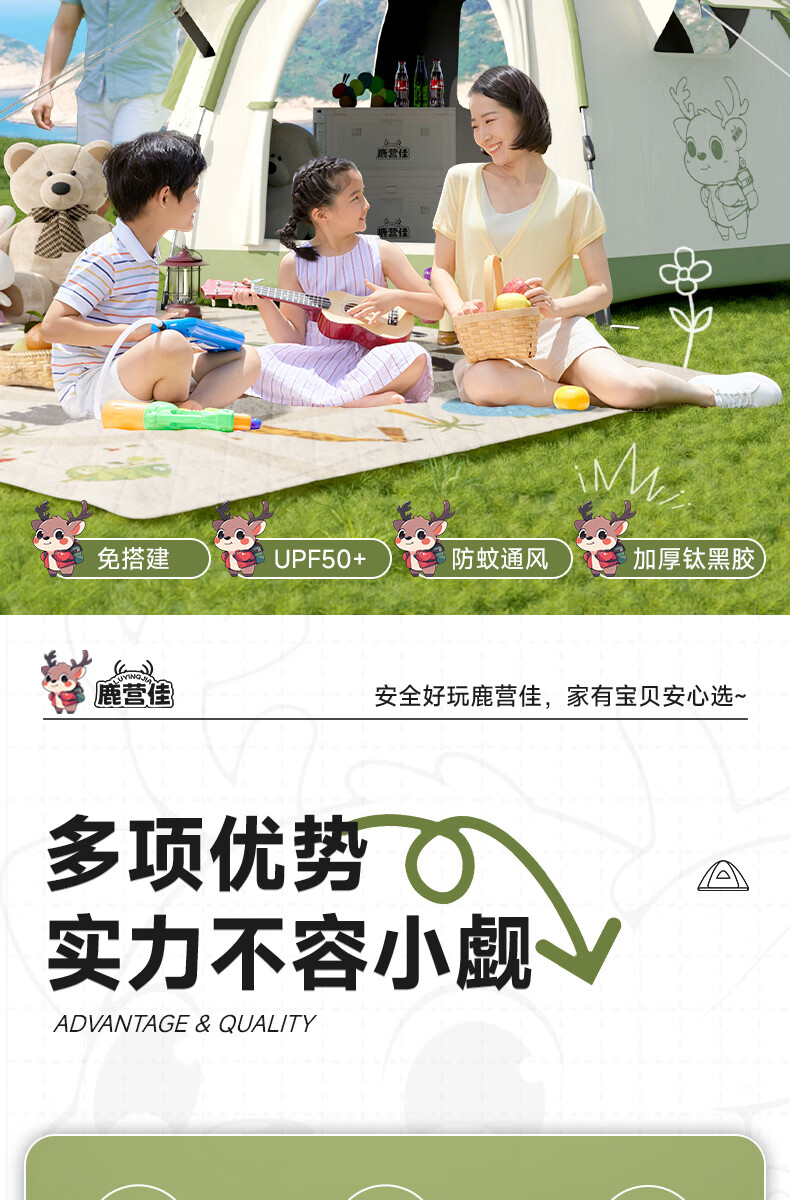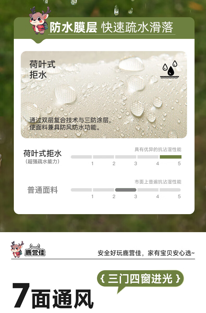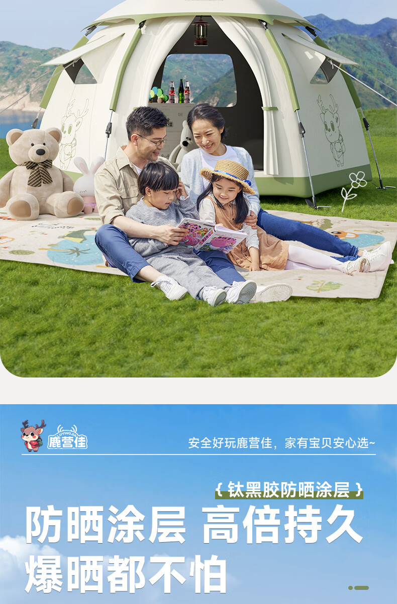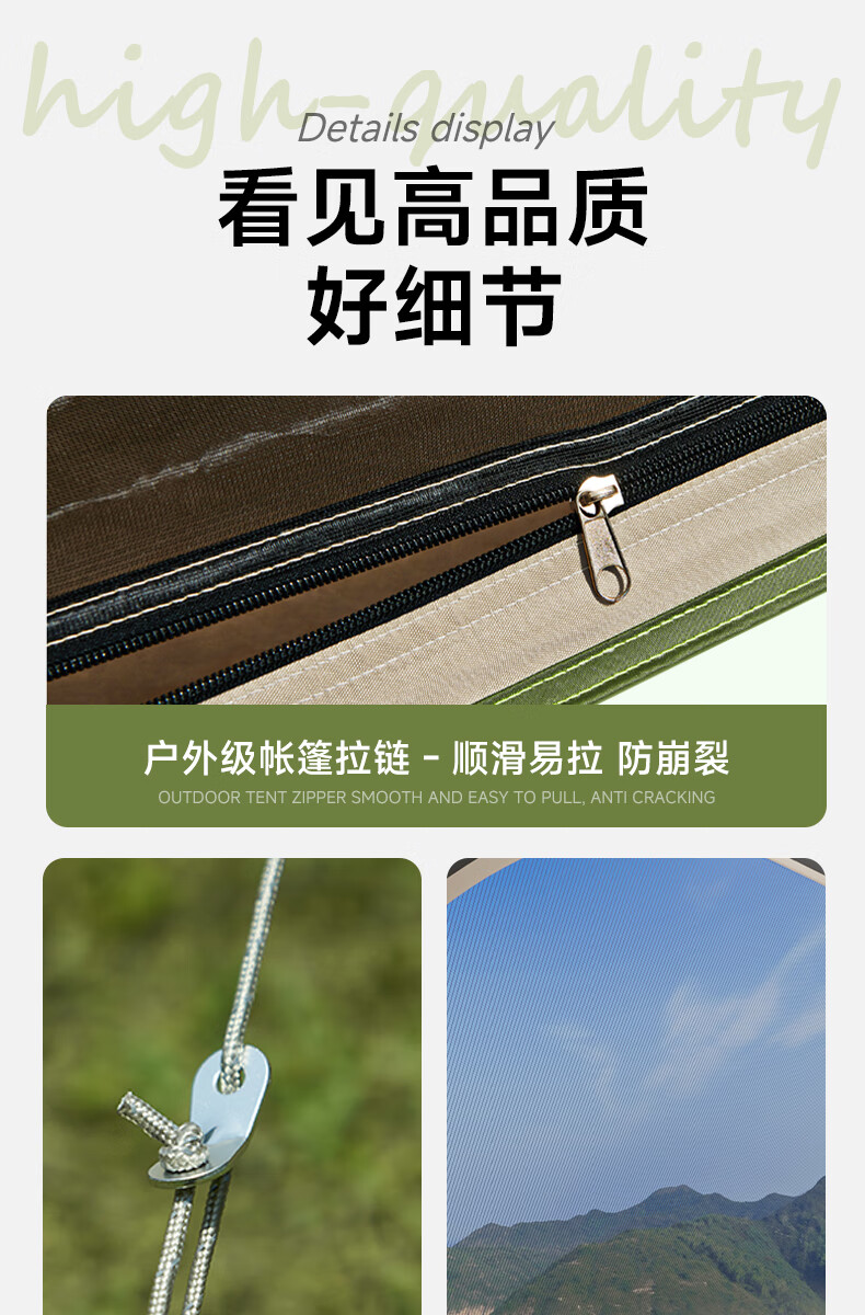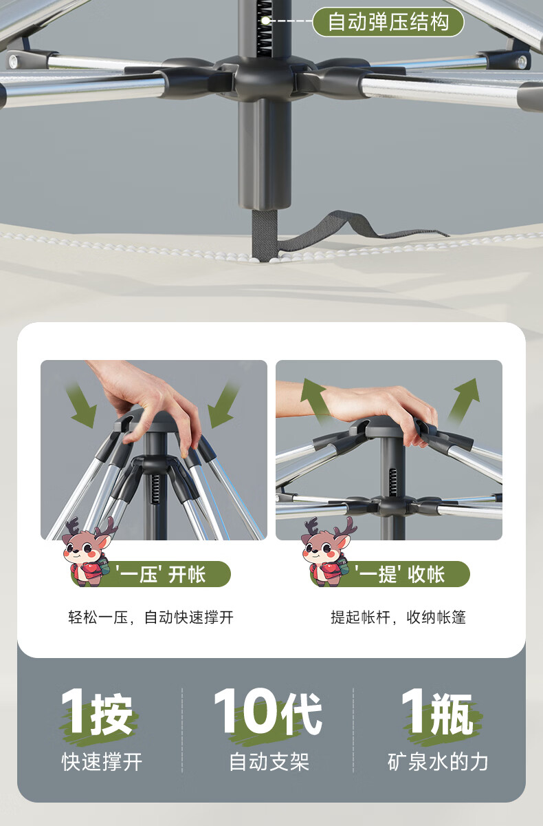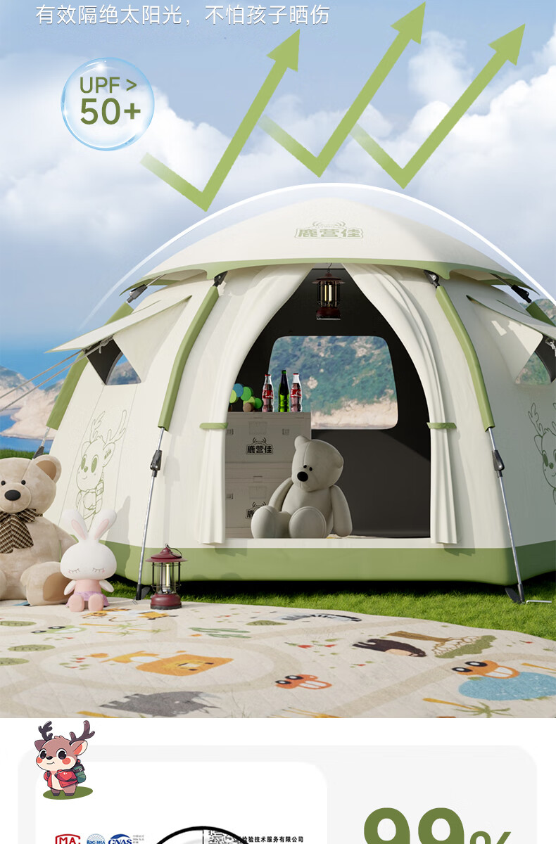 京东京造六角速开帐篷4.68㎡黑胶防晒户外露营公园帐篷加大空间4-5人