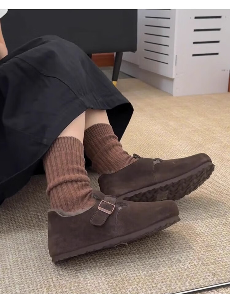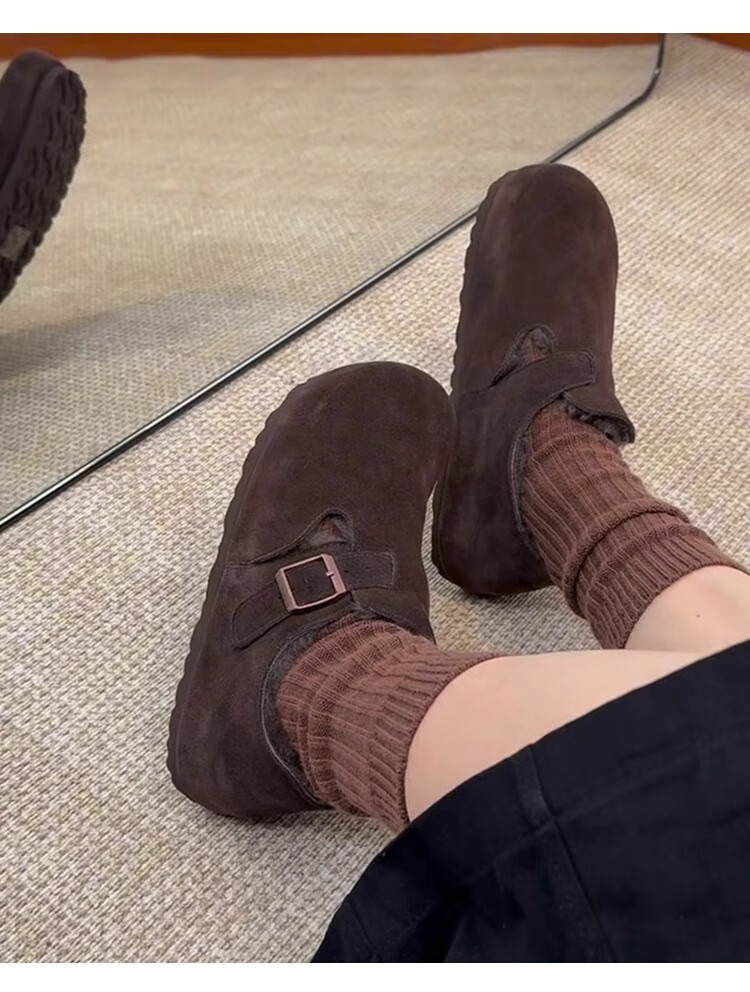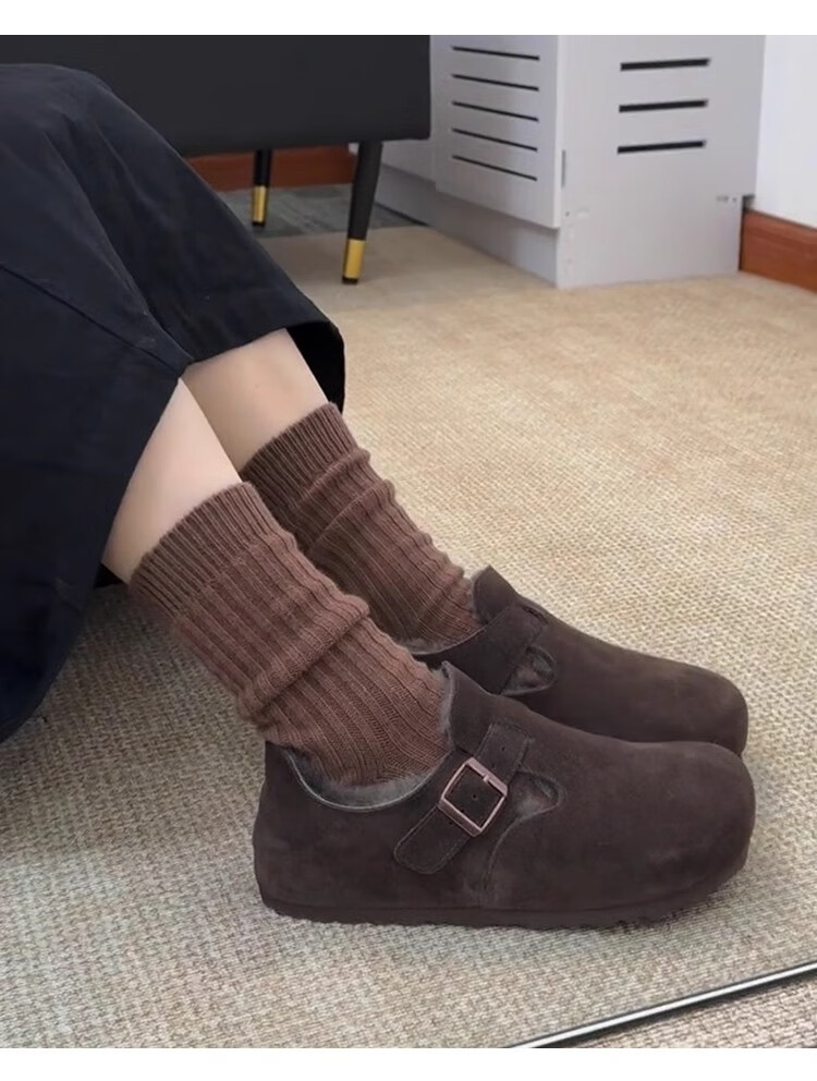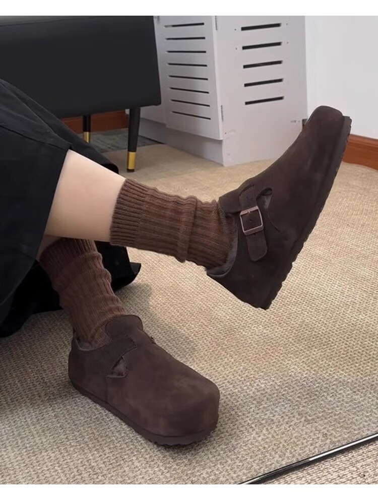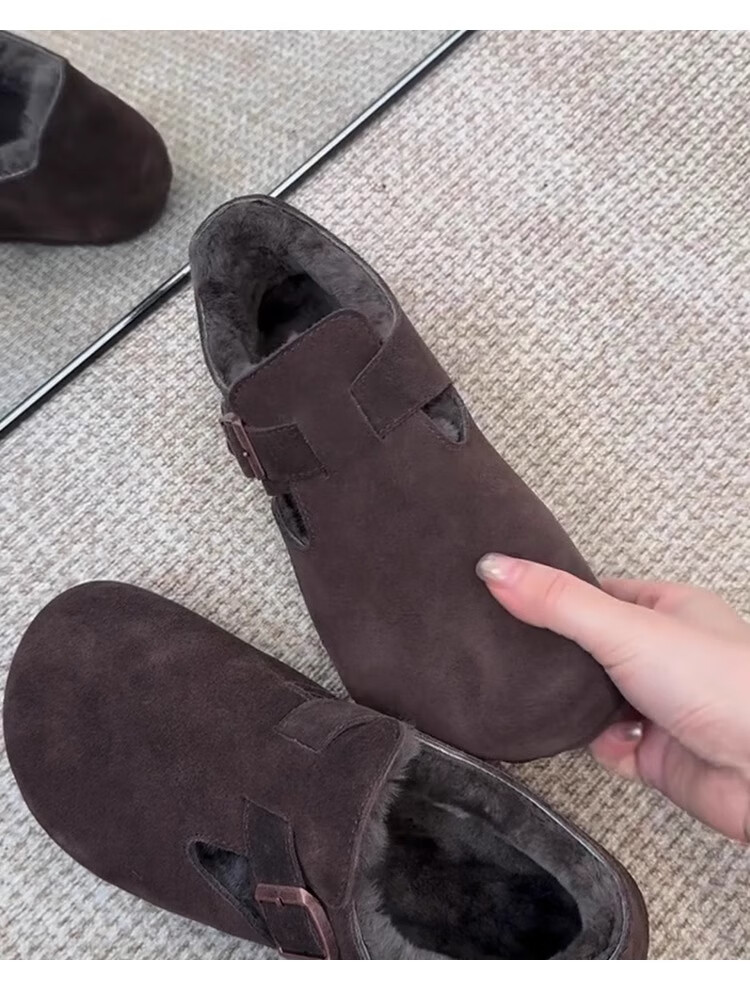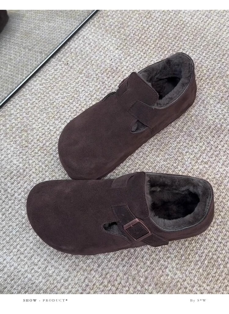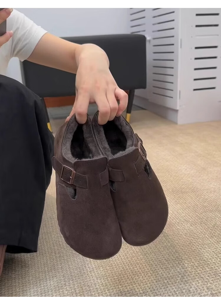 稻草人(MEXICAN)厚底内增高一脚蹬毛毛勃肯鞋女2026冬季新款复古加绒豆豆博肯棉鞋 咖色 35
