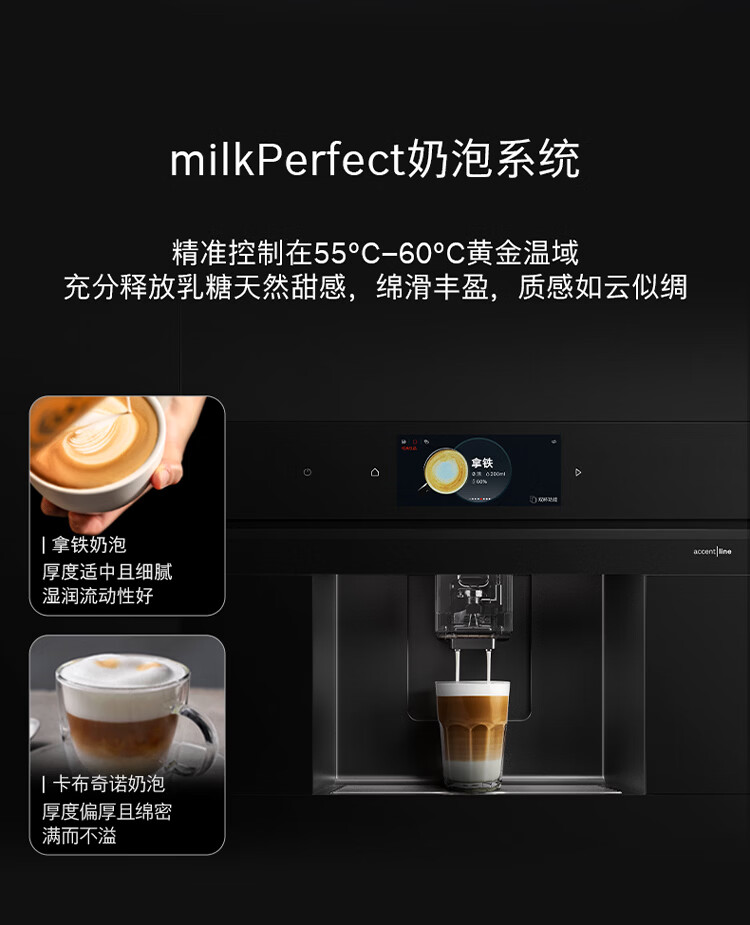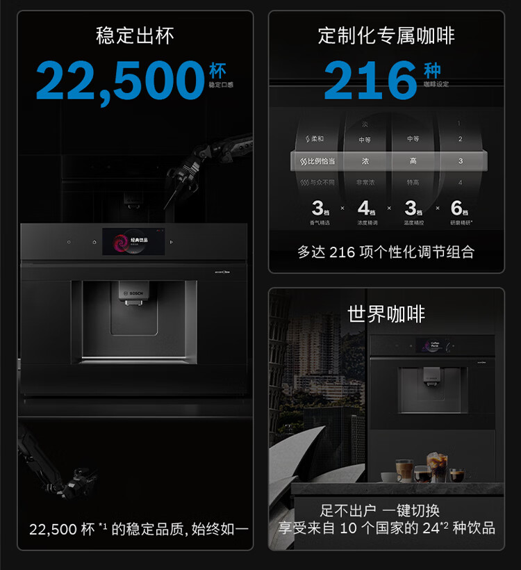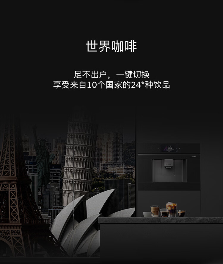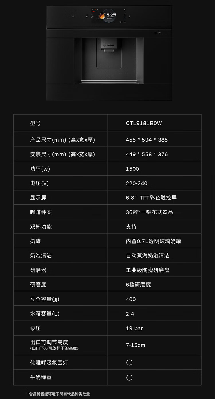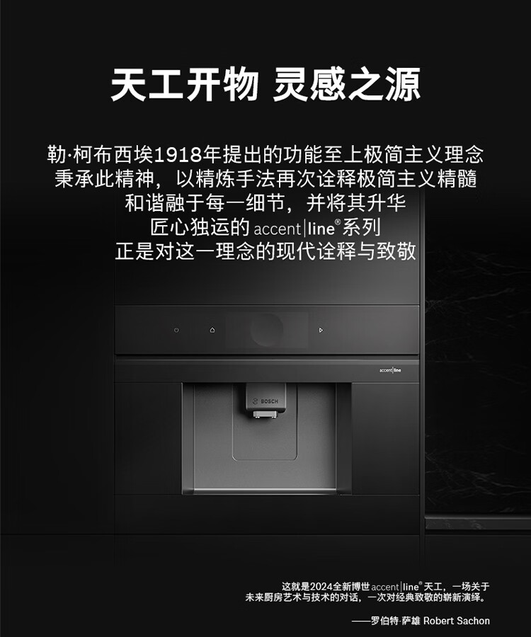 博世(BOSCH)【新年礼物】咖啡机家用全自动嵌入式进口19Bar低温慢萃冷萃36种饮品世界咖啡香气智选一键互联 accent|line天工系列CTL9181B0W