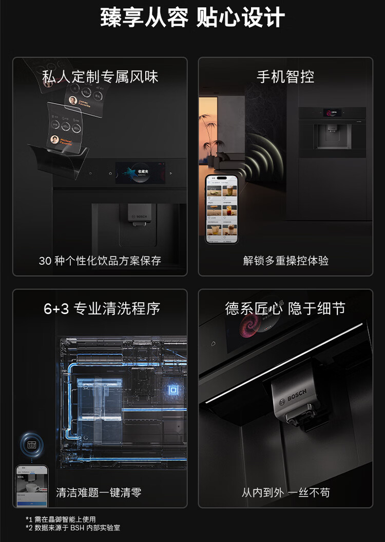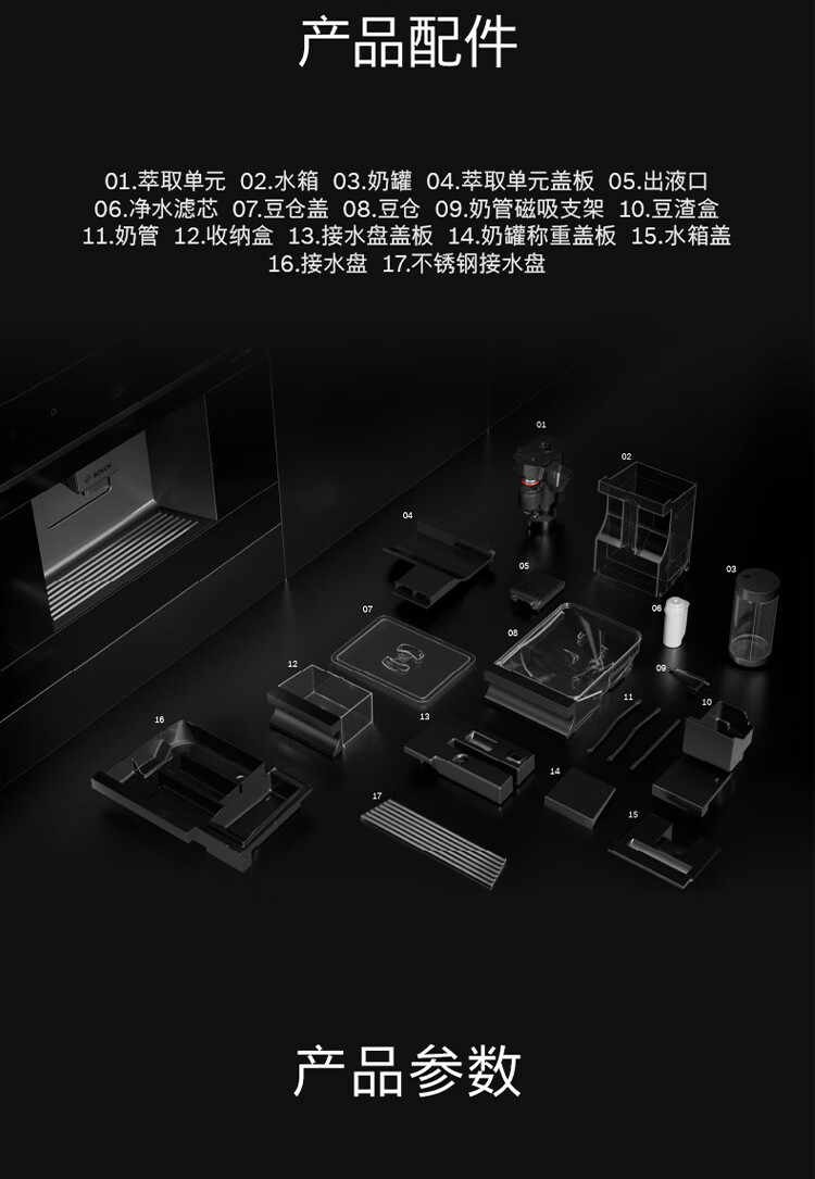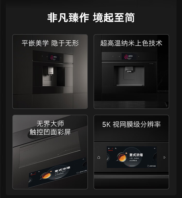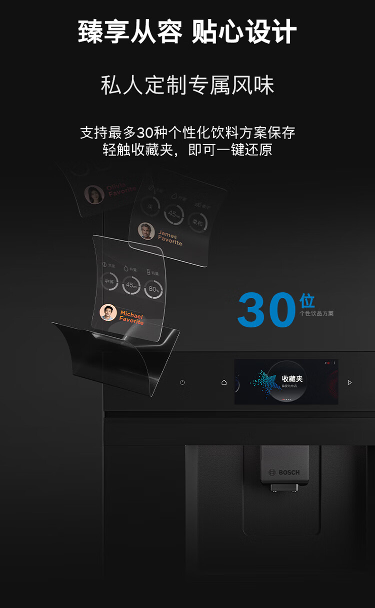 博世(BOSCH)【新年礼物】咖啡机家用全自动嵌入式进口19Bar低温慢萃冷萃36种饮品世界咖啡香气智选一键互联 accent|line天工系列CTL9181B0W