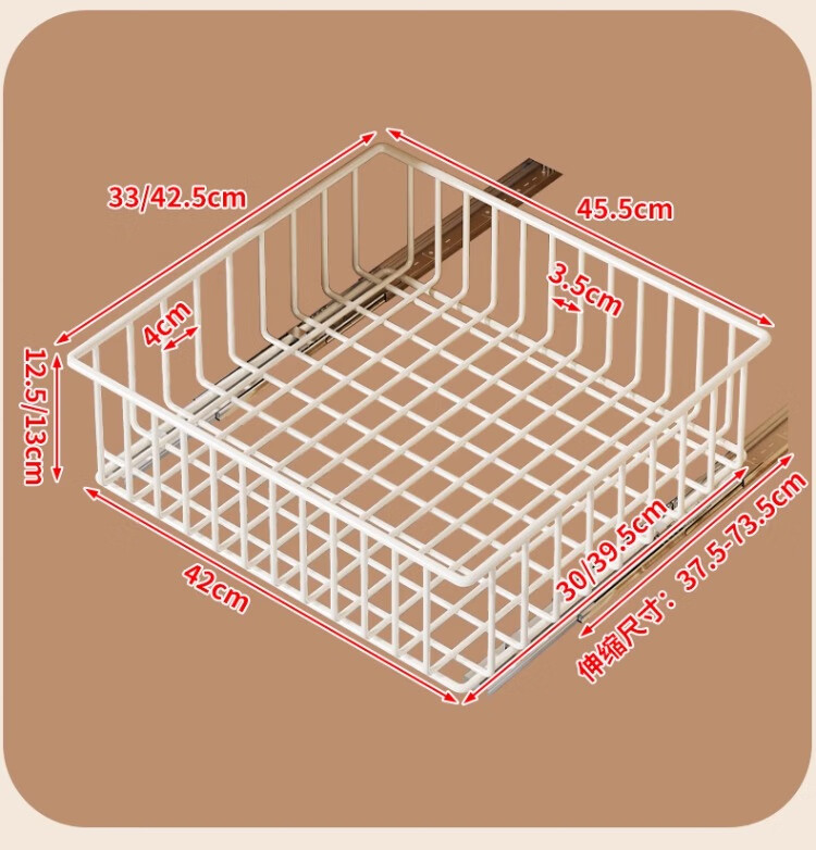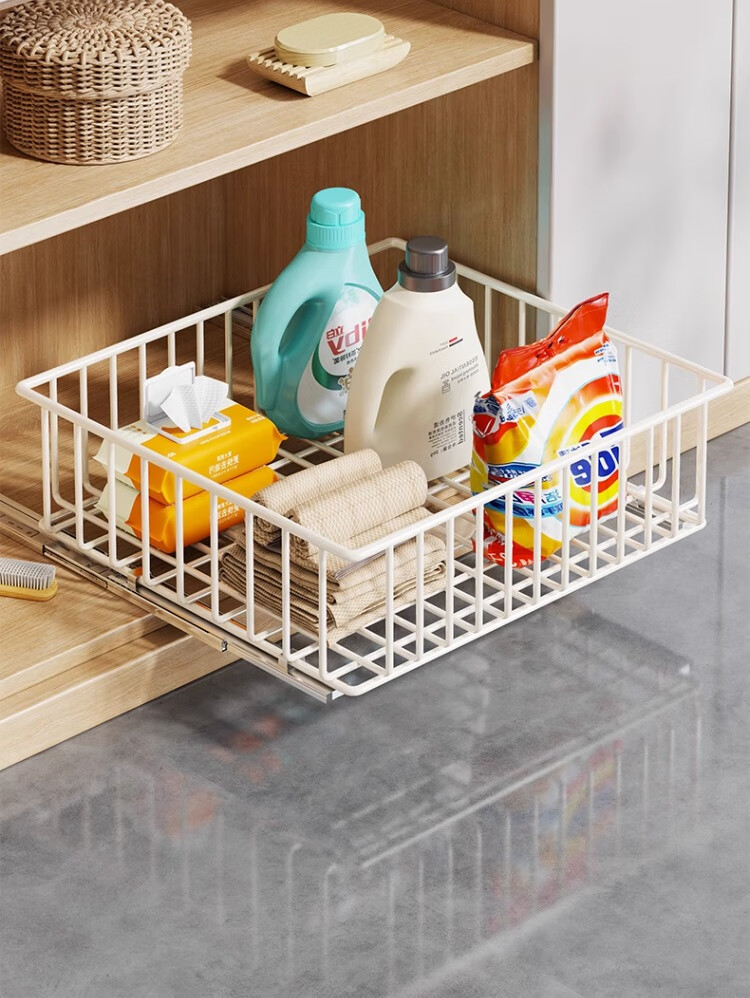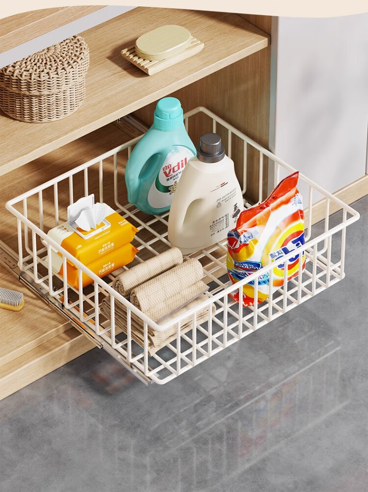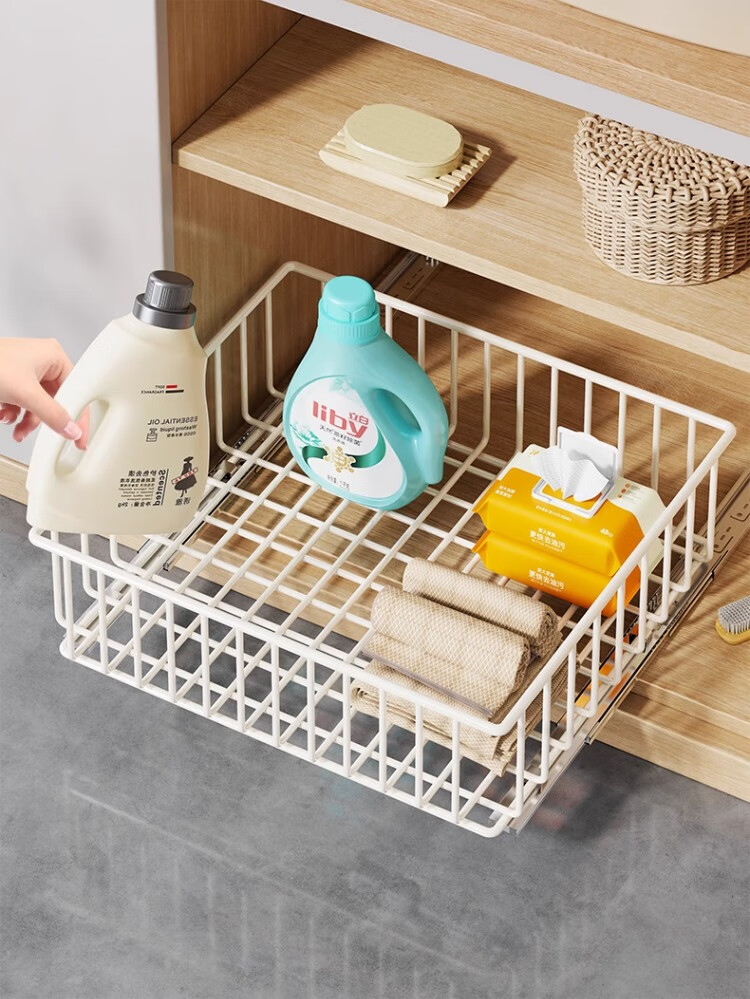 尔思家厨房多层收纳架落地卫生间洗手台下置物架多功能伸缩橱柜内置架子 白色大号【底部滑轨】