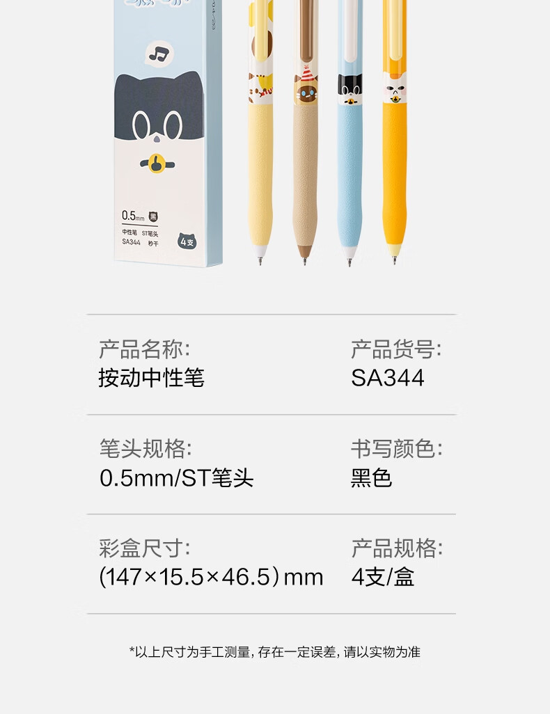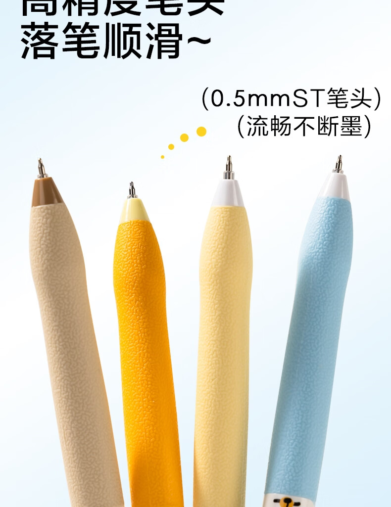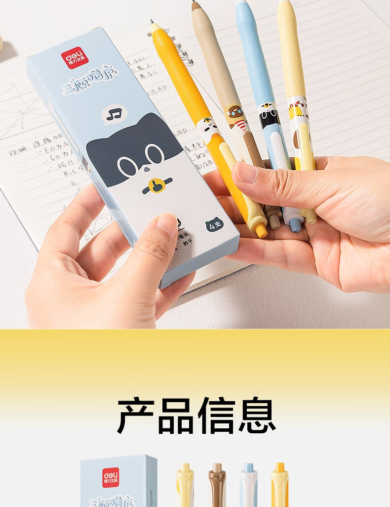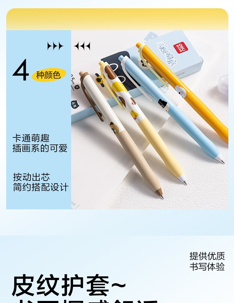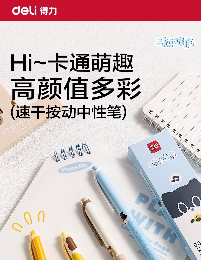 得力(deli)三顾喵庐秒干按动中性笔 0.5mmST笔头学生刷题笔考试笔 黑色4支/盒SA344