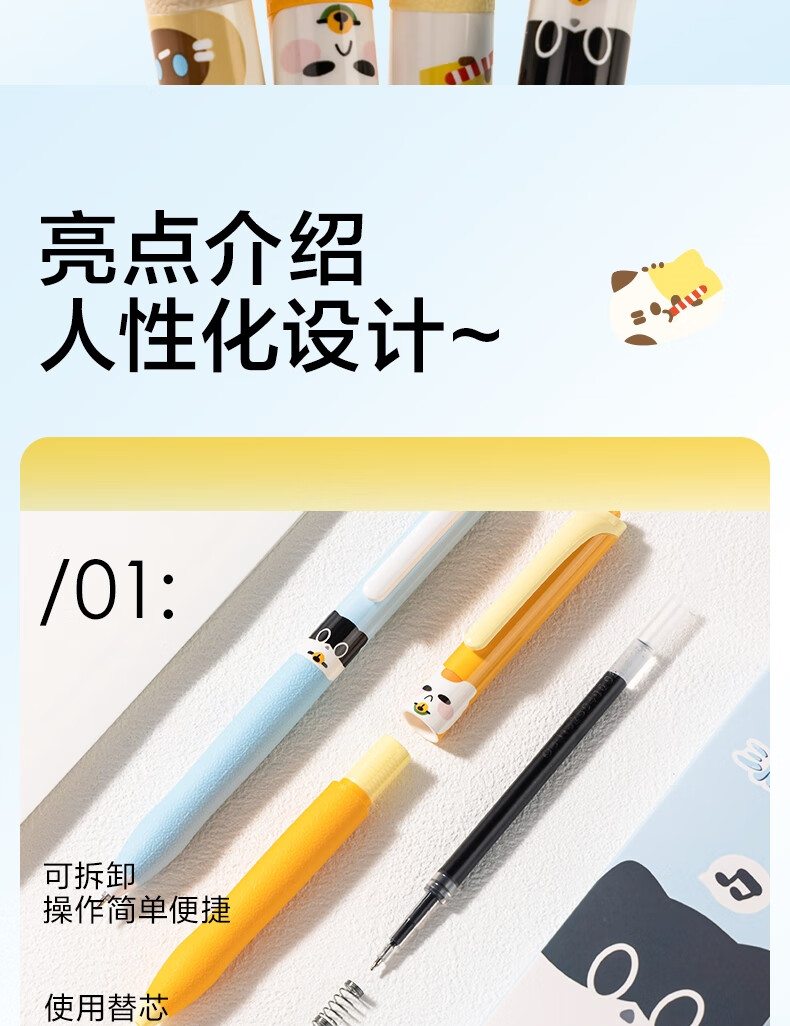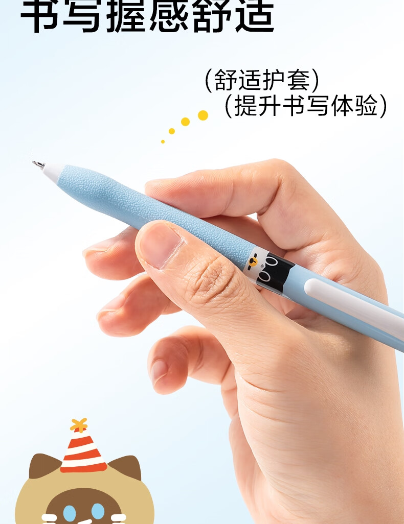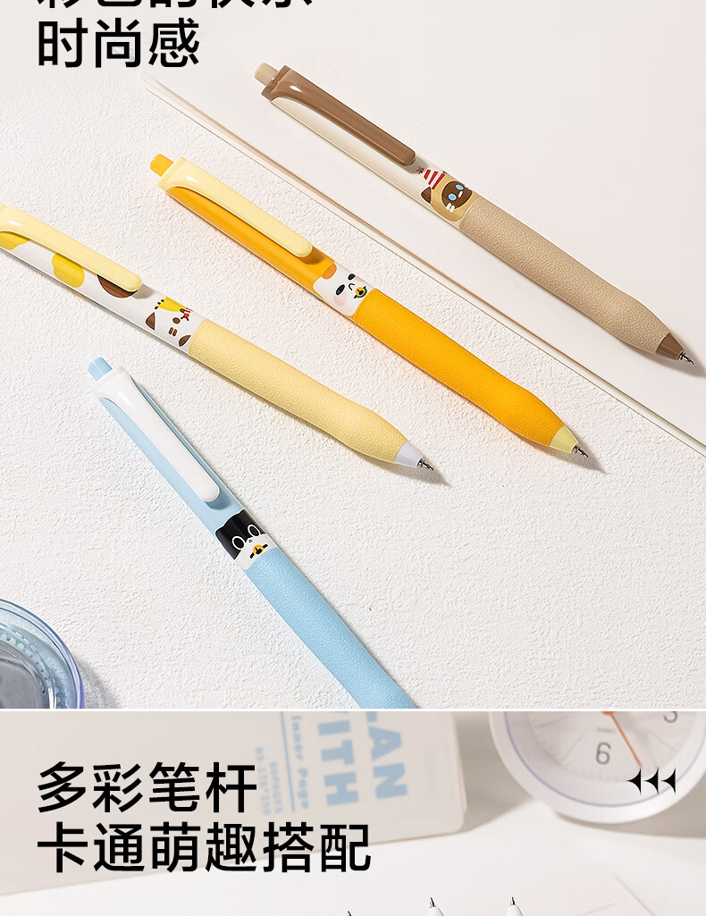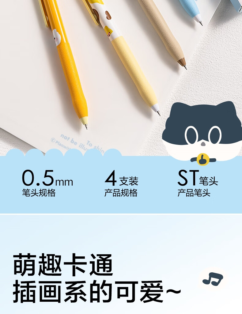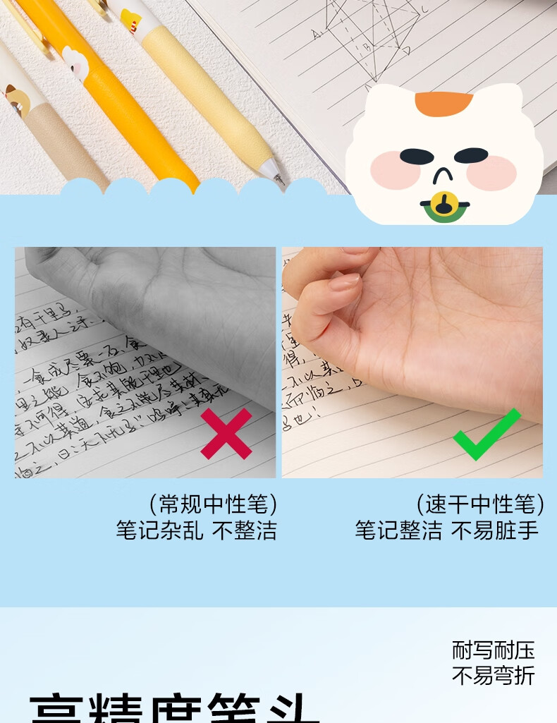 得力(deli)三顾喵庐秒干按动中性笔 0.5mmST笔头学生刷题笔考试笔 黑色4支/盒SA344