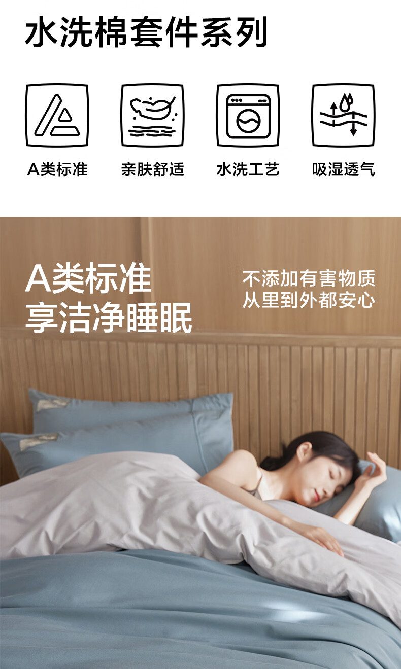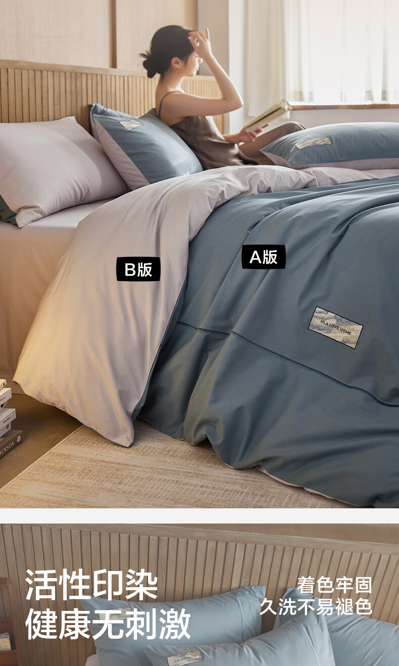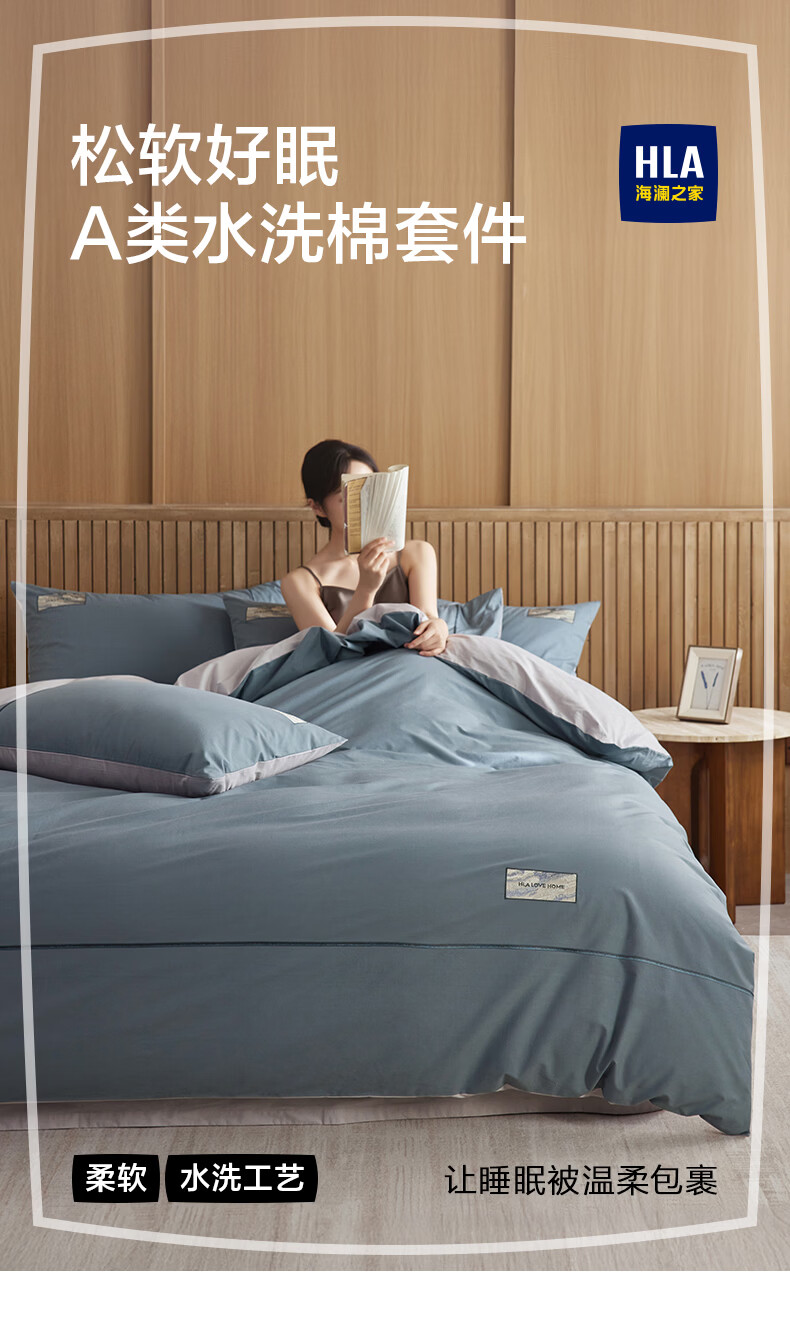 海澜之家(HLA)A类全棉水洗棉床上四件套纯棉高级轻奢2026新床笠床单被罩三件套 宾利蓝+琥珀银【全棉水洗棉 A类裸睡级】 三件套被套150*200 床单款 180*230
