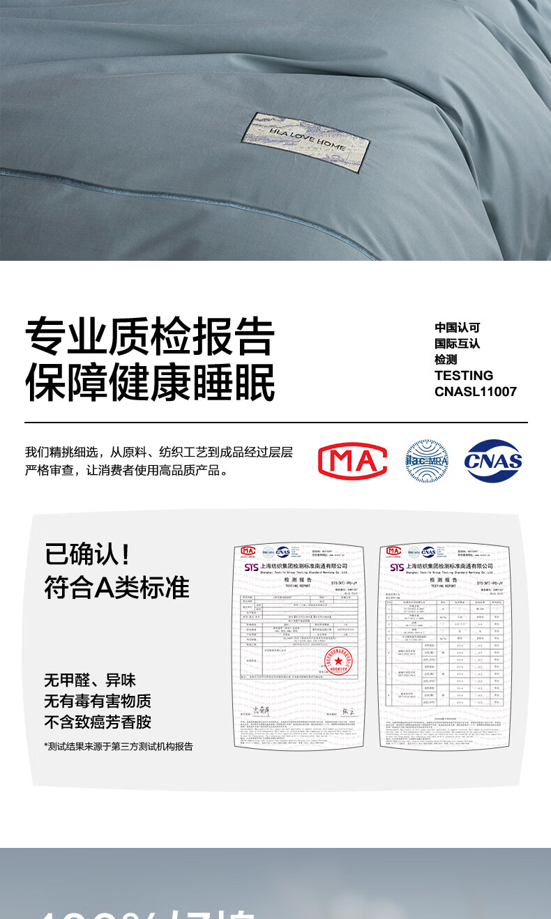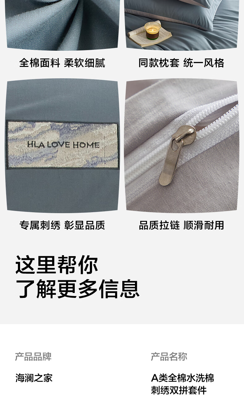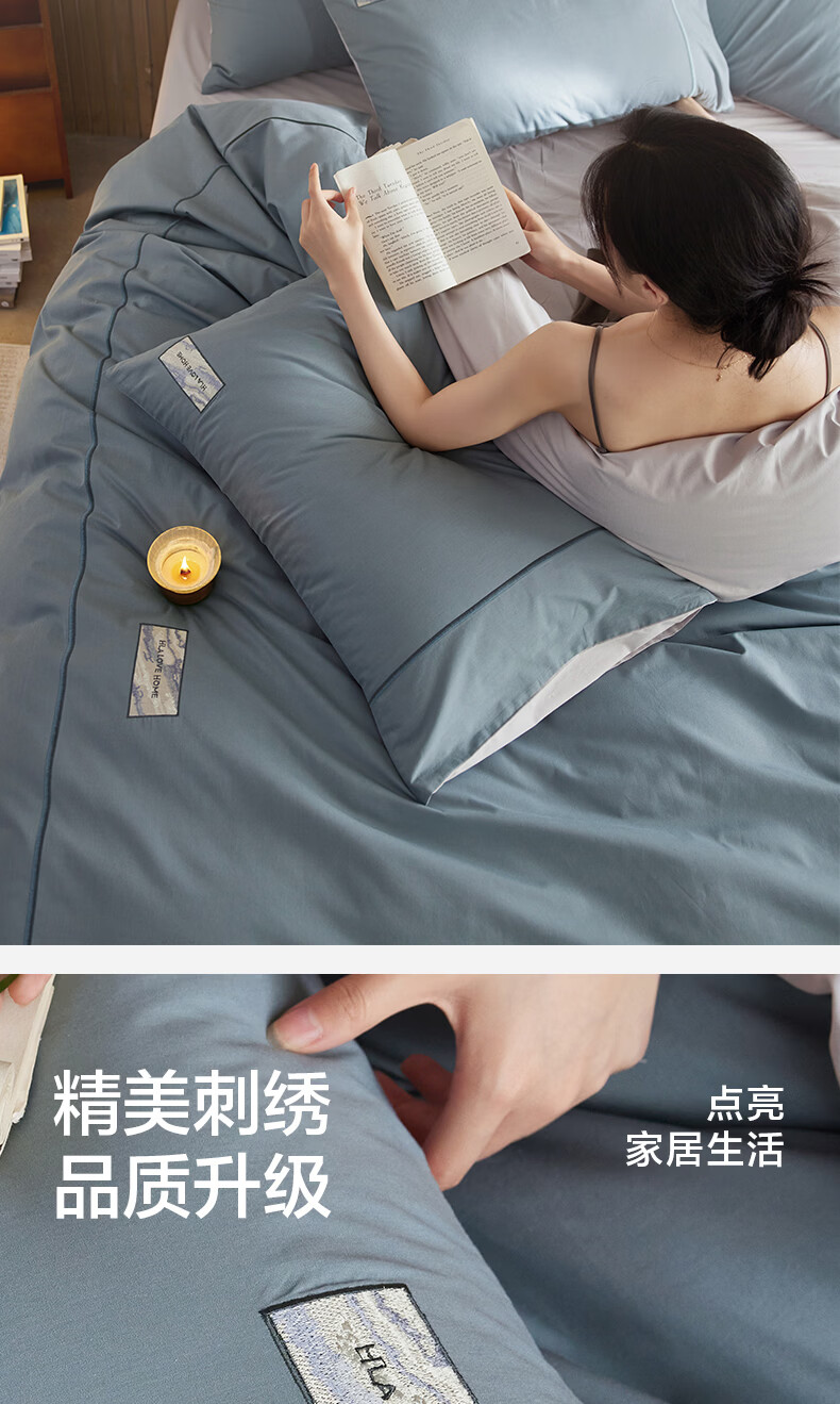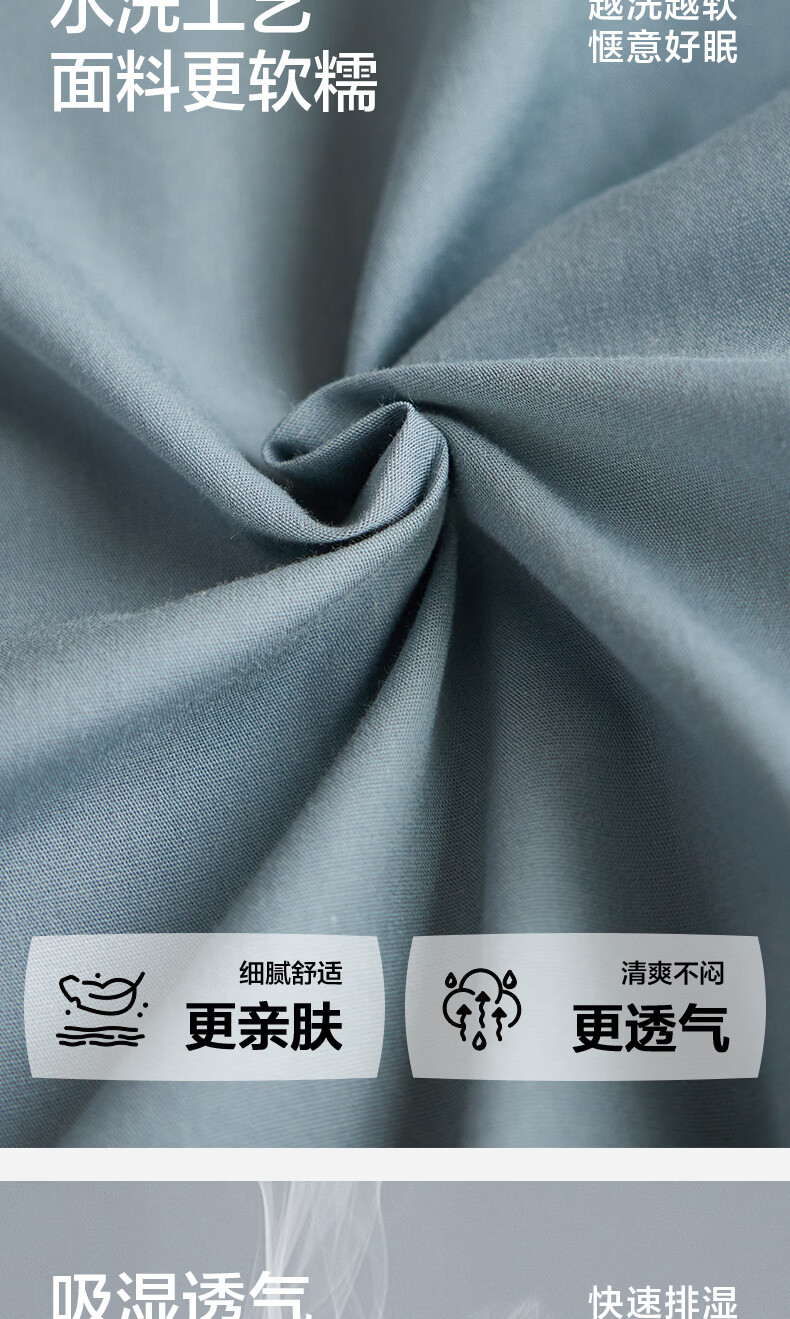 海澜之家(HLA)A类全棉水洗棉床上四件套纯棉高级轻奢2026新床笠床单被罩三件套 宾利蓝+琥珀银【全棉水洗棉 A类裸睡级】 三件套被套150*200 床单款 180*230
