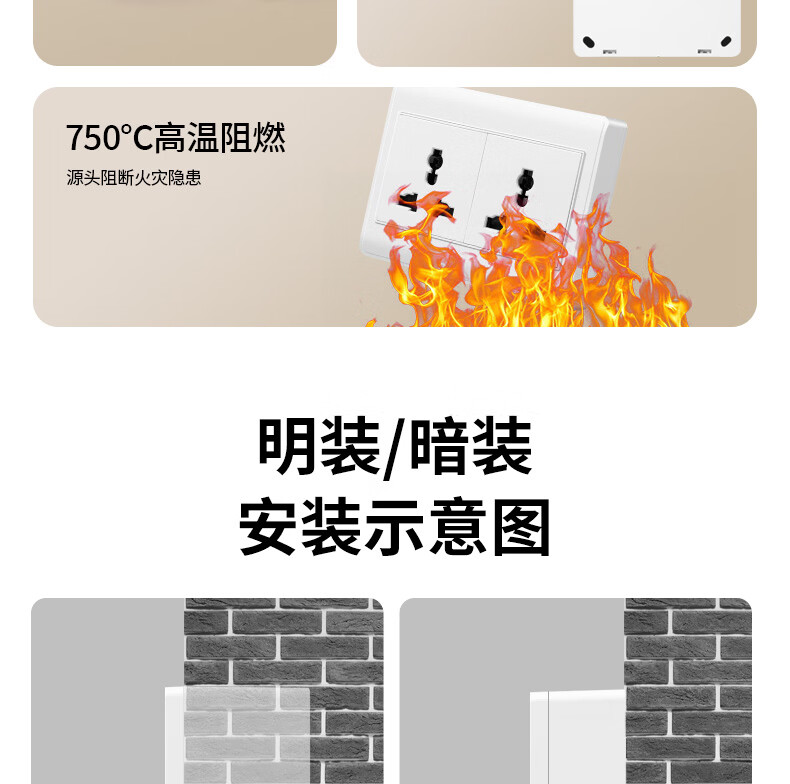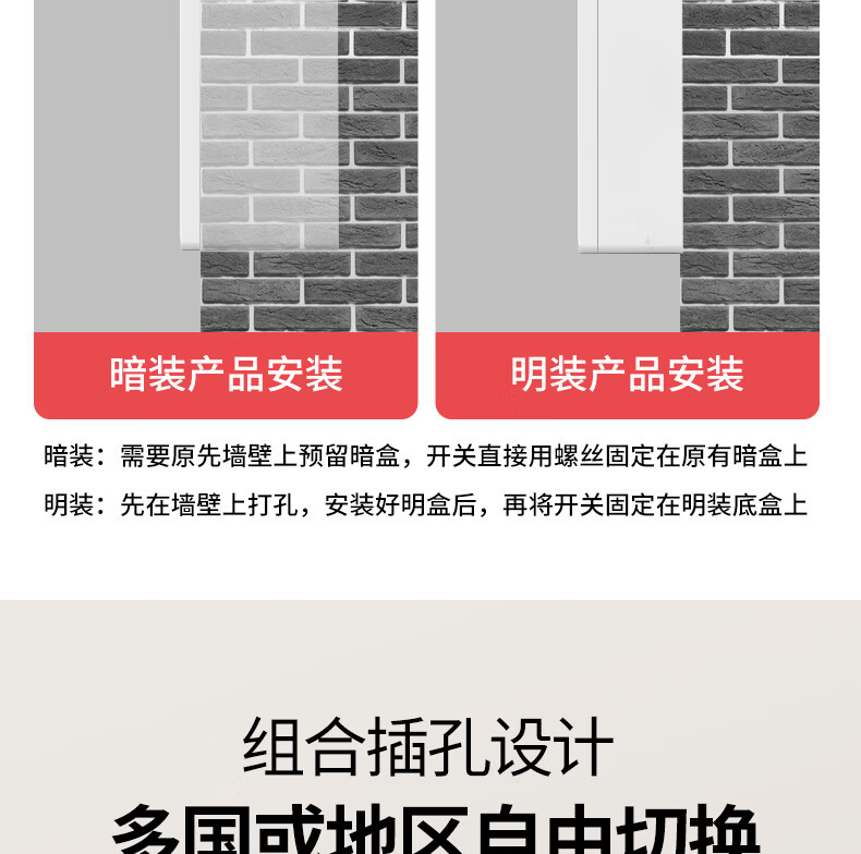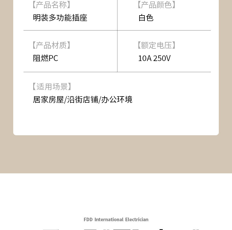 国际电工86型明装多功能开关插座墙壁明线盒五孔面板家用电源卧室三孔插座 明装五孔【多功能】