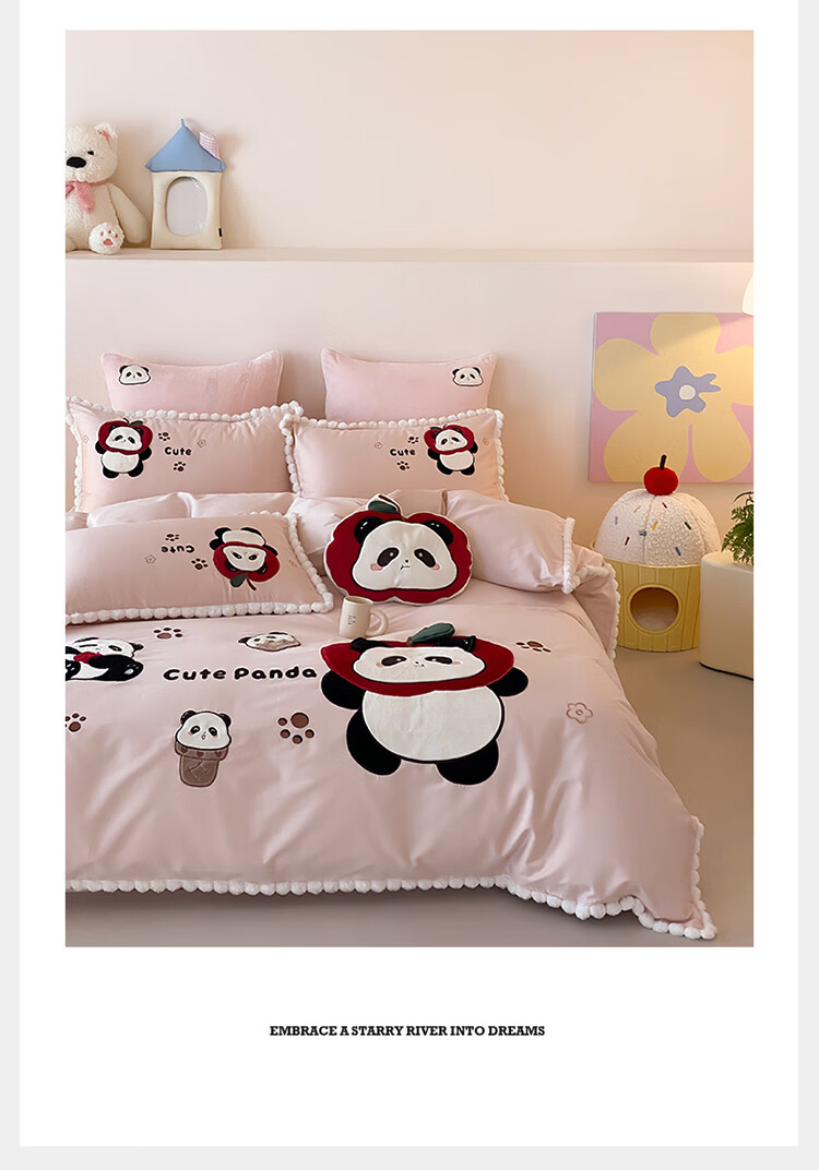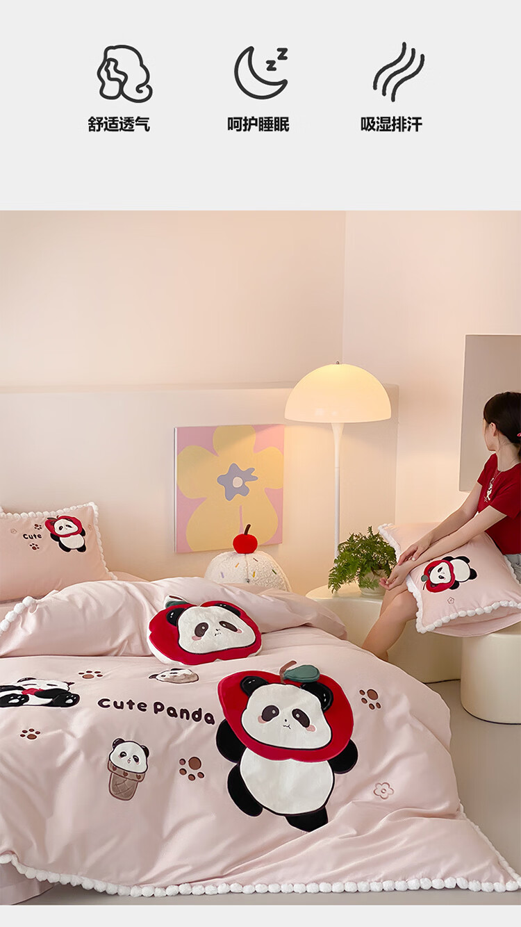 ROLAND LIVE轻奢风全棉卡通四件套磨毛秋冬季保暖床上用品被套床单儿童三件套 XR 全棉磨毛套件-软萌奶球 1.2米床 床单款 【被套150*200cm】