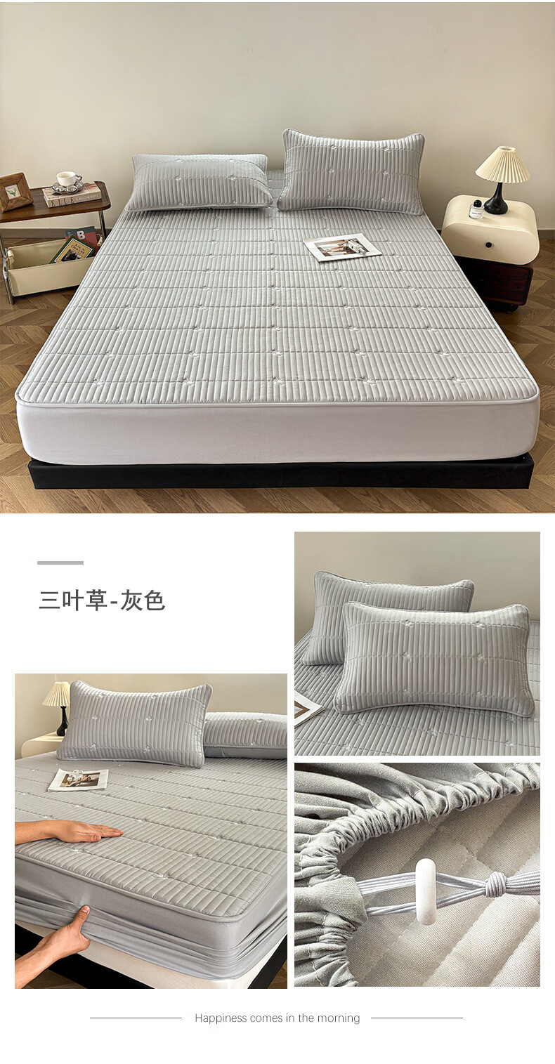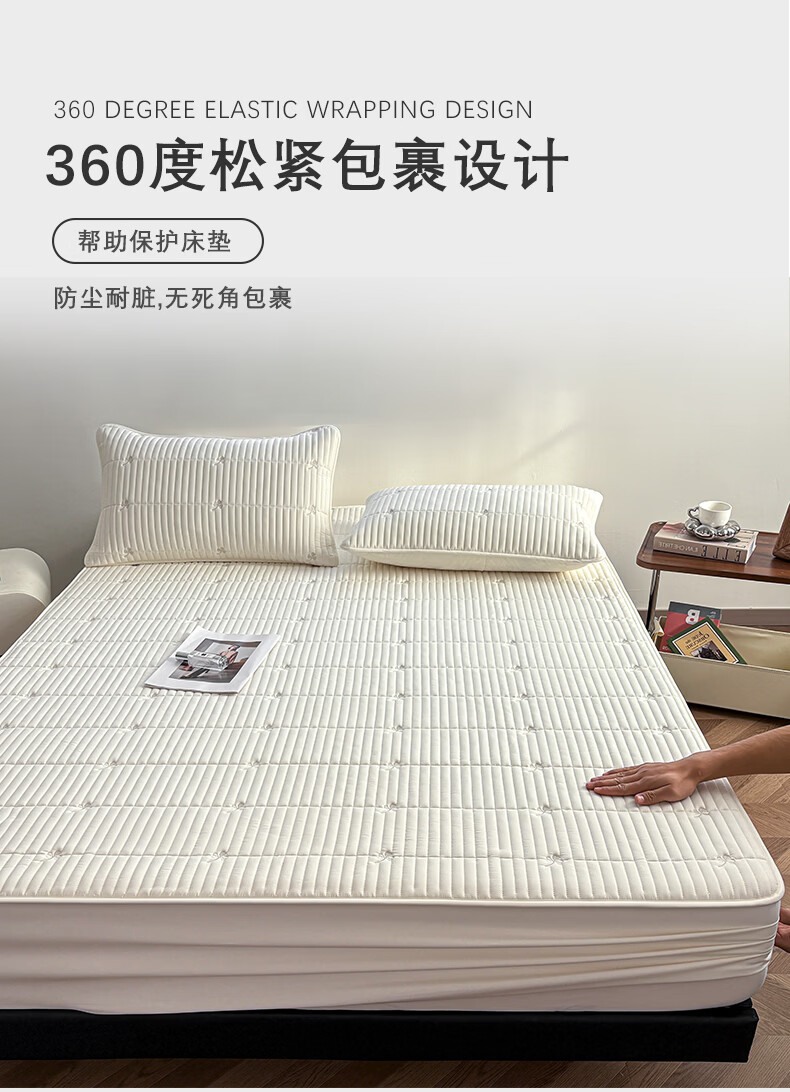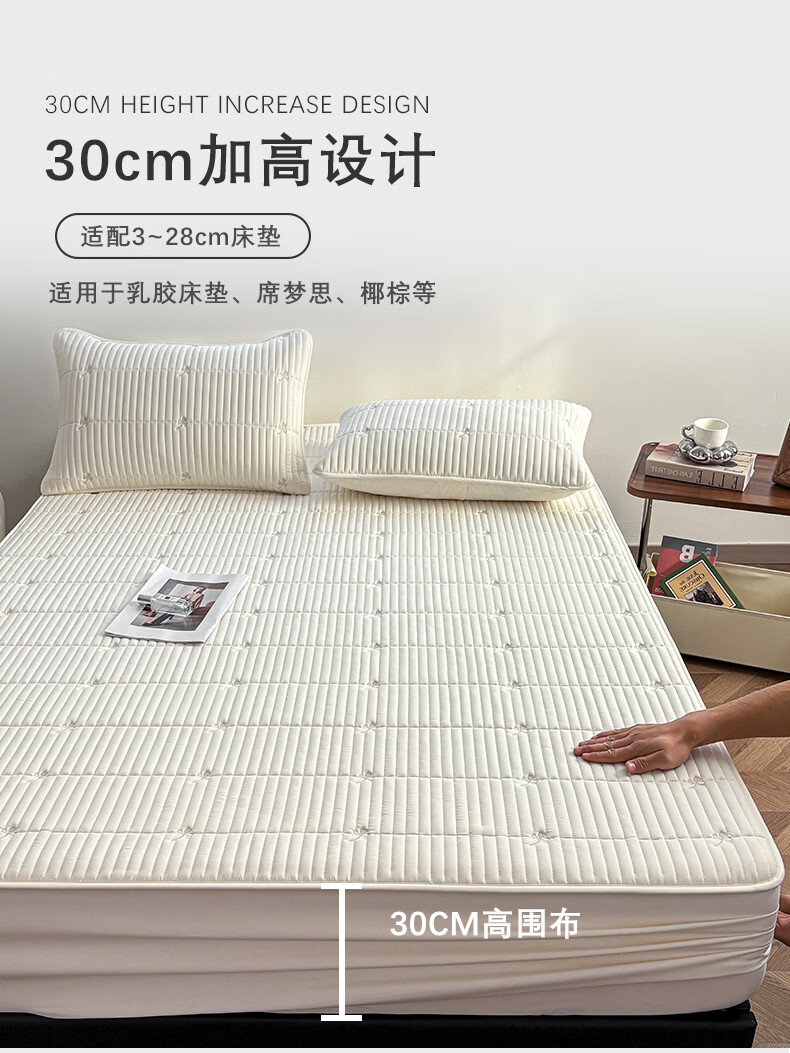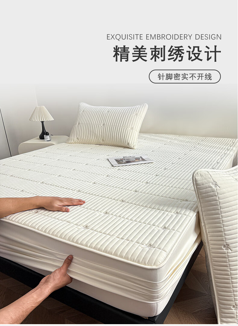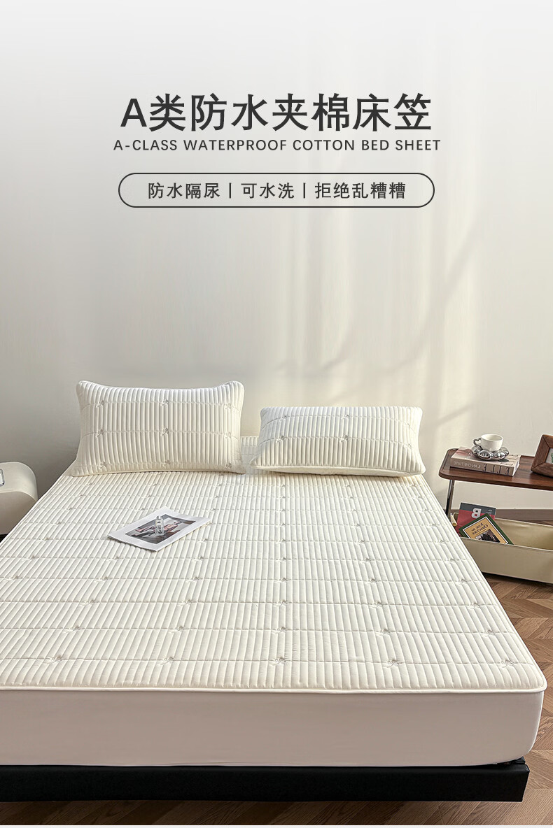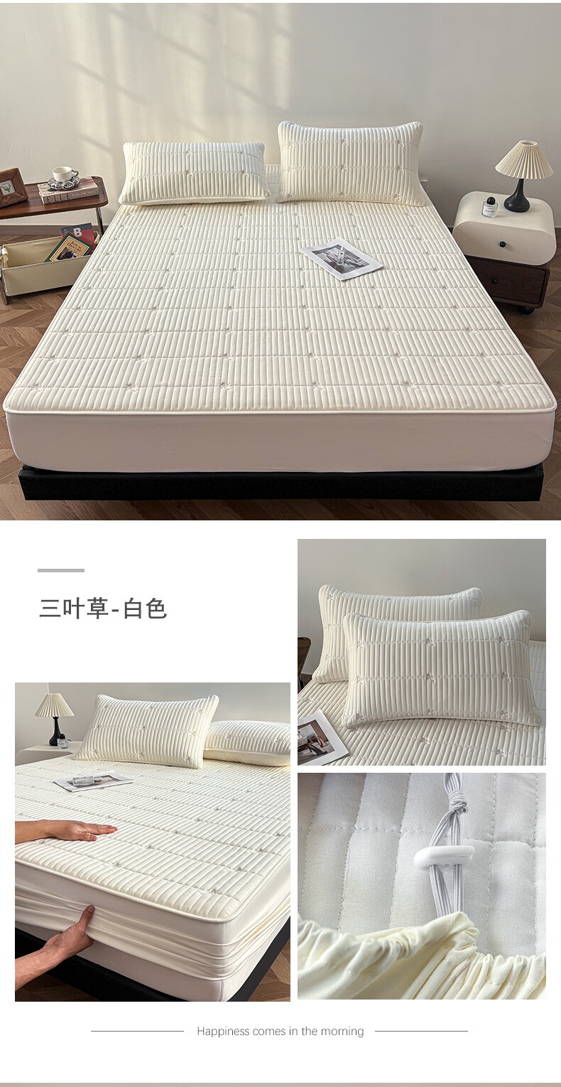 无印良品A类刺绣夹棉防水床笠1.8米x2米床垫罩保护套席梦思床罩隔脏三件套 三叶草-白色 【防水隔尿 亲肤裸睡】 180cm*200cm 单床笠