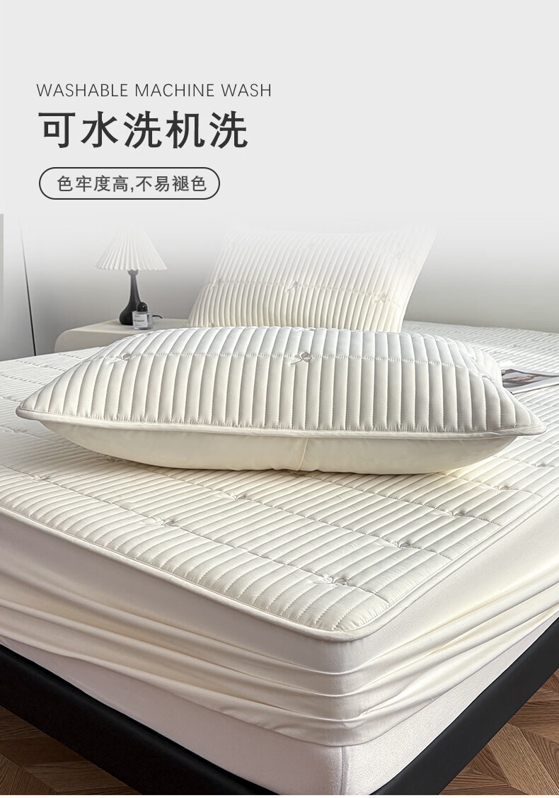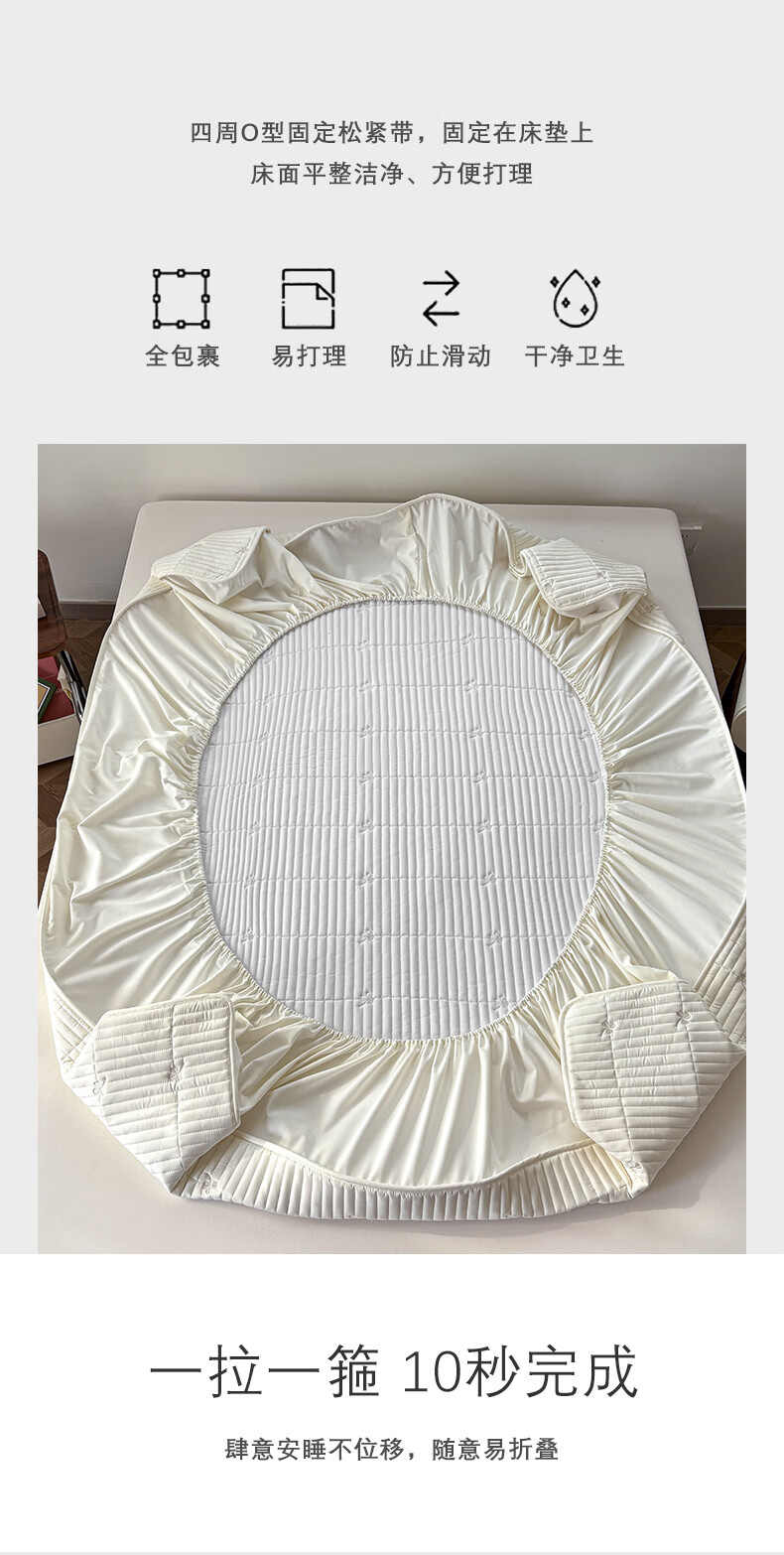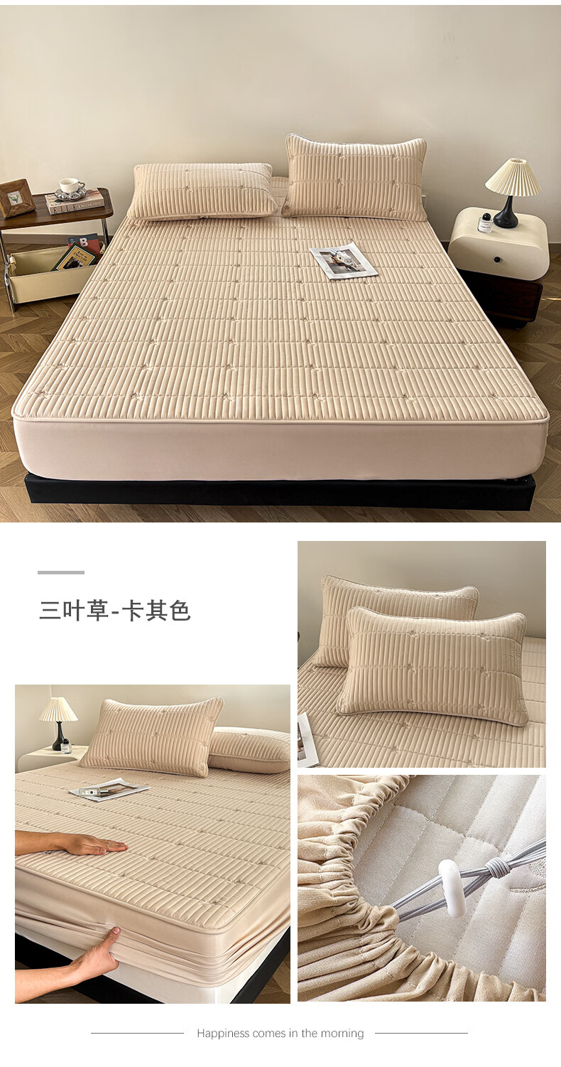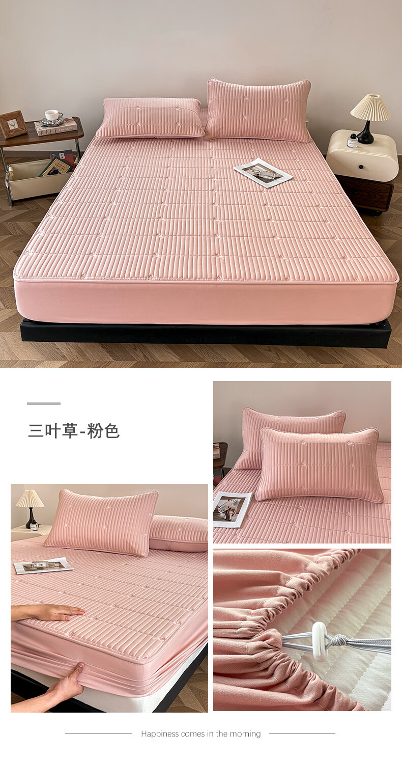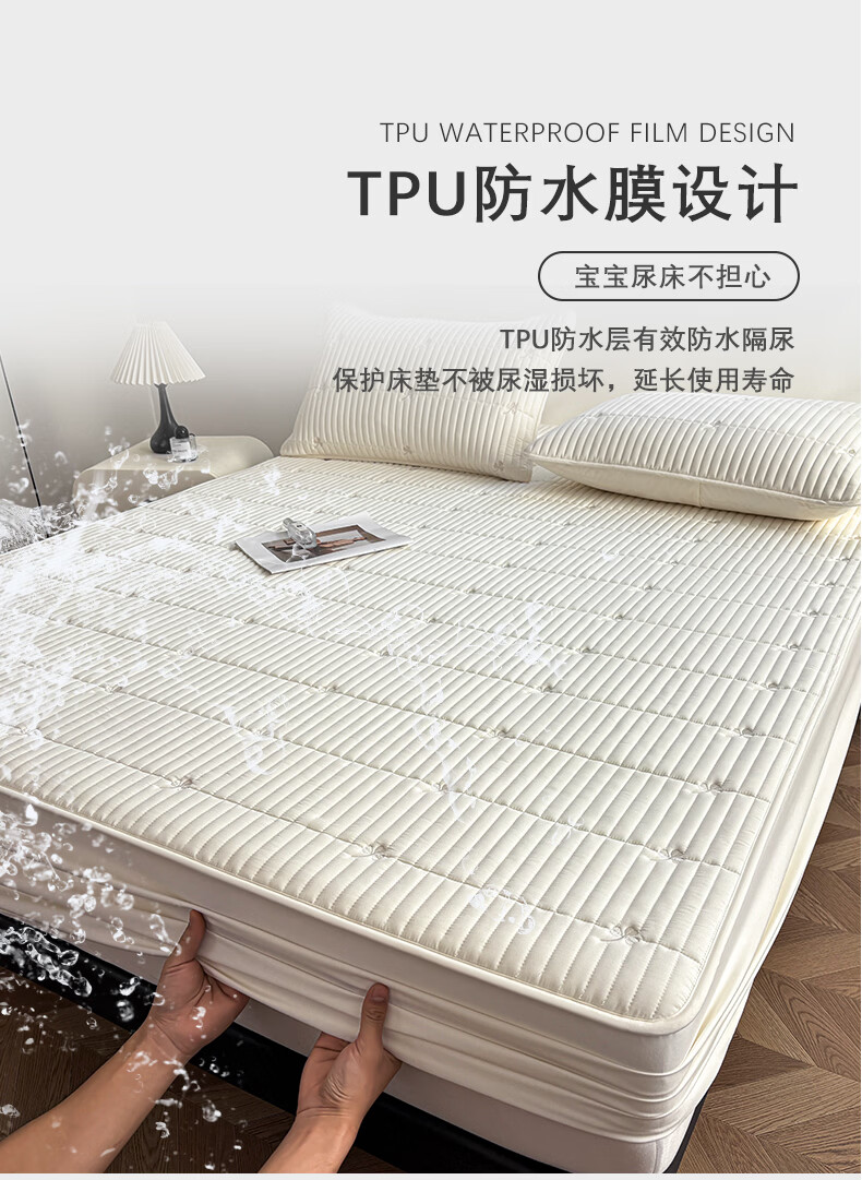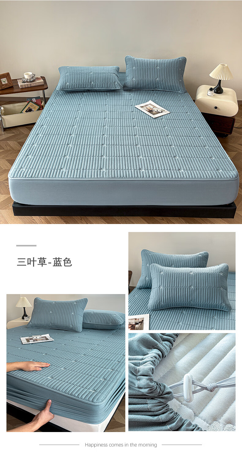 无印良品A类刺绣夹棉防水床笠1.8米x2米床垫罩保护套席梦思床罩隔脏三件套 三叶草-白色 【防水隔尿 亲肤裸睡】 180cm*200cm 单床笠