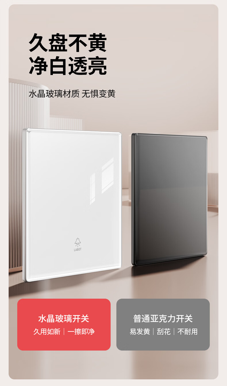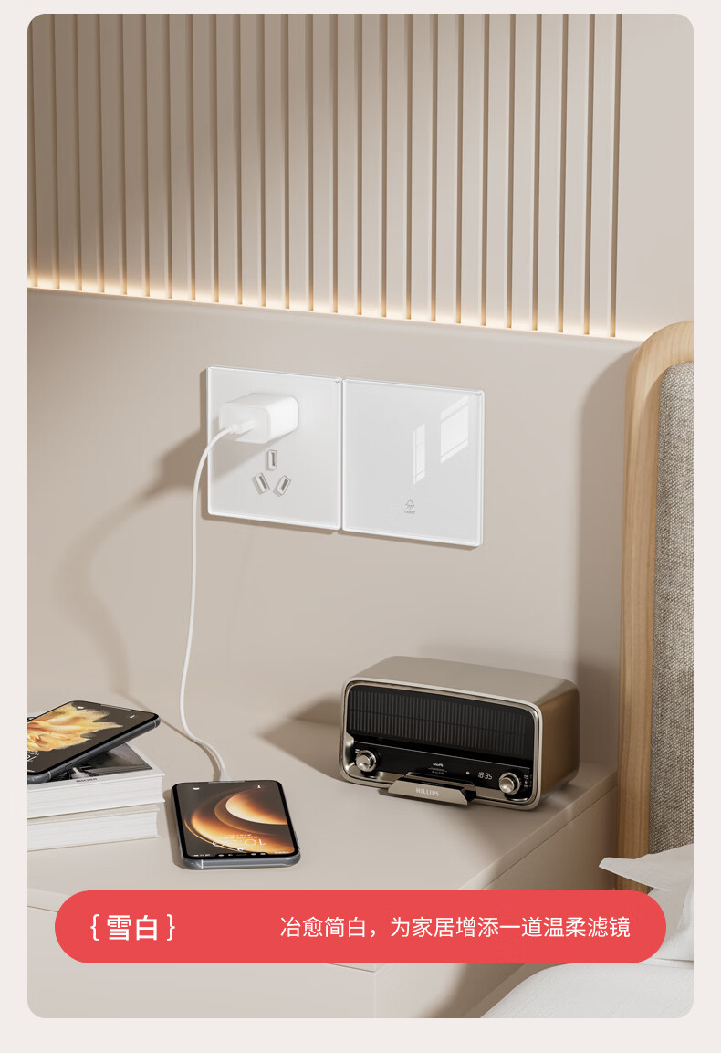 国际电工(FDD)超薄水晶玻璃开关插座面板家用墙壁86型单双控二三插空调电源插座 五孔插座