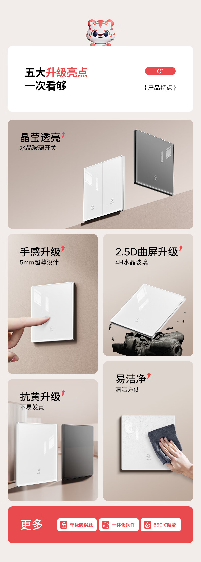 正泰(CHNT)明装开关插座面板 1c系列 一开单控五孔