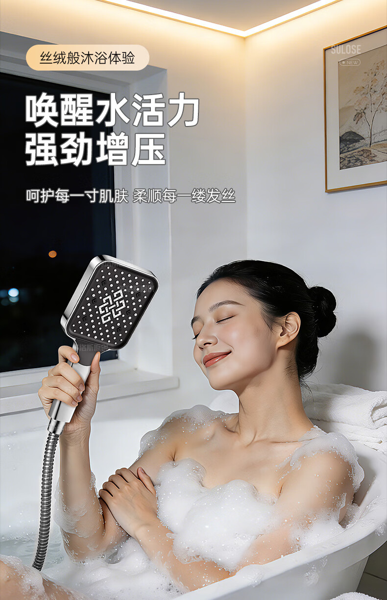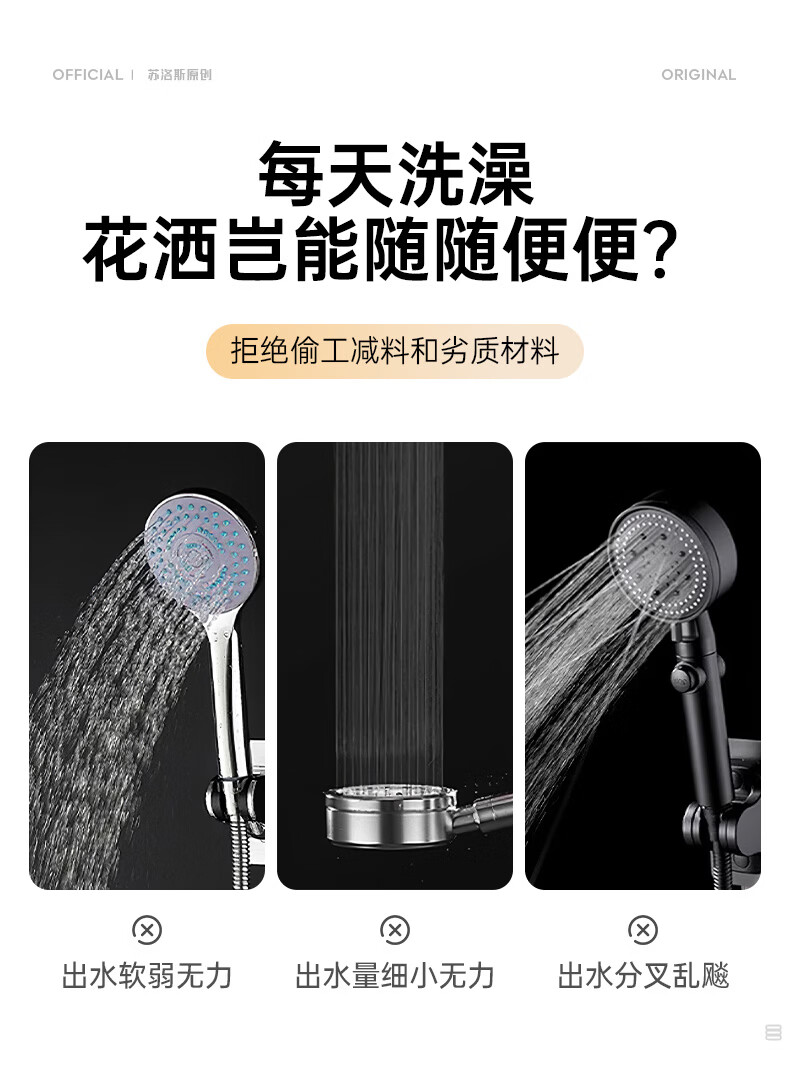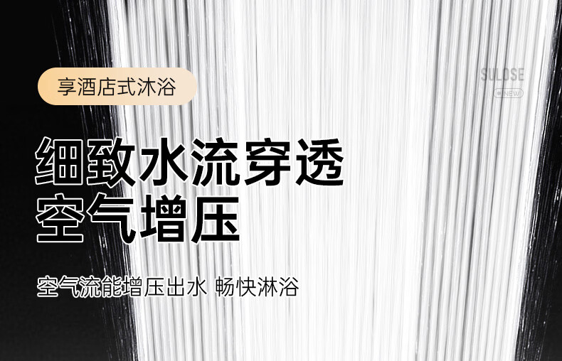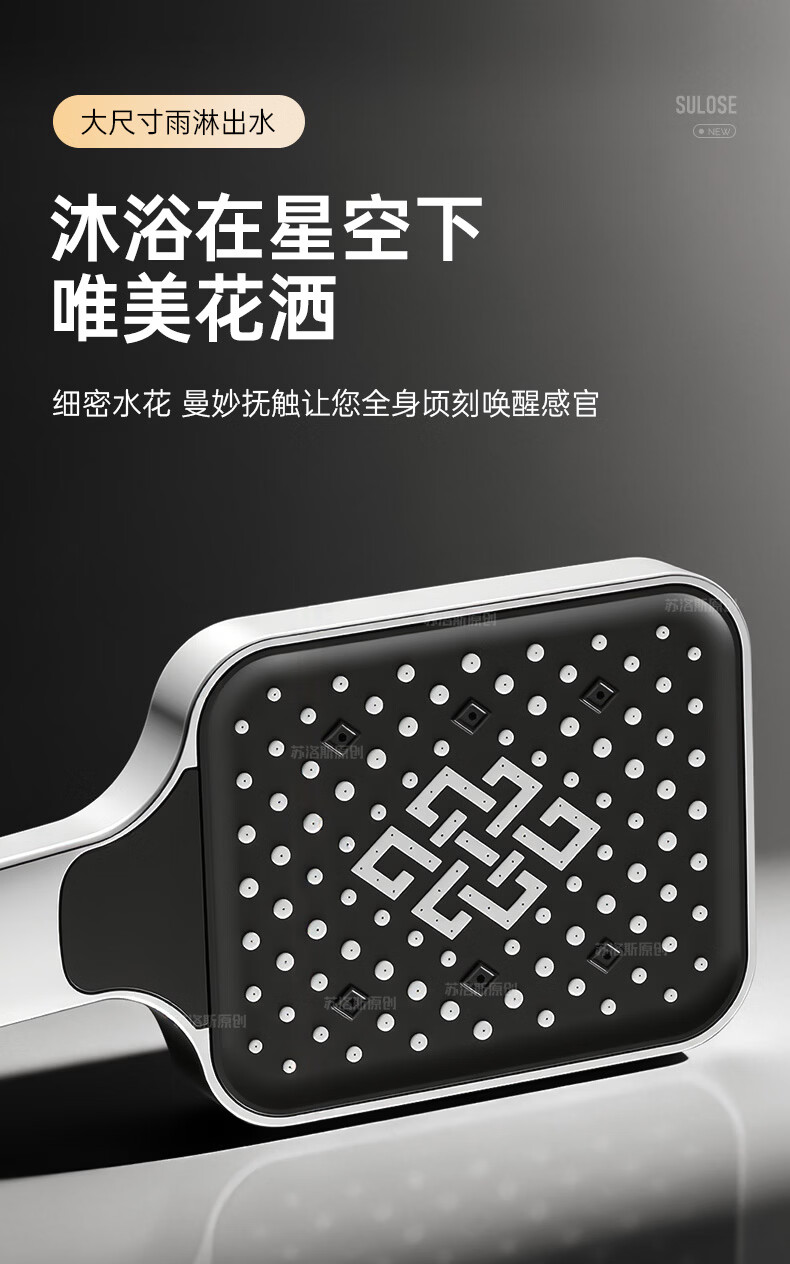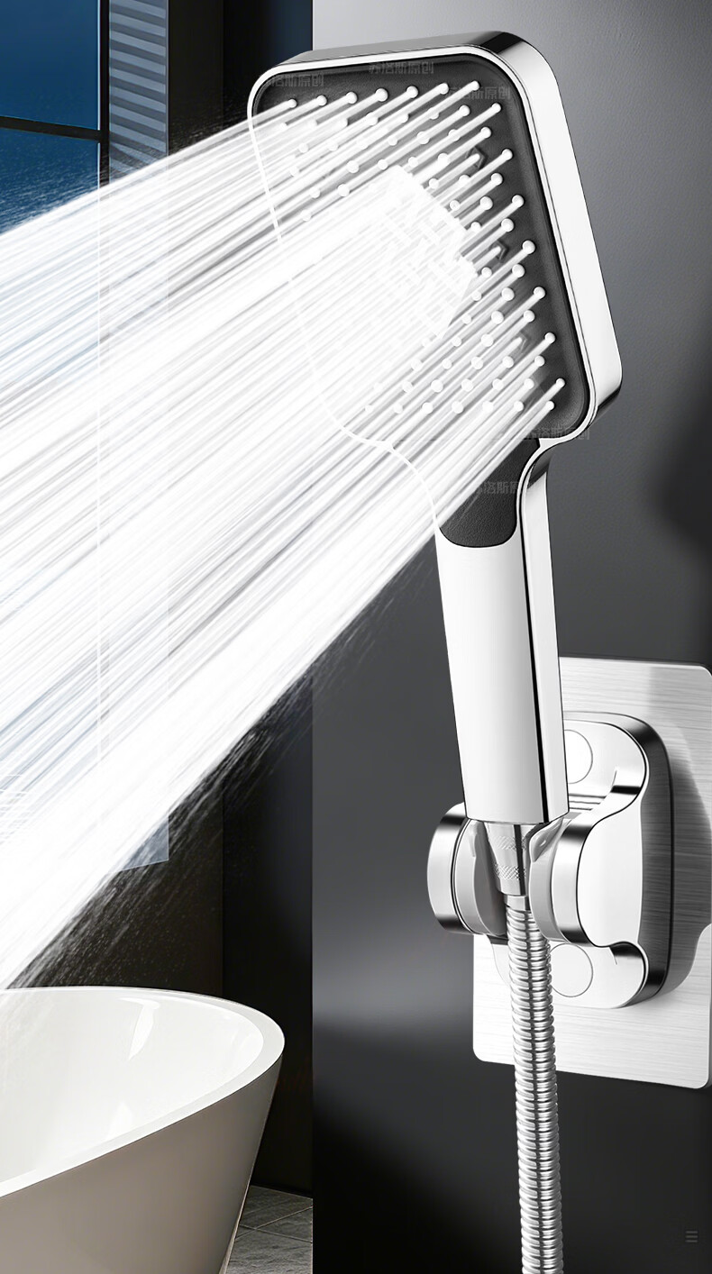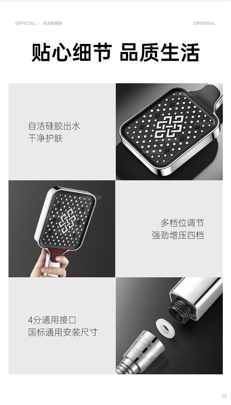 苏洛斯增压花洒淋浴喷头带软管套装浴室卫生间热水器洗澡手持加压莲蓬头 【方款电镀】空气增压丨四档出水切换 四分通用接口丨硅胶防堵出水孔
