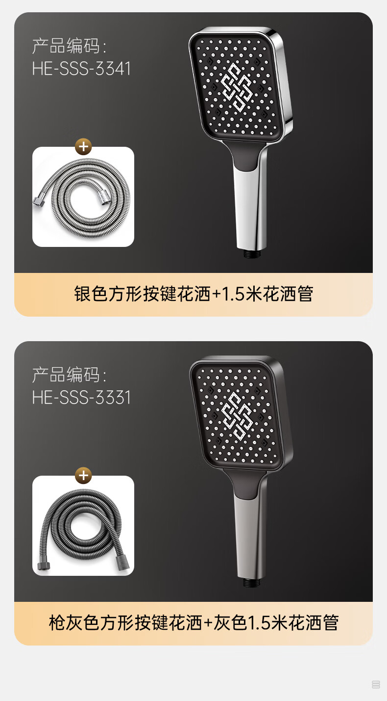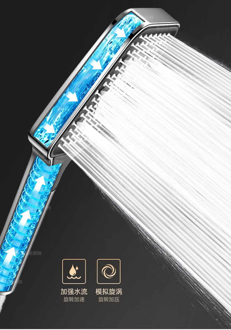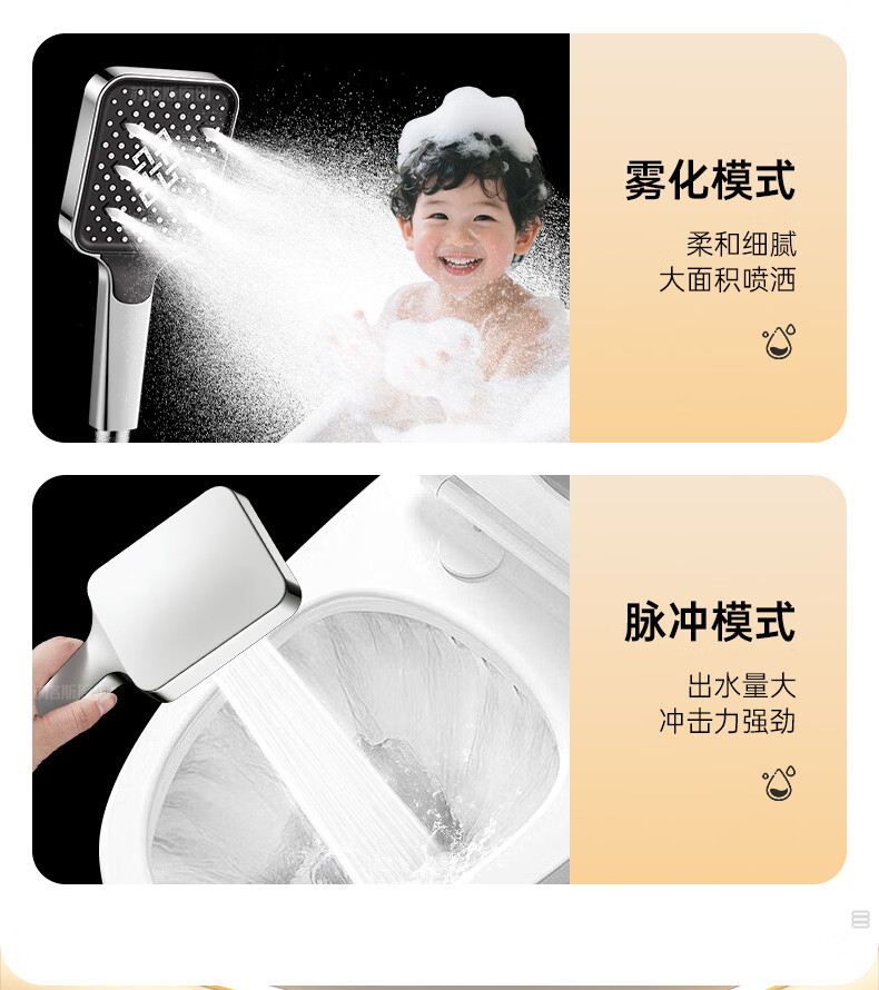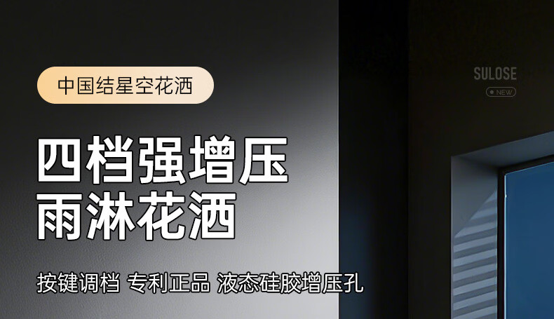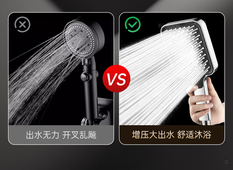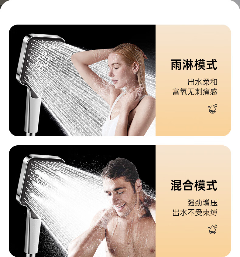 苏洛斯增压花洒淋浴喷头带软管套装浴室卫生间热水器洗澡手持加压莲蓬头 【方款电镀】空气增压丨四档出水切换 四分通用接口丨硅胶防堵出水孔