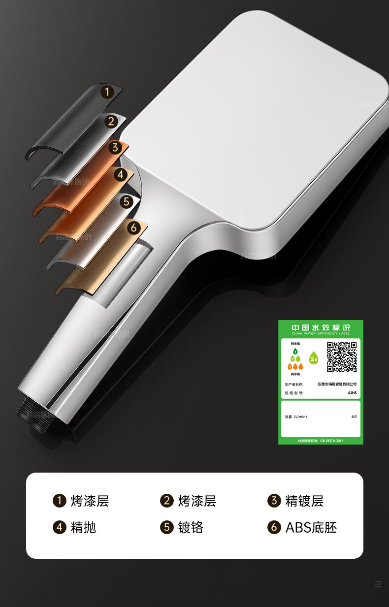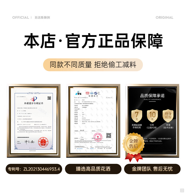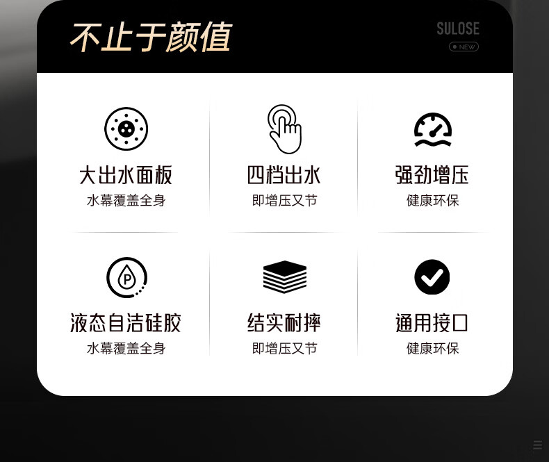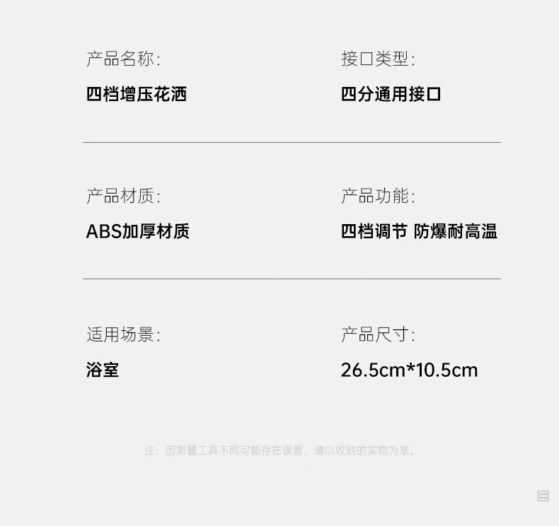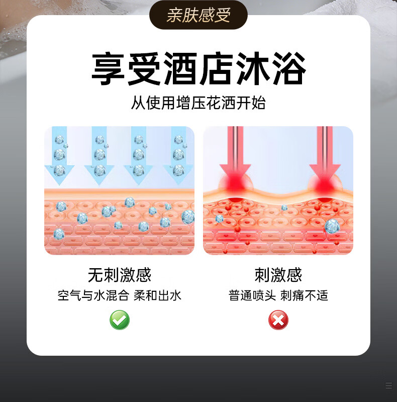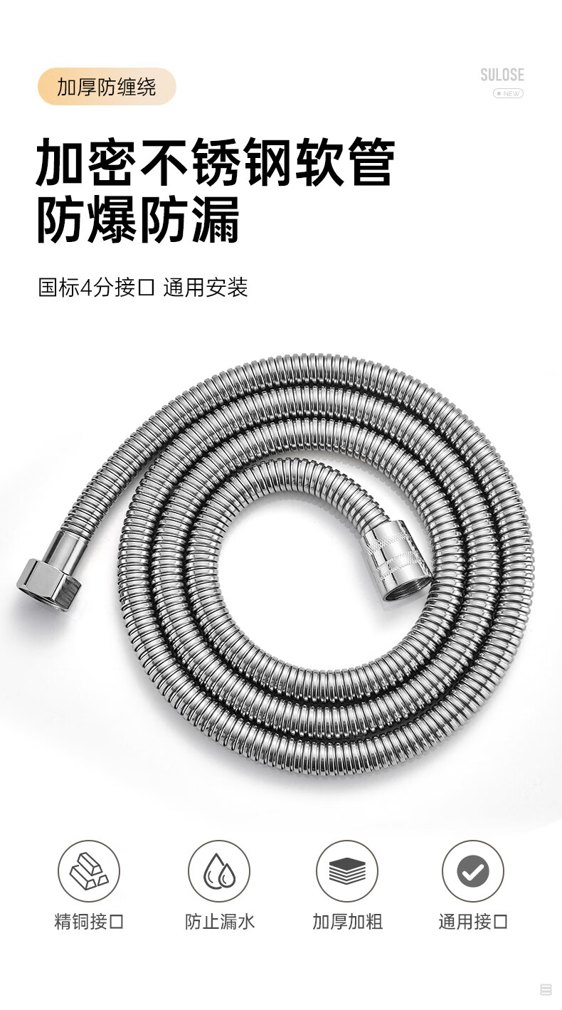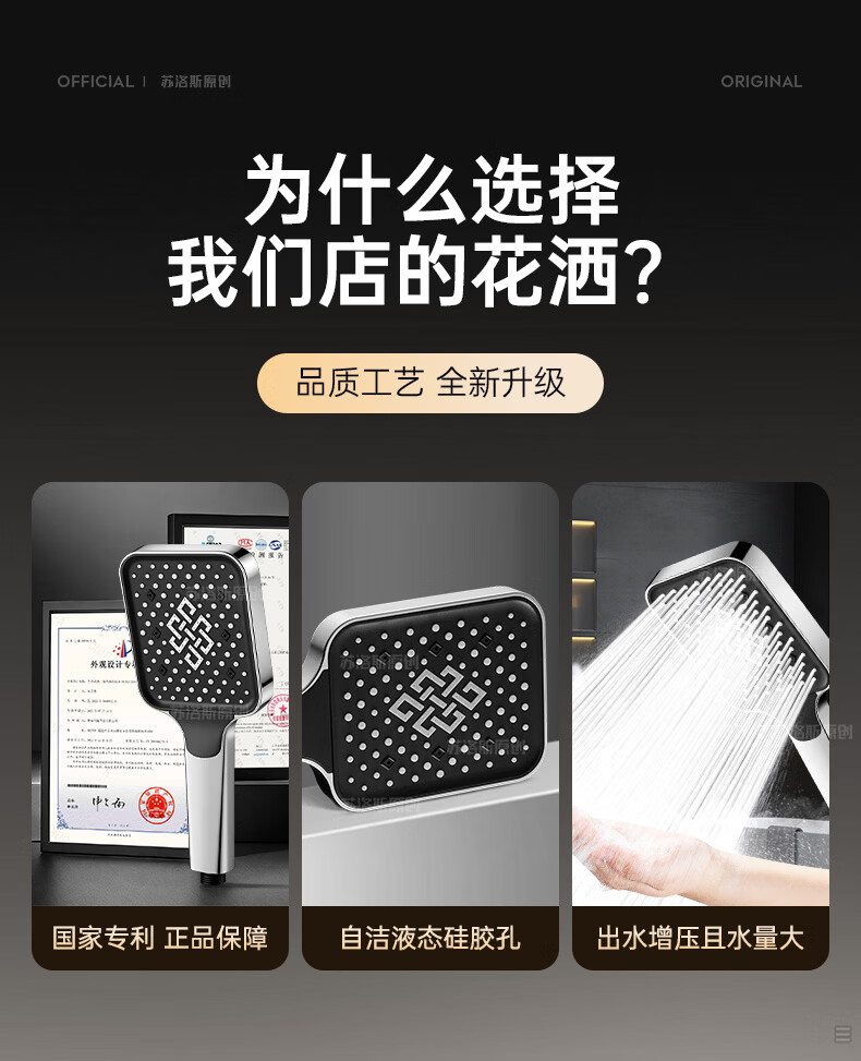 苏洛斯增压花洒淋浴喷头带软管套装浴室卫生间热水器洗澡手持加压莲蓬头 【方款电镀】空气增压丨四档出水切换 四分通用接口丨硅胶防堵出水孔