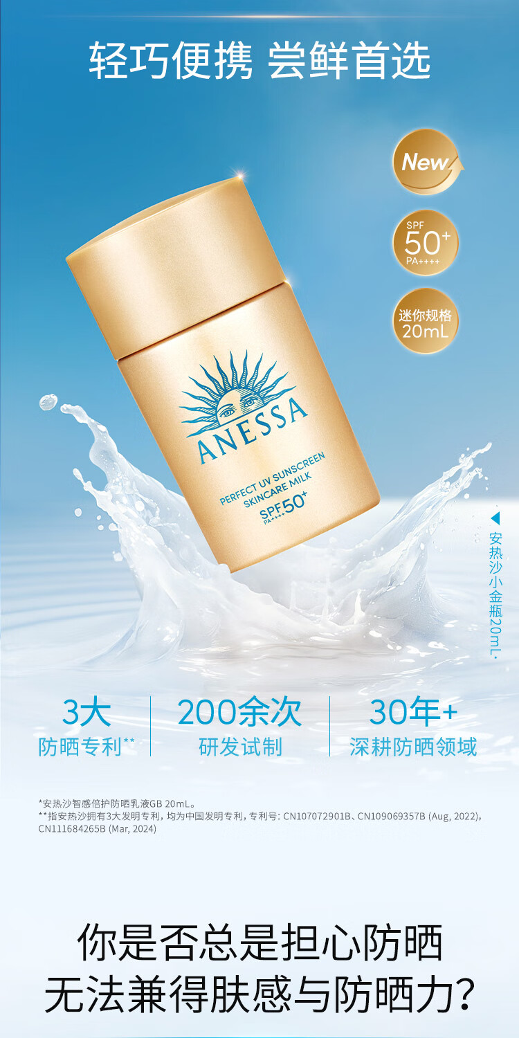 安热沙(Anessa)【采销直播间】智感倍护防晒乳20mL*2+20ml赠品京东自营女神节