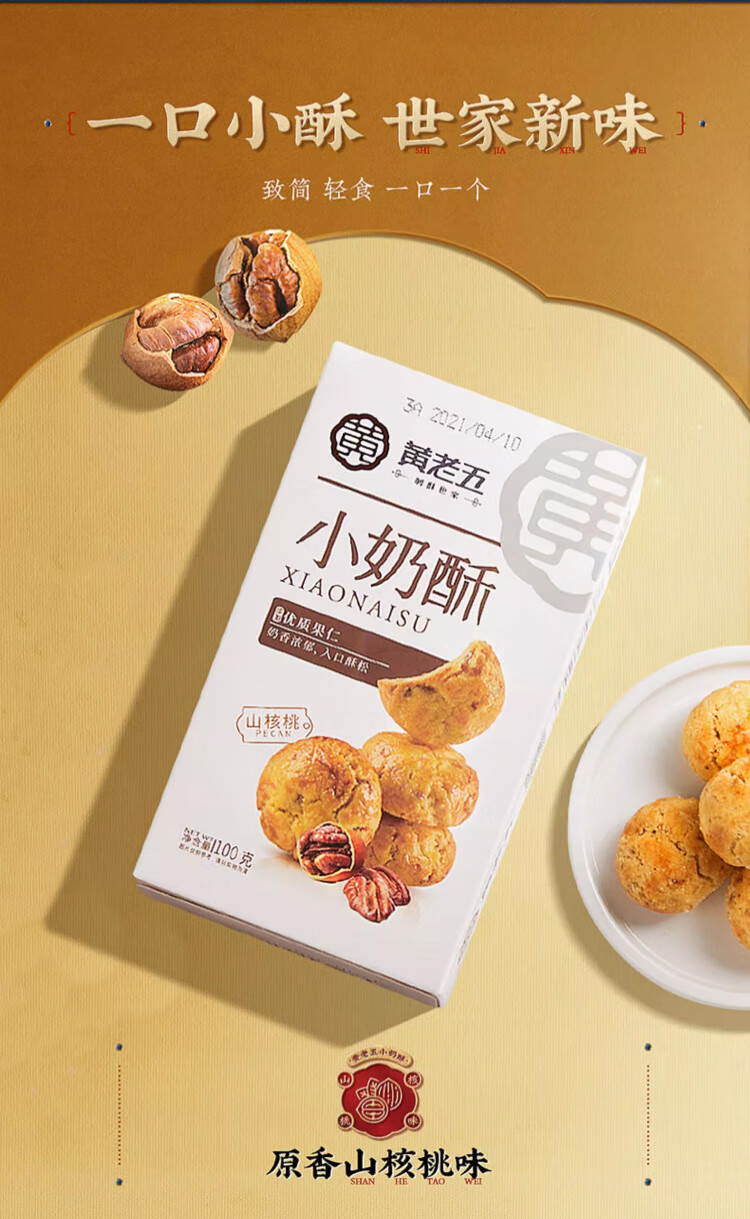 黄老五小奶酥100g中式糕点 四川特产休闲早餐零食独立小包装办公室小吃 【4盒】山核桃味2盒+黑芝麻味2盒