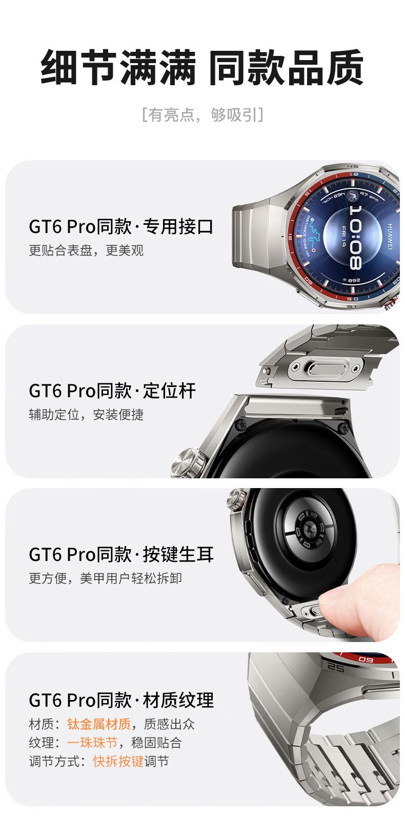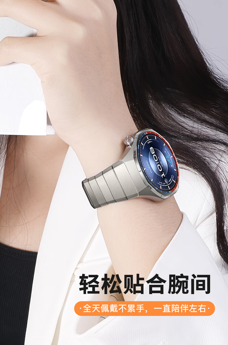 BHO【热销100万+】适用华为gt6pro表带钛金属gt5pro手表表带/专用接口/钛合金watch GT6/GT5/pro表带 运动硅胶【46/48mm-22MM接口-曜石黑】