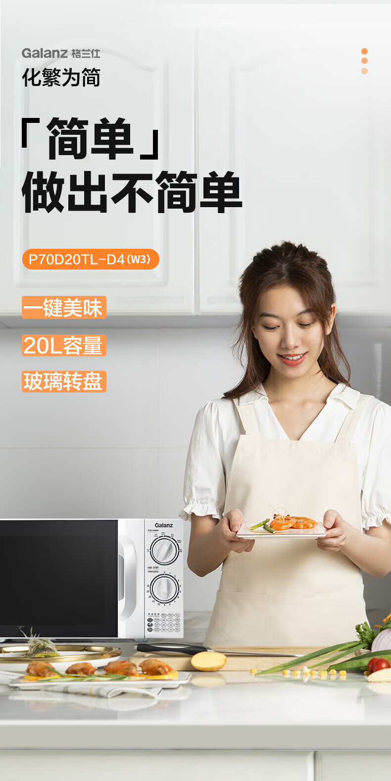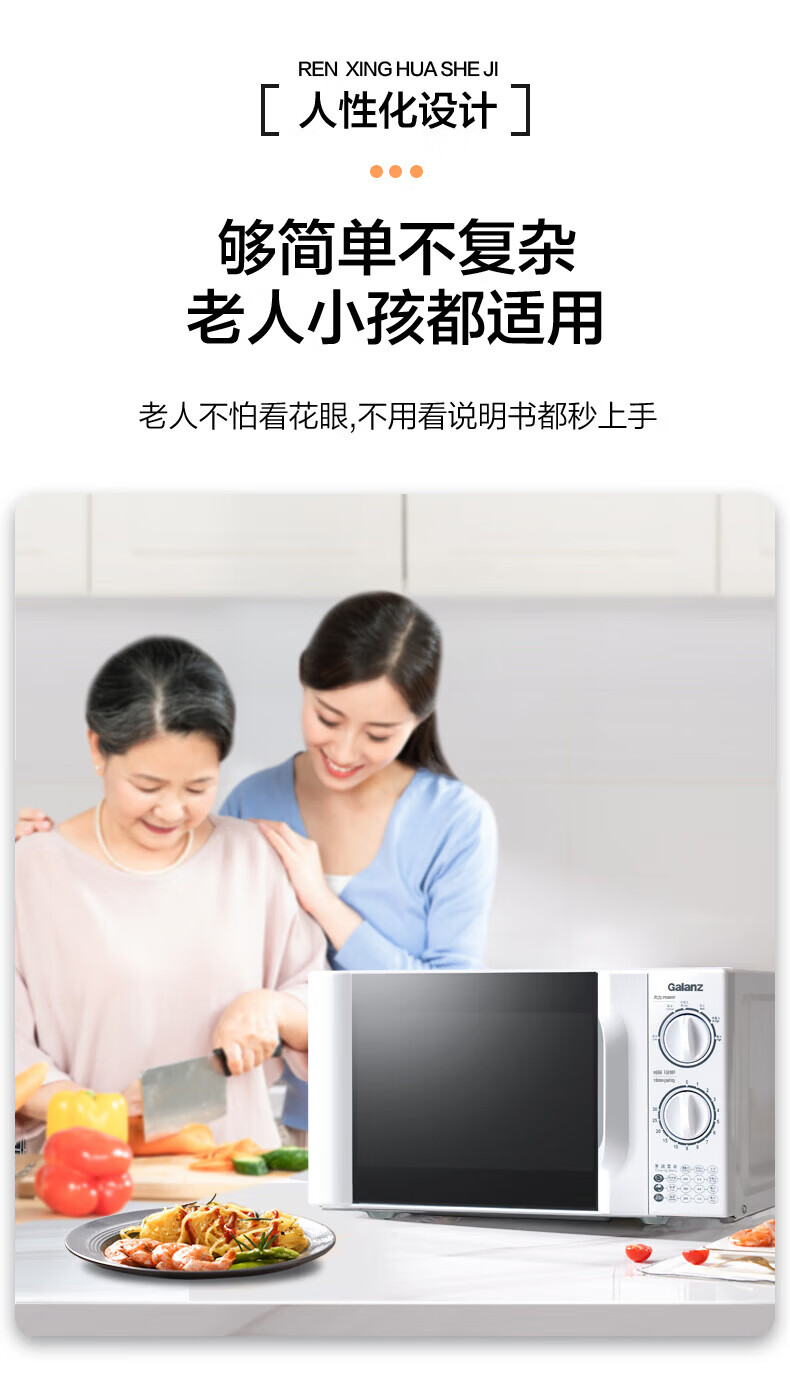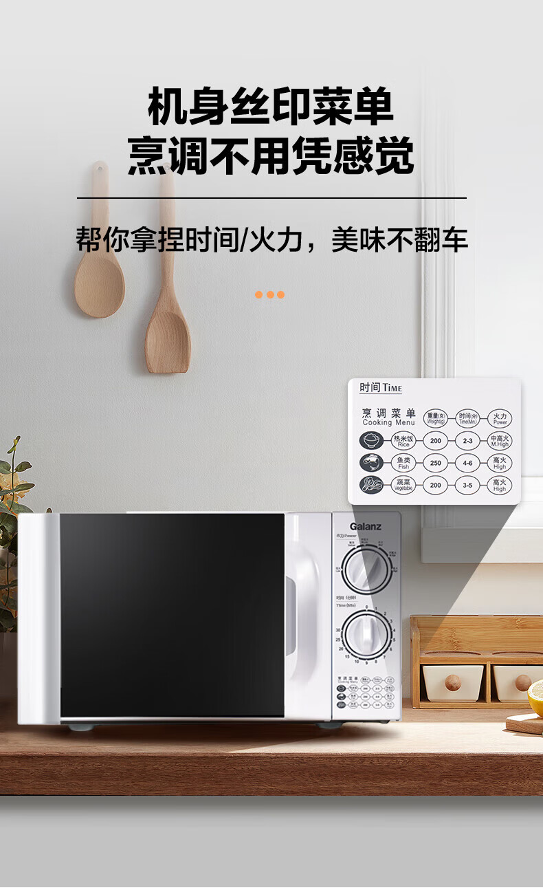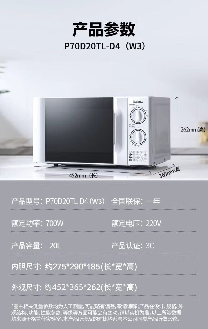 格兰仕(Galanz)微波炉家用小型 360°转盘快捷加热旋钮操控20L家用容量易洁内胆操作便捷微波炉P70D20TL-D4(W3)