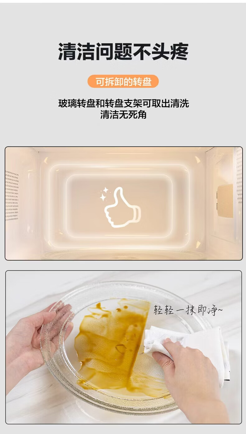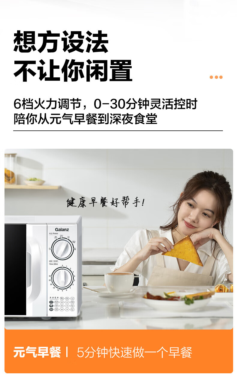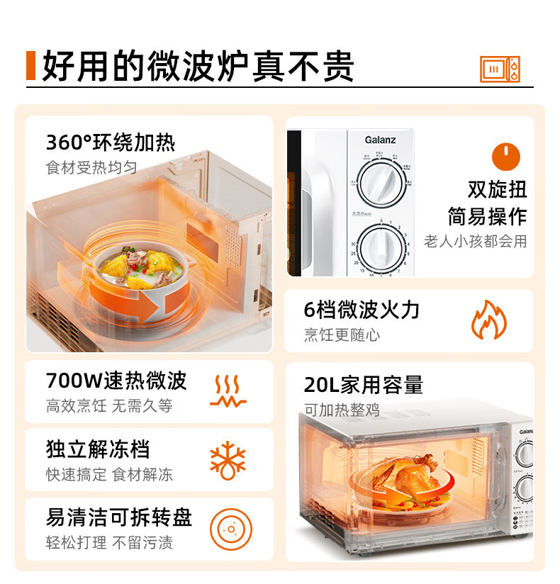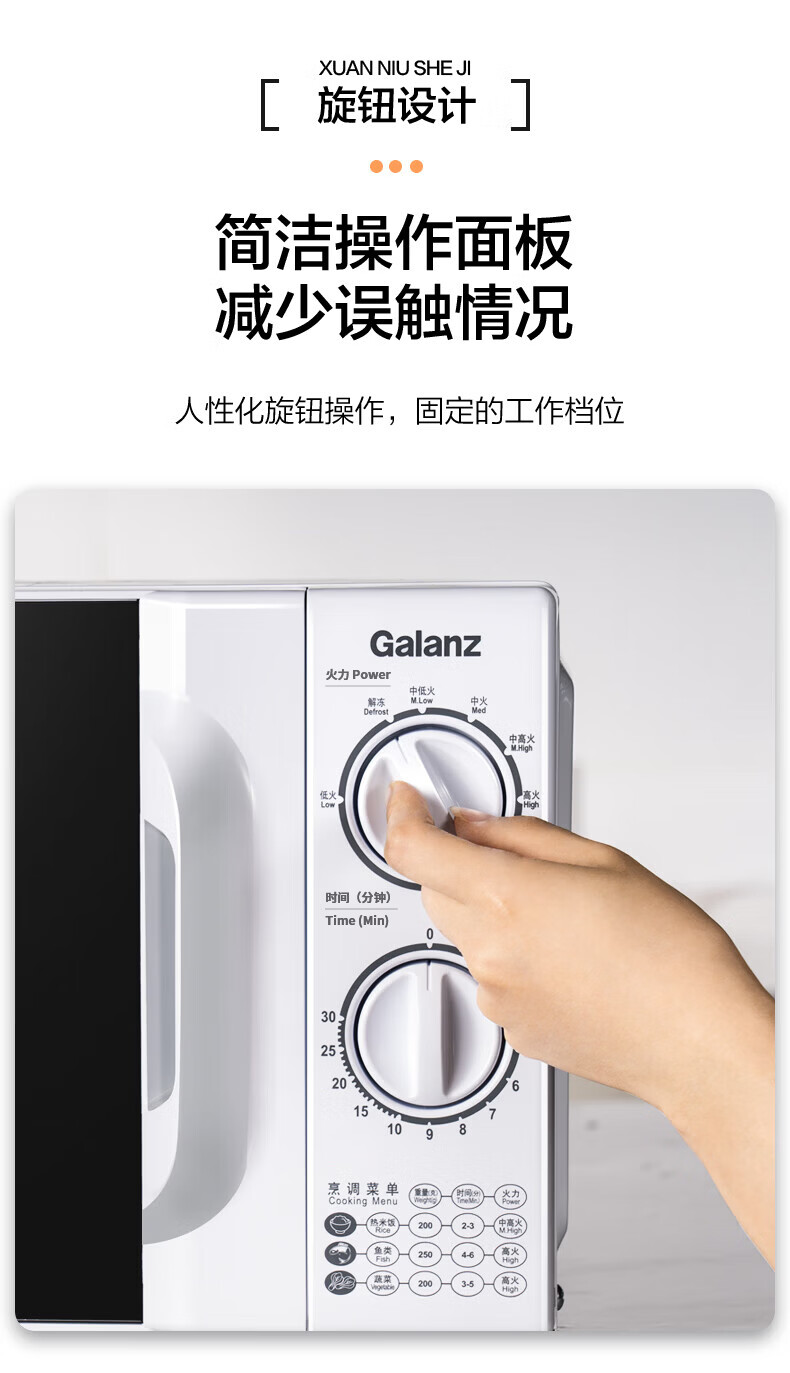格兰仕(Galanz)微波炉家用小型 360°转盘快捷加热旋钮操控20L家用容量易洁内胆操作便捷微波炉P70D20TL-D4(W3)