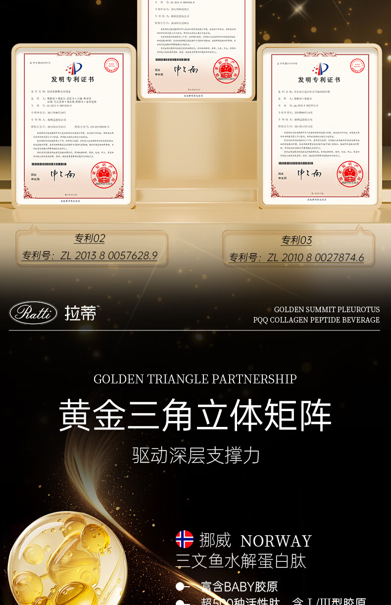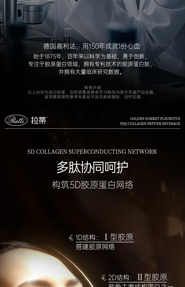 RATTI拉蒂胶原蛋白肽饮口服饮品小分子胶原金顶侧耳pqq正品官方旗舰店 一盒装+2支【到手10支】 50ml*10瓶