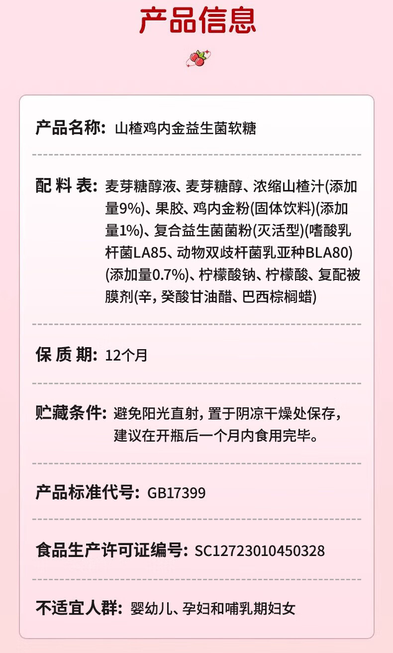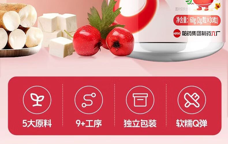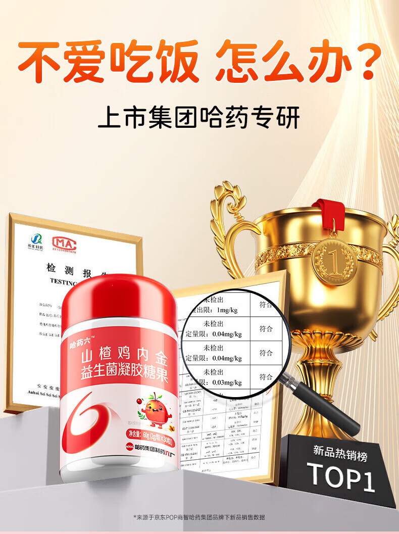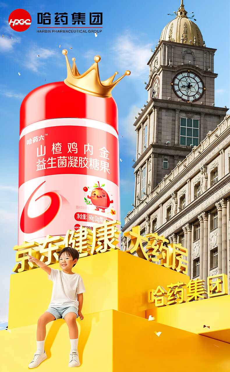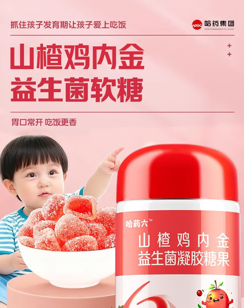 哈药六厂山楂鸡内金益生菌凝胶糖果儿童调理肠胃消积食宝宝咀嚼片婴幼儿 【哈药集团】 60g*1瓶 小分子易吸收