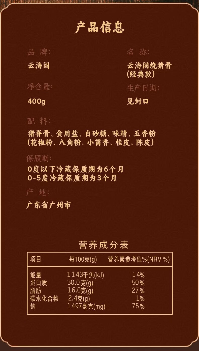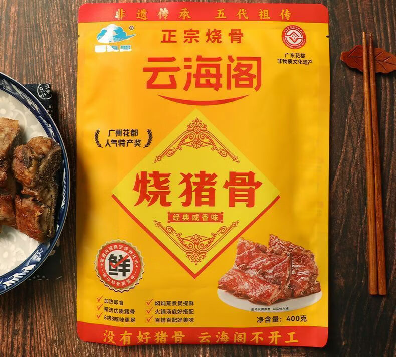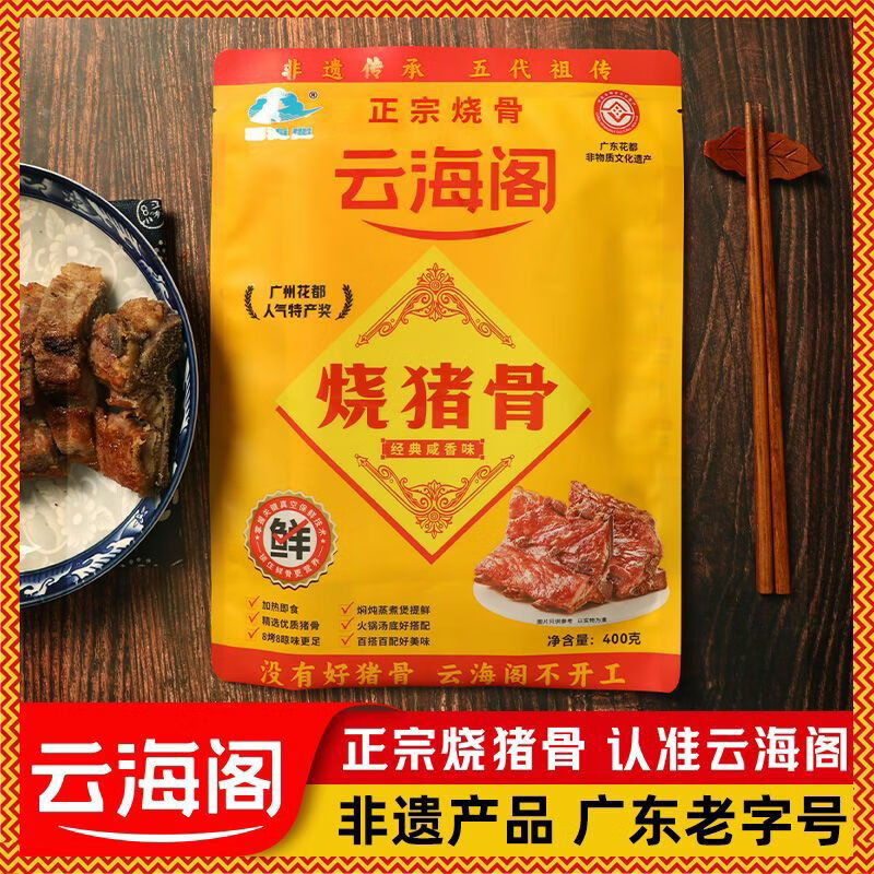 云海阁新货烧猪骨400g咸骨广州花都特产烧骨广东熟食肉类即食 袋装400g*2包