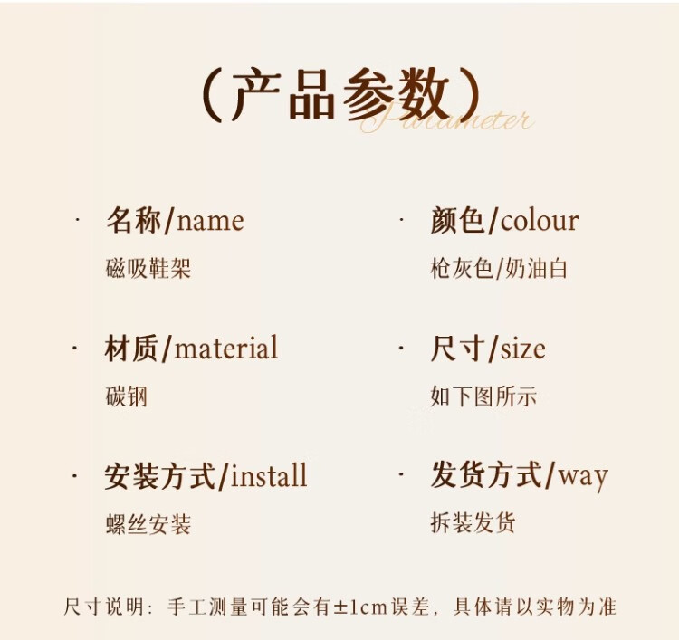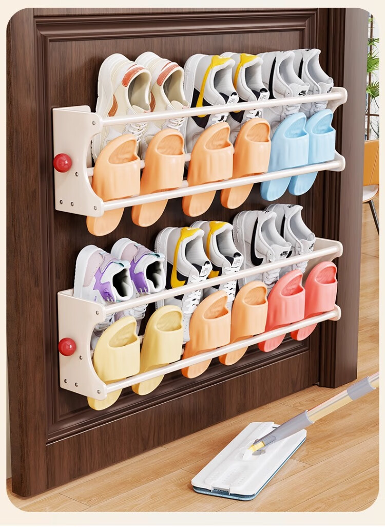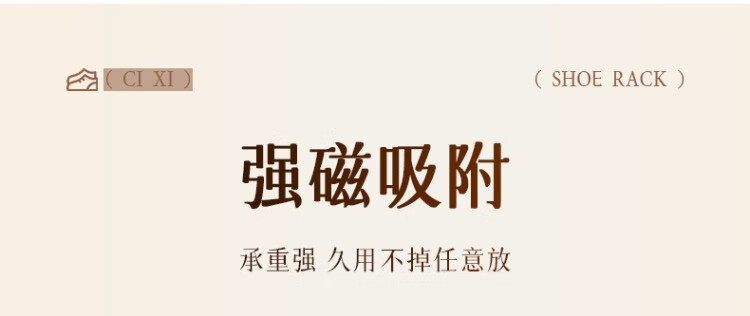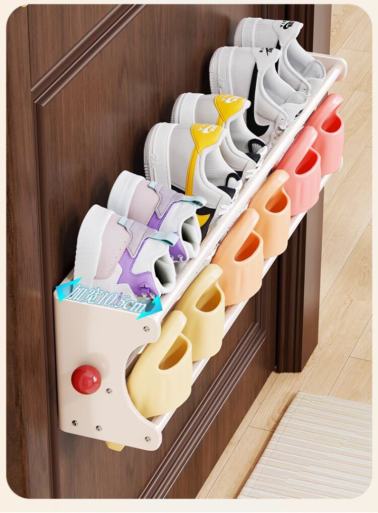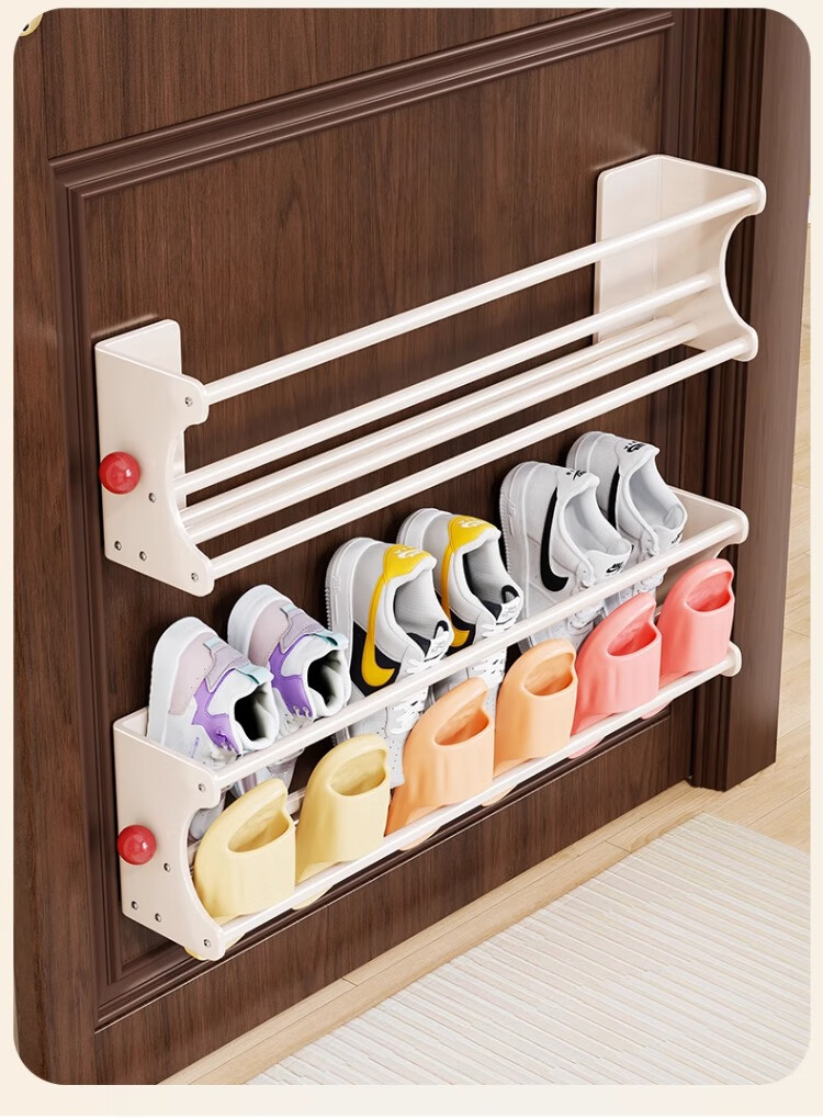 尔思家鞋架学生宿舍磁吸免安装鞋柜多层结实家用壁挂式门口简易置物架 奶油白-三人位