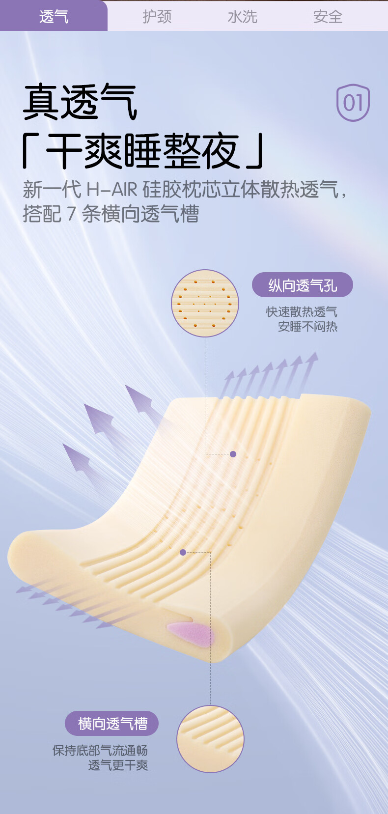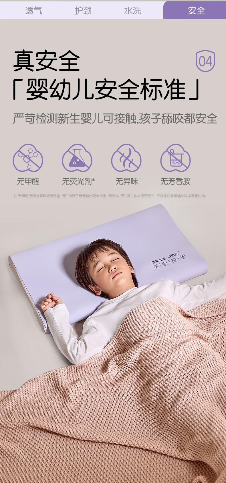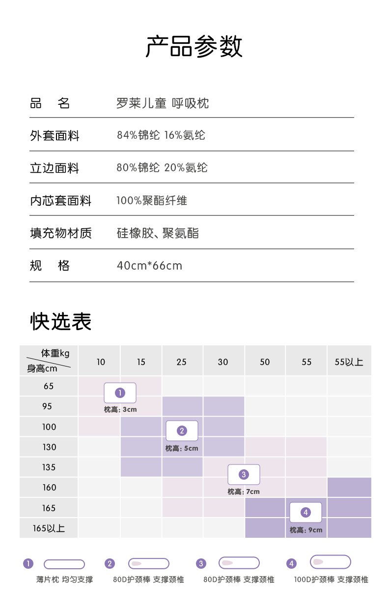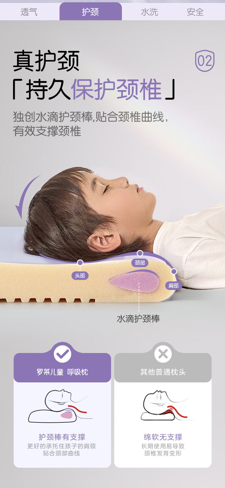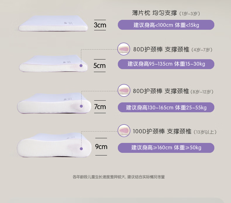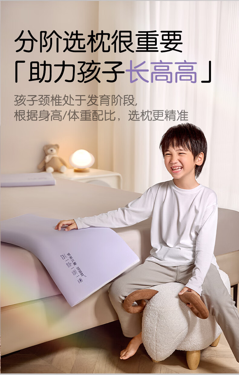 罗莱儿童枕头【商场同款】婴幼儿A类可水洗硅胶记忆护脊枕芯 6-12岁 约7CM